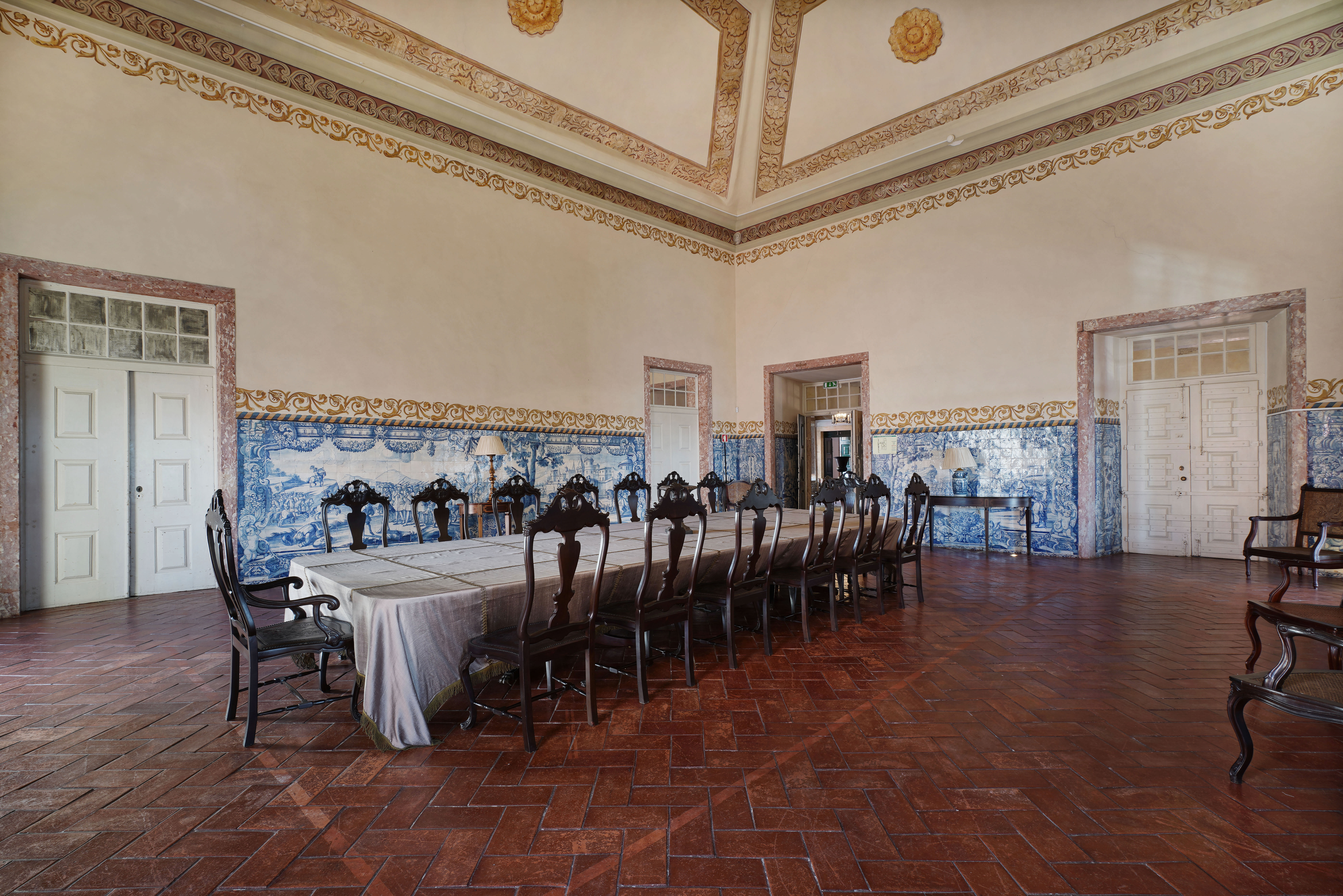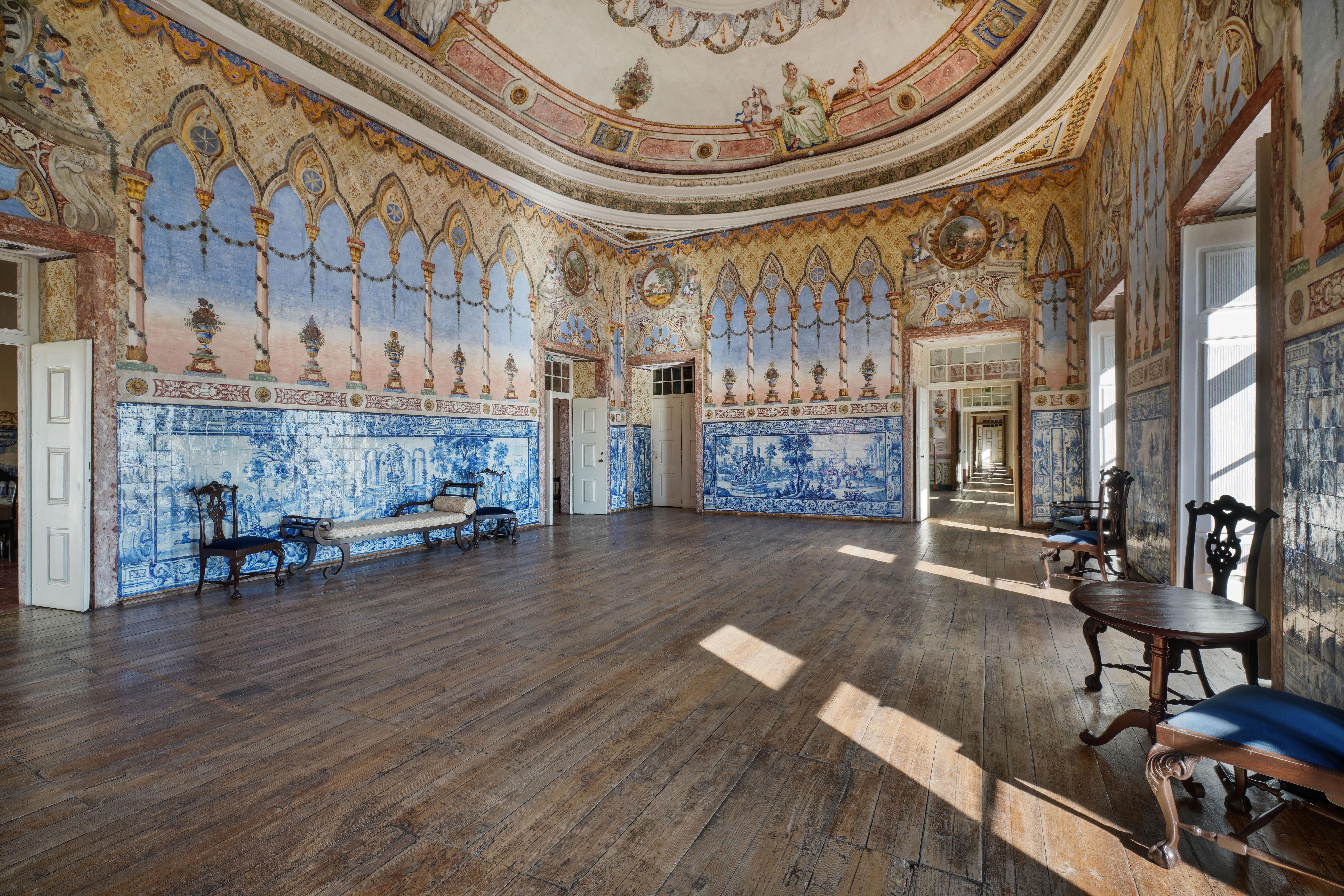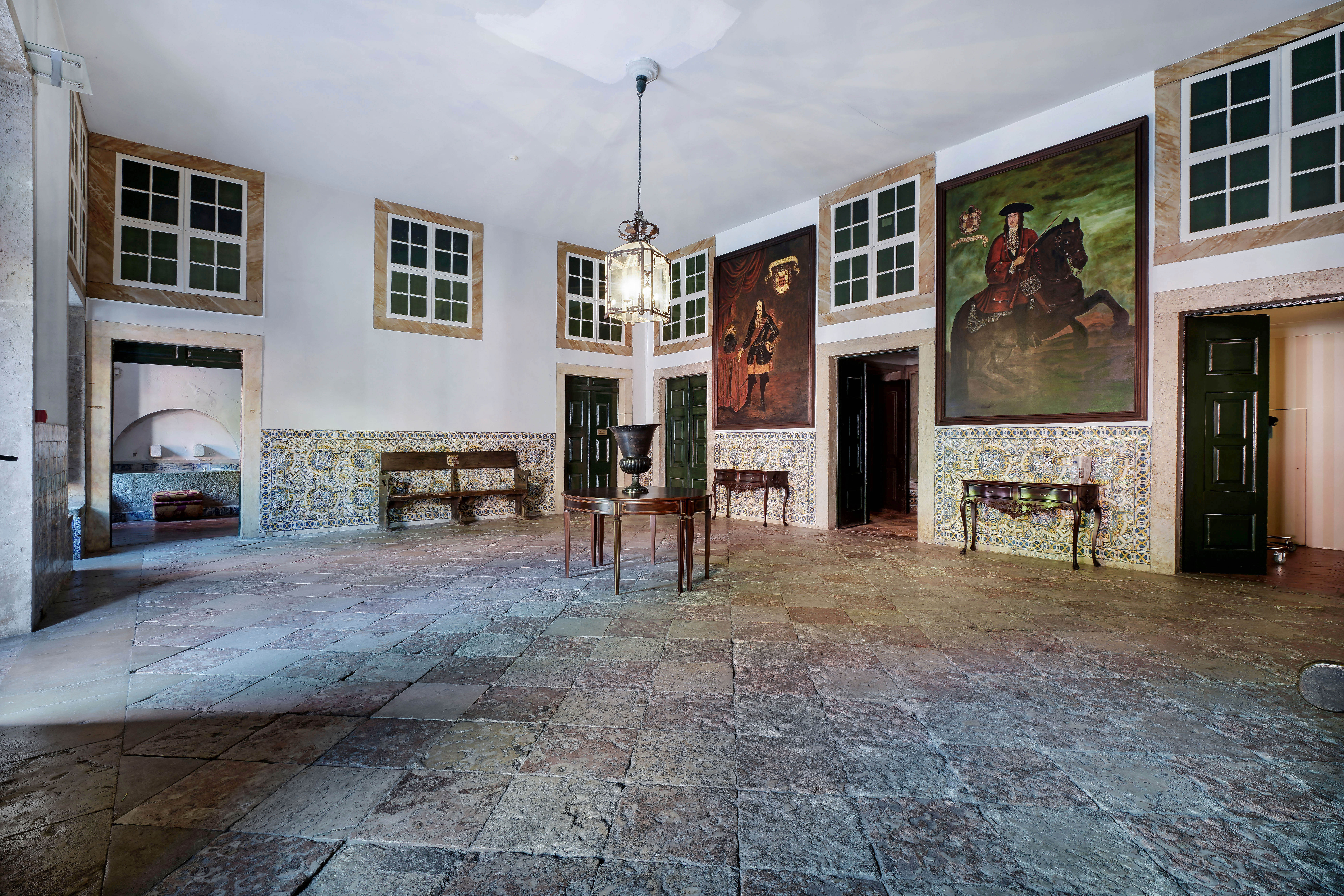 In the Eastern part of Lisbon, once the site of large farms belonging to the nobility, is the Xabregas Palace, one of the most traditional palaces in Portugal. It is a monument with more than five centuries of history, whose first owner was the famous navigator D. Tristão da Cunha. It is a palace full of charm and tradition, with a frontal view from the 2nd floor to the Tagus river. In an enormous effort to maintain this old house and combining it with todays realities, its owners have provided it with all the necessary requirements to host all types of events, without detracting from its original function as a Family Home. The interior is in good condition, having been partially restored about 15 years ago. The interior highlights the tile heritage of the 17th and 18th centuries with the paneled ceilings, frescoes and paintings that decorate the different rooms. Located in one of the Parishes of Lisbon where there is the most investment, the palace has great potential for tourism, company headquarters or private house.