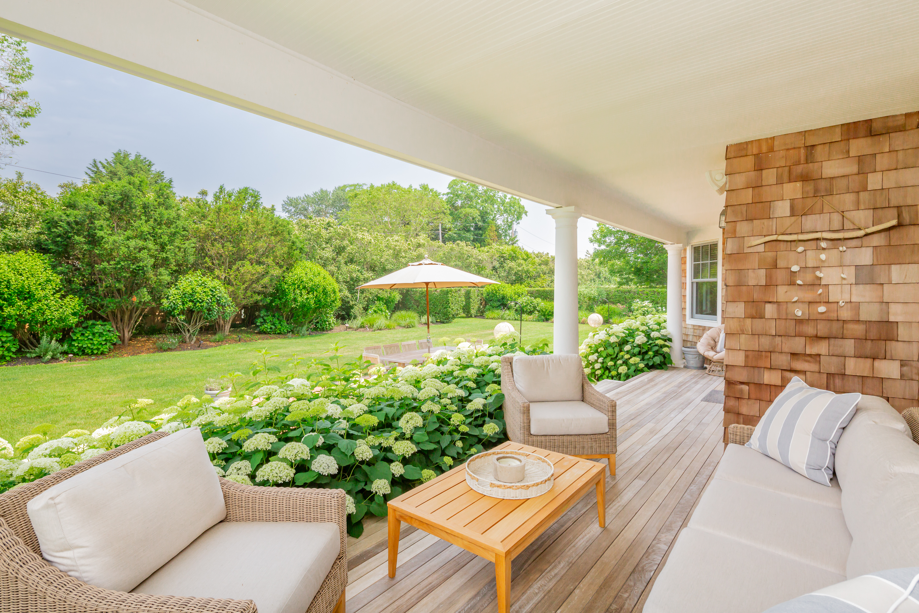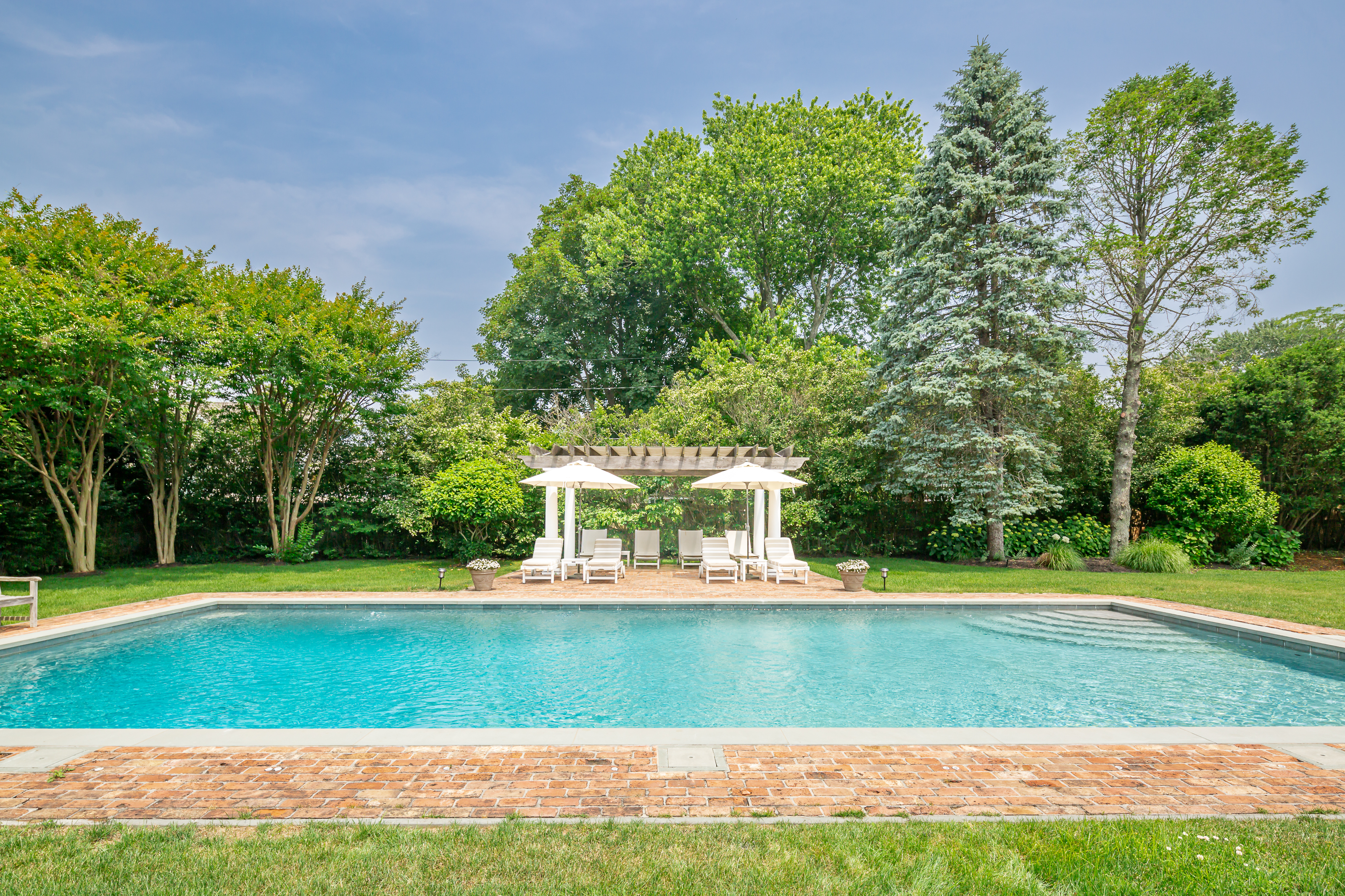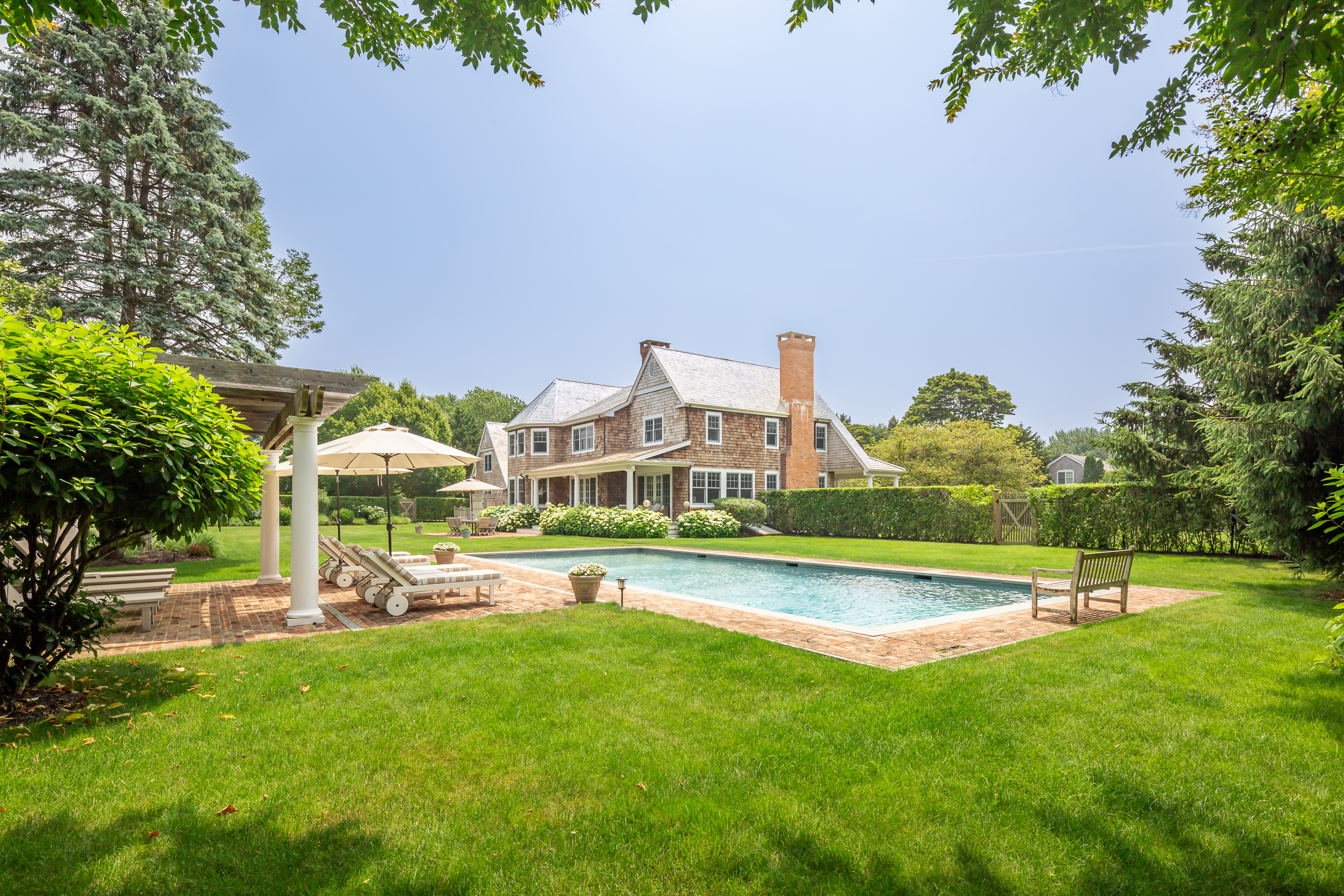 Located on a very quiet cul-de-sac on 1.2+/- acres in the village of Southampton, this classic home has 5 bedrooms, including a master bedroom with fireplace, 5.5 baths, 3 fireplaces, a formal living room with fireplace, a dining room, sunroom, family room and a fully equipped gourmet kitchen with breakfast area (2 Refrigerators, 2 dishwashers, and large pantry) and a butler's pantry. There is also a large Rec room above the 2.5 car garage with a pool table and big screen T.V. with surround sound. This totally equipped home also has a central vacuum system and a 4 zone A/C system. Perfect for outdoor entertaining the beautifully landscaped grounds have an oversized heated gunite pool (25 x 48) next to a pergola overlooking the lush gardens and an outdoor shower. There is also Protect a Child pool fence available if needed. Available for June, July, August or two weeks during the summer. Please call with any questions about this wonderful Southampton property.