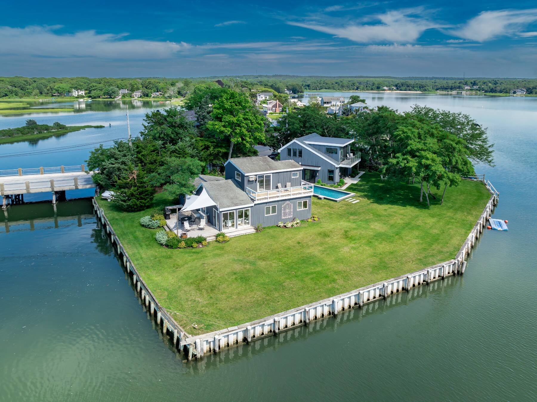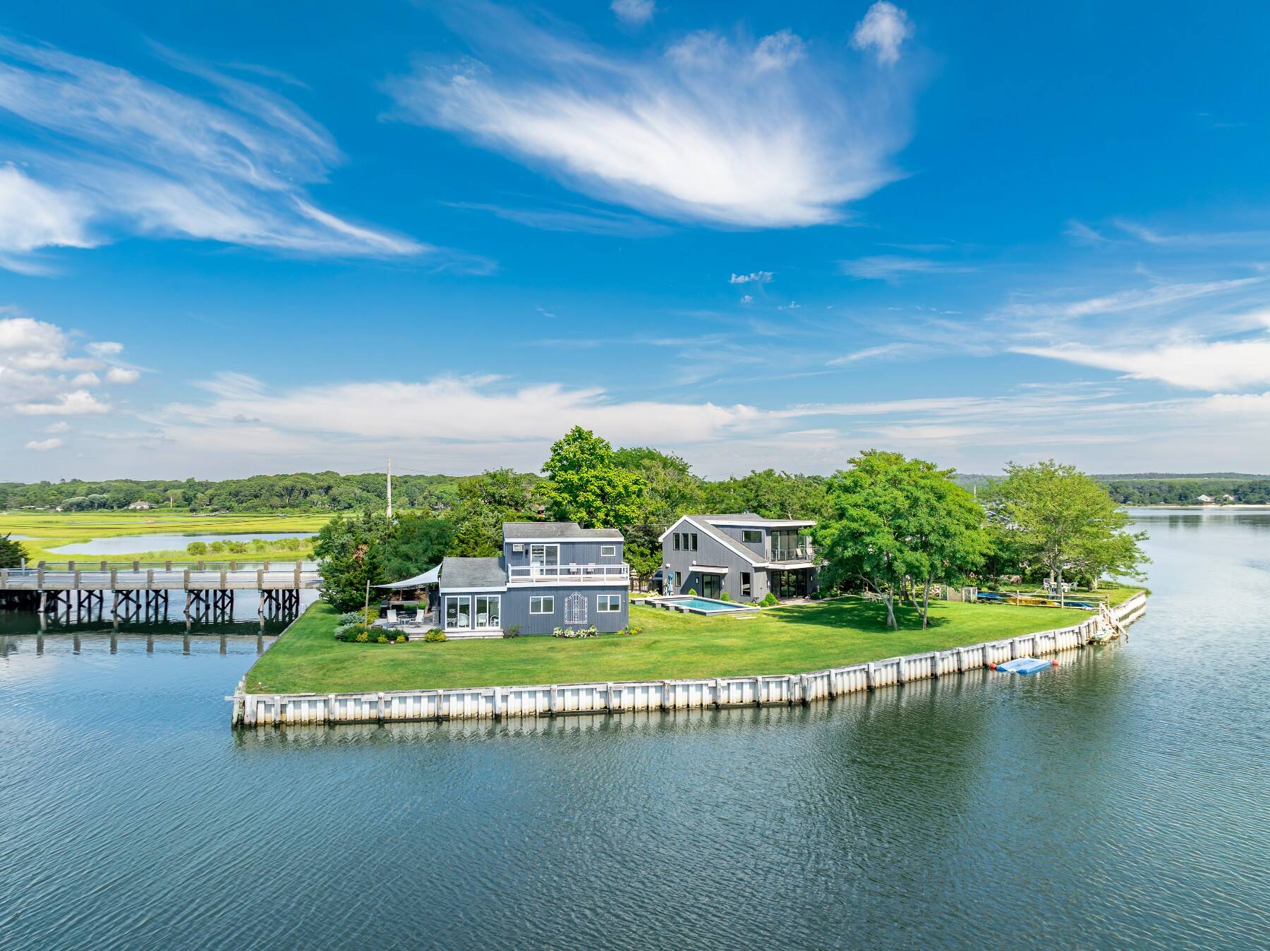WATERFRONT COMPOUND WITH POOL! Swim, fish, or launch the kayak, paddle board or sunfish sailboat(included) from this waterside haven! Located on Davis Creek, this Towd Point Beach Rental has unobstructed views of the harbor and beyond to Conscience Point National Wildlife Refuge. Featuring a cottage-style main house with three bedrooms and two bathrooms and a modern-barn style pool house that takes full advantage of the stunning views. The two-story pool house has two full bathrooms, a wet bar, an outdoor kitchen, and seating areas on both levels with sliding doors that bring the outside in - it's where you'll be hanging out. The main house also has outdoor dining, incredible views and an outdoor shower. The heated, salt-water gunite pool is NEW FOR SUMMER 2024 and includes an endless swim current for lap swimmers. Moments to the beautiful Towd Point Beach. [[Rental Registration # rp250468]] EH RR #: rp250468