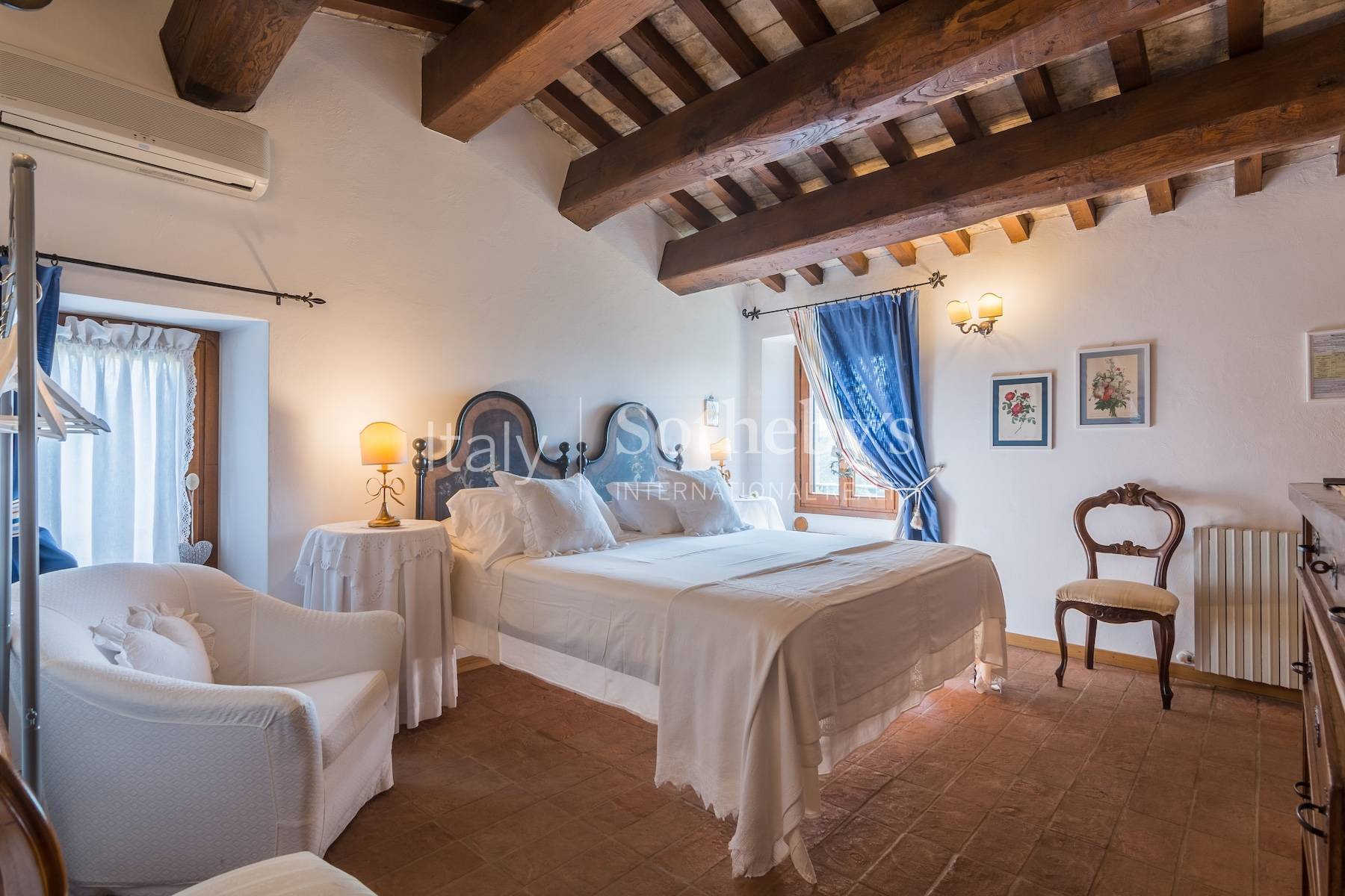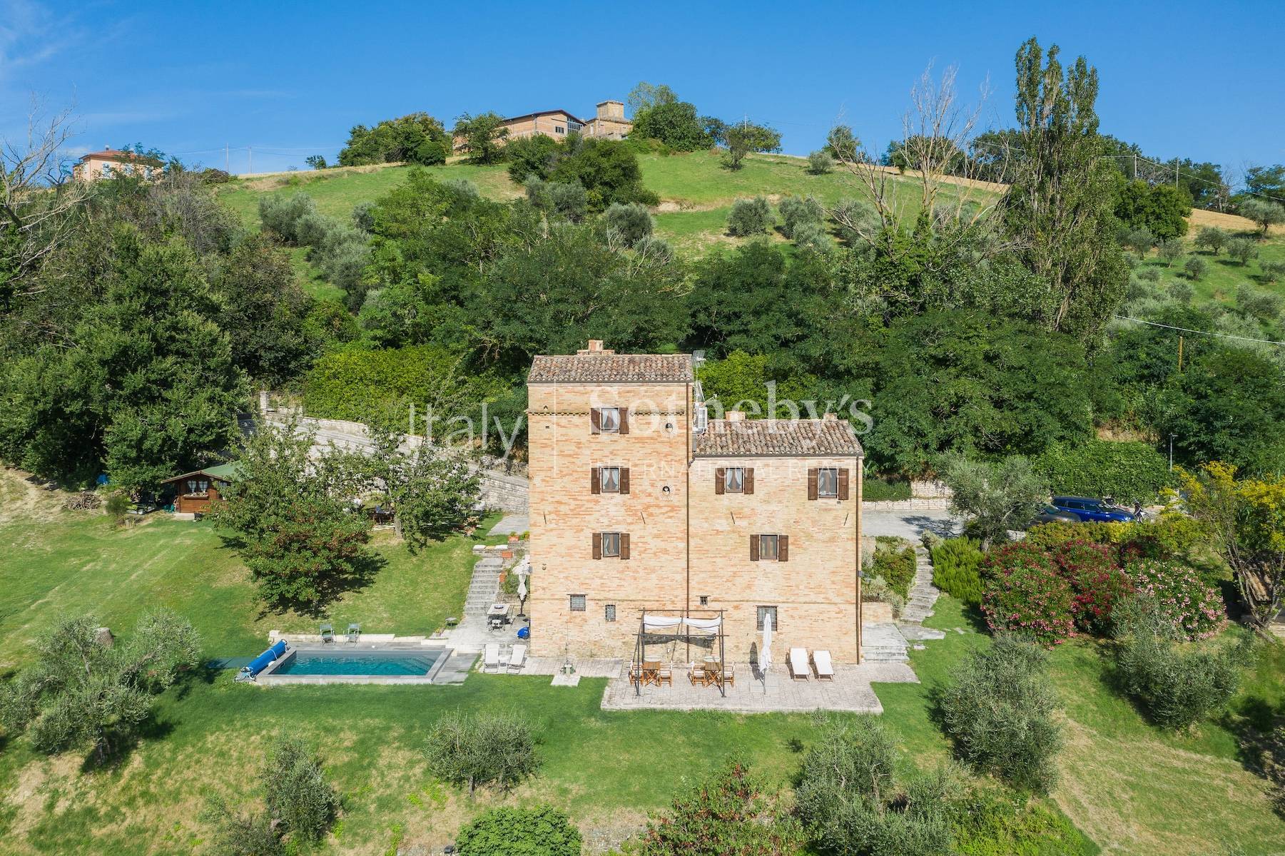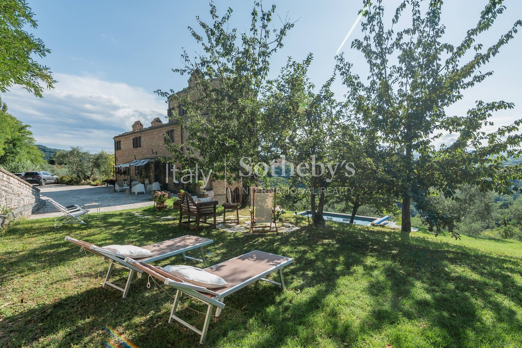 In the splendid setting of the Rimini countryside, there stands a restored house with 3 bedrooms and a 15th-century tower, just 20 minutes from the Adriatic Riviera.The lookout tower which dates back to Renaissance, the center piece of this wonderful period building that was completely renovated in 1998, offers ample, stylish living spaces with a top-quality finish.The house which spans 4 floors comprises:A basement with independent outside access, a kitchen with fireplace, a dining and living room and a delightful wine cellar. On the ground floor, there is an entrance hall, a large kitchen, a dining and drawing room with a wood-burning stove, a further drawing room and a complete bathroom. On the upper 2 floors, there is a master bedroom with walk-in wardrobe and ensuite bathroom, two further double bedrooms each with bathroom and a linen cupboard.Outside, in the well-organised garden, there is a splendid swimming pool overlooking the private grounds (2 ha/ 4,9 acres with 180 olives) and the surrounding hills.The location is ideal as a permanent home or for holiday rentals, providing tranquility while being close to the beaches of Rimini and the historic center of Saludecio.