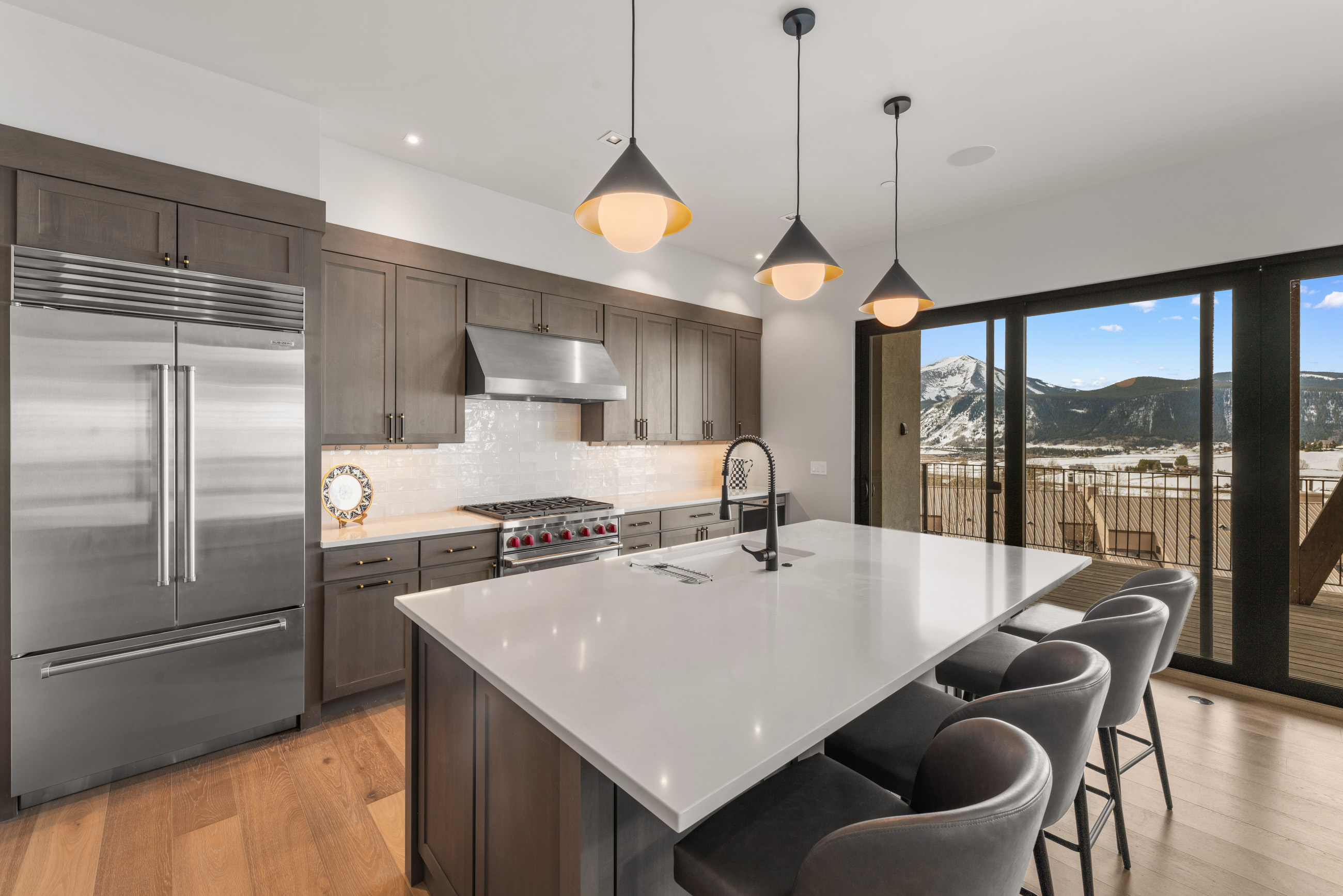 Welcome to The Peaks at Snowmass Mt. Crested Butte's first new neighborhood in 18 years! This location is special. Stunning and private. Each south-facing home features horizon-to-horizon mountain and valley views from every window. There isn't a bad seat in the house! Skiers in the family will find the Silver Queen ski lift & base area amenities are just a short walk away, so no need to drive. The Peaks at Snowmass was designed for ease of ownership with low maintenance and a true lock-and-leave lifestyle. No need to shovel snow or mow the lawn when you are in Crested Butte! The developer is offering a substantial decorator concession at closing so you can outfit the home anyway you desire!These modern mountain homes feature three unique levels of state of the art living! The upper level primary suite is air conditioned and offers a gorgeous bath, vaulted ceilings, a washer-dryer space, a large closet, a covered balcony and dramatic views of our valley's amazing peaks. The main level living, dining and kitchen areas enjoy air conditioning, floor-to-ceiling glass and sliders that showcase those same utterly stunning valley and peak views, a massive deck, Wolf-Subzero appliances, radiant in-floor heat, wide plank oak flooring, designer lighting, and a beautiful floor-to-ceiling gas fireplace with a cool metal surround. The main level also includes a bath and a flex space perfect for a home office or theatre use. The lower level features a junior suite with an attached bath and two more bedrooms that share a full bath with a double vanity. There is another washer-dryer set up and storage closets on this level. Two of the lower level bedrooms enjoy dedicated access to the hot tub patio out back. 155 Snowmass is 2,832 SF with 4 beds, 3.5 baths and includes a snowmelt driveway and a heated garage.