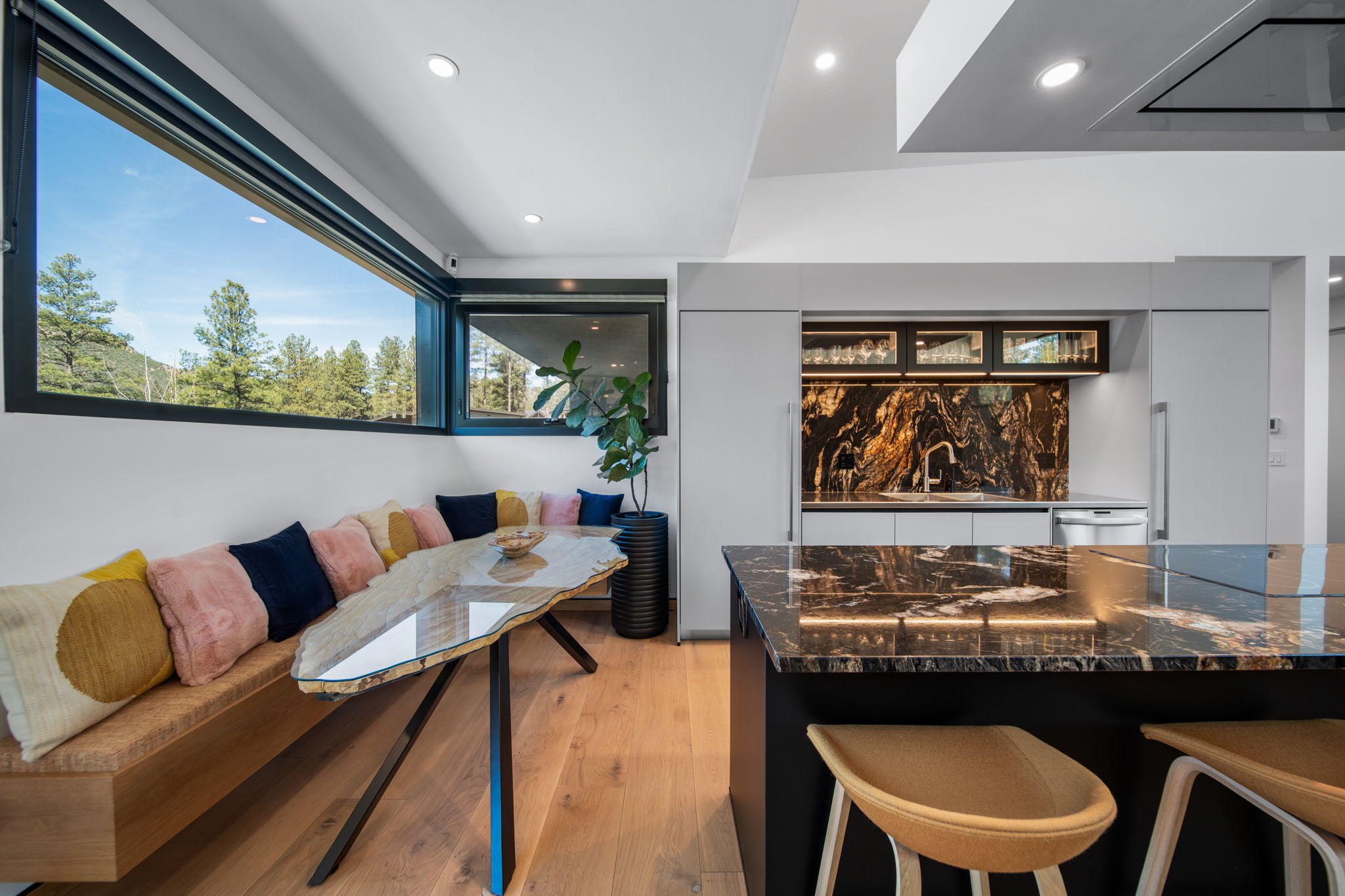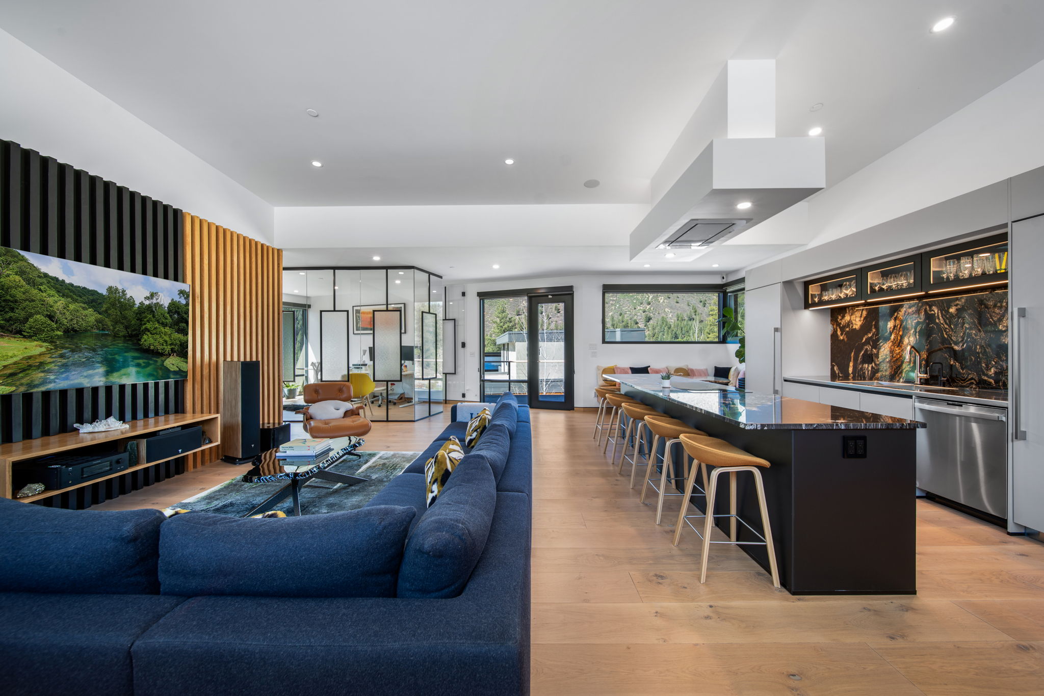 Discover the Ultimate in Sustainable Luxury Living. Step into a new era of elevated living with this one-of-a-kind, 3-bedroom, 3-ensuite bath masterpiece—where sleek, modern design meets cutting-edge sustainability, all set against jaw-dropping mountain vistas. This isn't just a home; it's a revolution in luxury living, crafted with the future in mind. Every inch of this custom-built retreat reflects unparalleled innovation and eco-consciousness, offering a lifestyle that’s as stylish as it is sustainable. From its ultra-efficient ICF foundation to the state-of-the-art HVAC system, and an impressive 8.8kW solar array that powers the home with a net-positive energy supply—this is sustainability reimagined. With integrated smart tech that seamlessly manages energy and water usage, green living here is effortless and uncompromising on comfort. Inside, you’ll find a curated global fusion of sustainable materials and custom finishes that elevate every space. Picture yourself cooking in a sleek, German-engineered kitchen or admiring the Italian minimalist doors that offer refined simplicity. Walk on European Cradle-to-Cradle oak floors, take in the artisanal Italian travertine tiles dipped in German silver, open local famed artisan custom built-ins, glide effortlessly between levels in a chic Peruvian bagasse-clad elevator, or drive into a 3-car garage ready for charging two electric vehicles. Every corner has been meticulously designed with a blend of sustainability and high style that you won’t find anywhere else. The open-concept layout invites an abundance of natural light and creates a seamless flow that enhances both the aesthetic and function of the home. With an eye towards the future, this home is thoughtfully designed to support Aging in Place, ensuring ultimate accessibility without compromising on modern sophistication. There’s nothing like this anywhere. To truly understand the magic of this home, schedule a private tour and immerse yourself in the perfect fusion of style, innovation, and eco-luxury that sets a new standard in cool, sustainable living. This mountain retreat is more than a home—it’s the future of living. This home proudly showcases materials adorned with prestigious certifications, such as Greenguard Gold, Havseal Green, FSC, Cradle-To-Cradle, and WaterSense, meeting rigorous US Green Council standards.