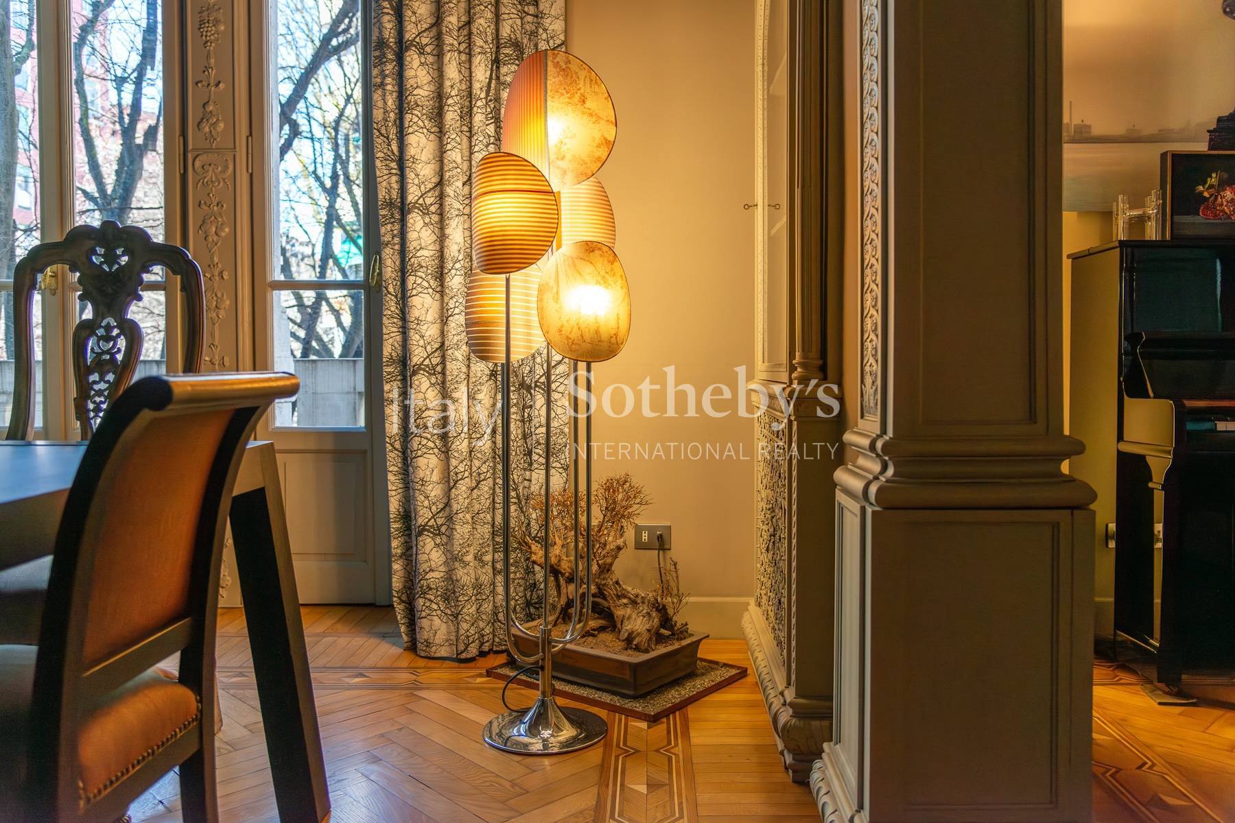 Nestled in the heart of Milan's most exclusive district, we present a distinguished apartment situated on one of the city's most coveted streets.This exceptional property blends elegance, ample space, and an enviable central location, ideal for those seeking a refined and distinguished living environment. The interiors are characterized by a harmonious layout designed for stylish and comfortable living. A striking living area unfolds into a quadruple lounge, perfect for hosting receptions and formal gatherings, while adjacent spaces cater to luxurious daily life. The spacious, well-appointed kitchen boasts top-tier appliances, combining functionality with sophistication.The sleeping quarters feature generously sized, comfortable bedrooms adorned with high-quality finishes that enhance each room's charm. Impeccably designed bathrooms, premium materials, and abundant natural light contribute to a uniquely inviting atmosphere. Five large balconies adorned with sculptural friezes embellish much of the house's perimeter.The concierge service is available around the clock. The property also includes a cellar and attic, a mechanized double garage, and an additional outdoor parking space, ensuring every convenience is at your fingertips.