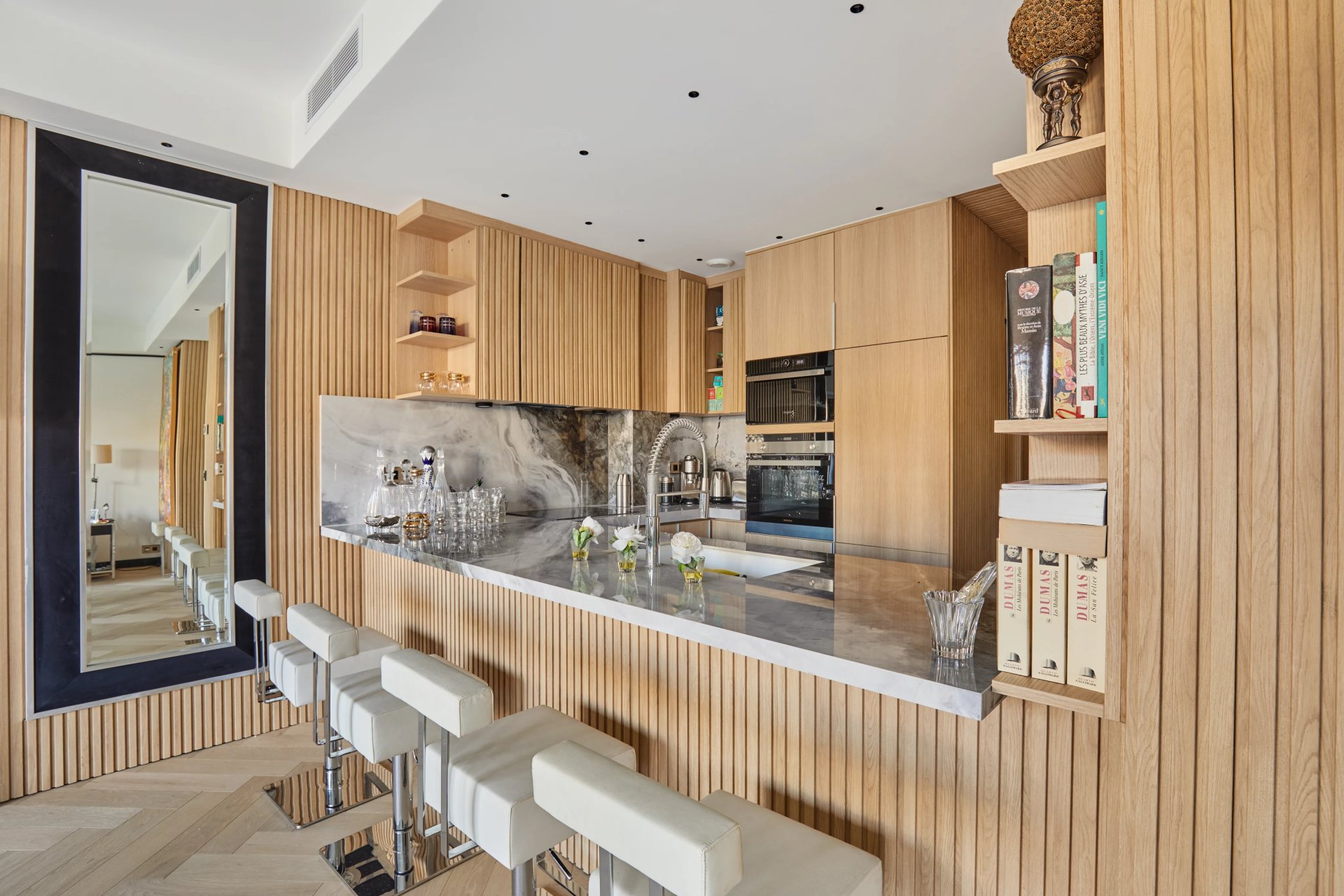 Avenue Foch. This entirely renovated and air-conditioned apartment on the 2nd floor of a relatively recent building enjoys open views. It includes a spacious living/reception room with balconies, a fully equipped open-plan kitchen, two bedrooms with a shower room, and two wc. Ample fitted storage space.