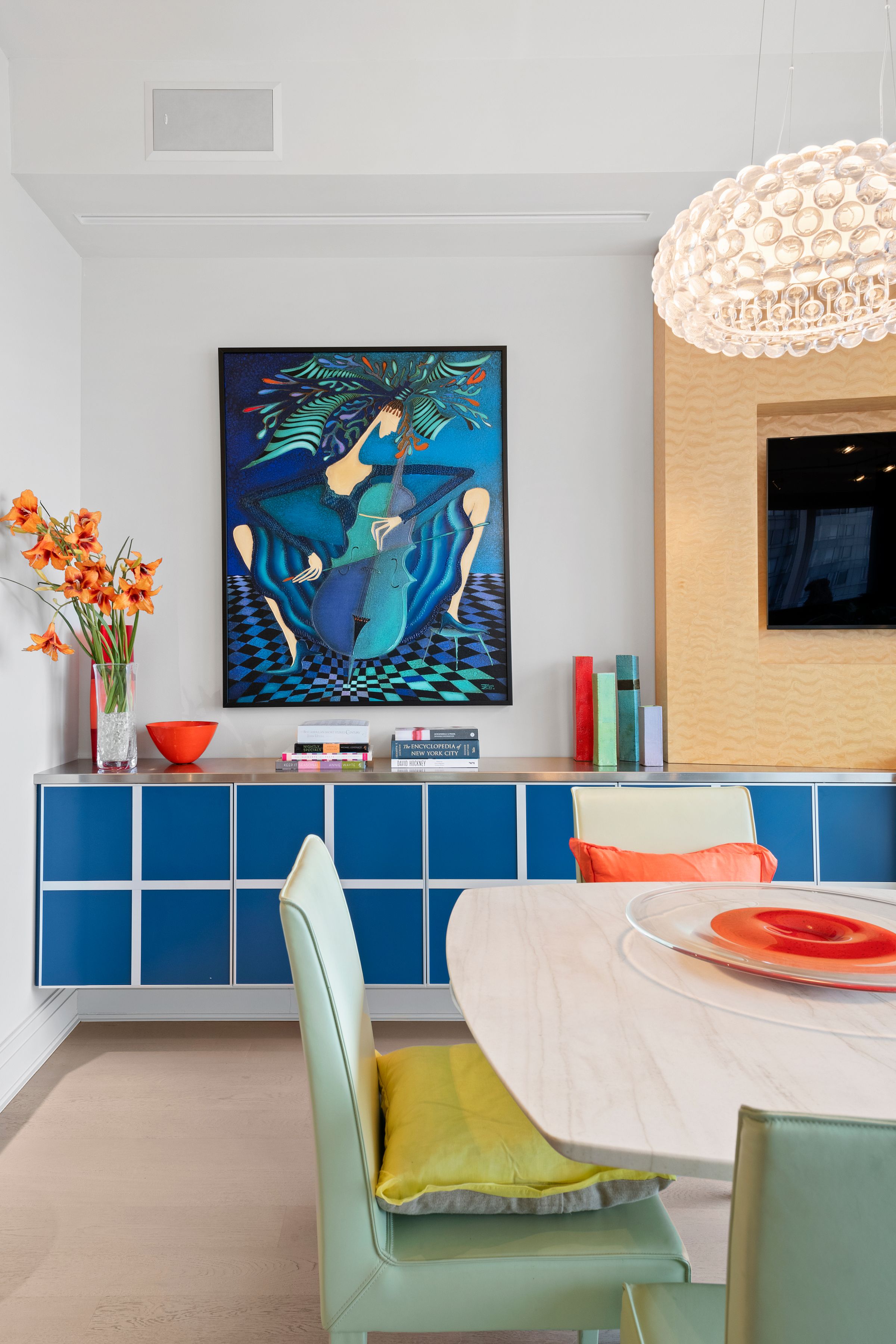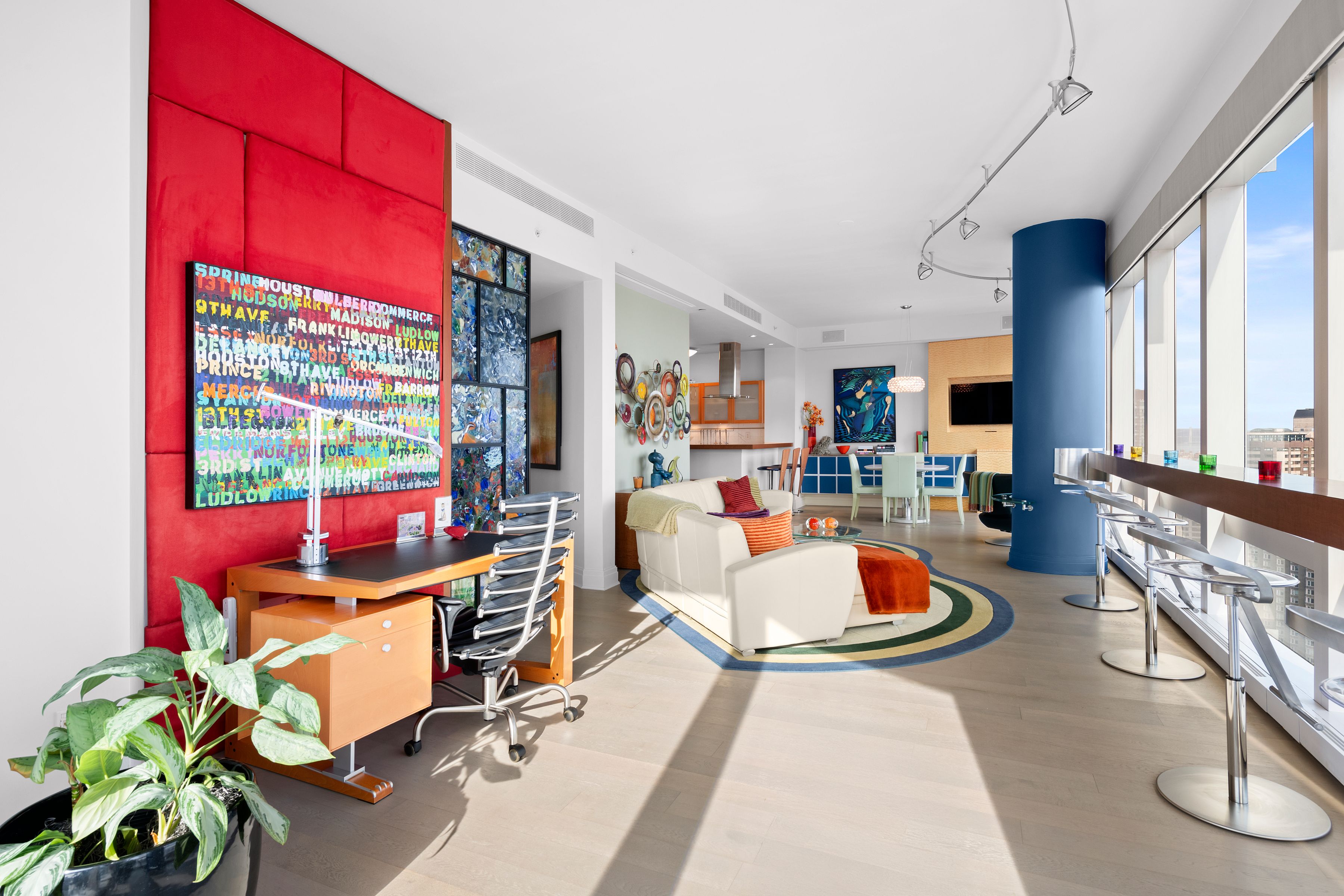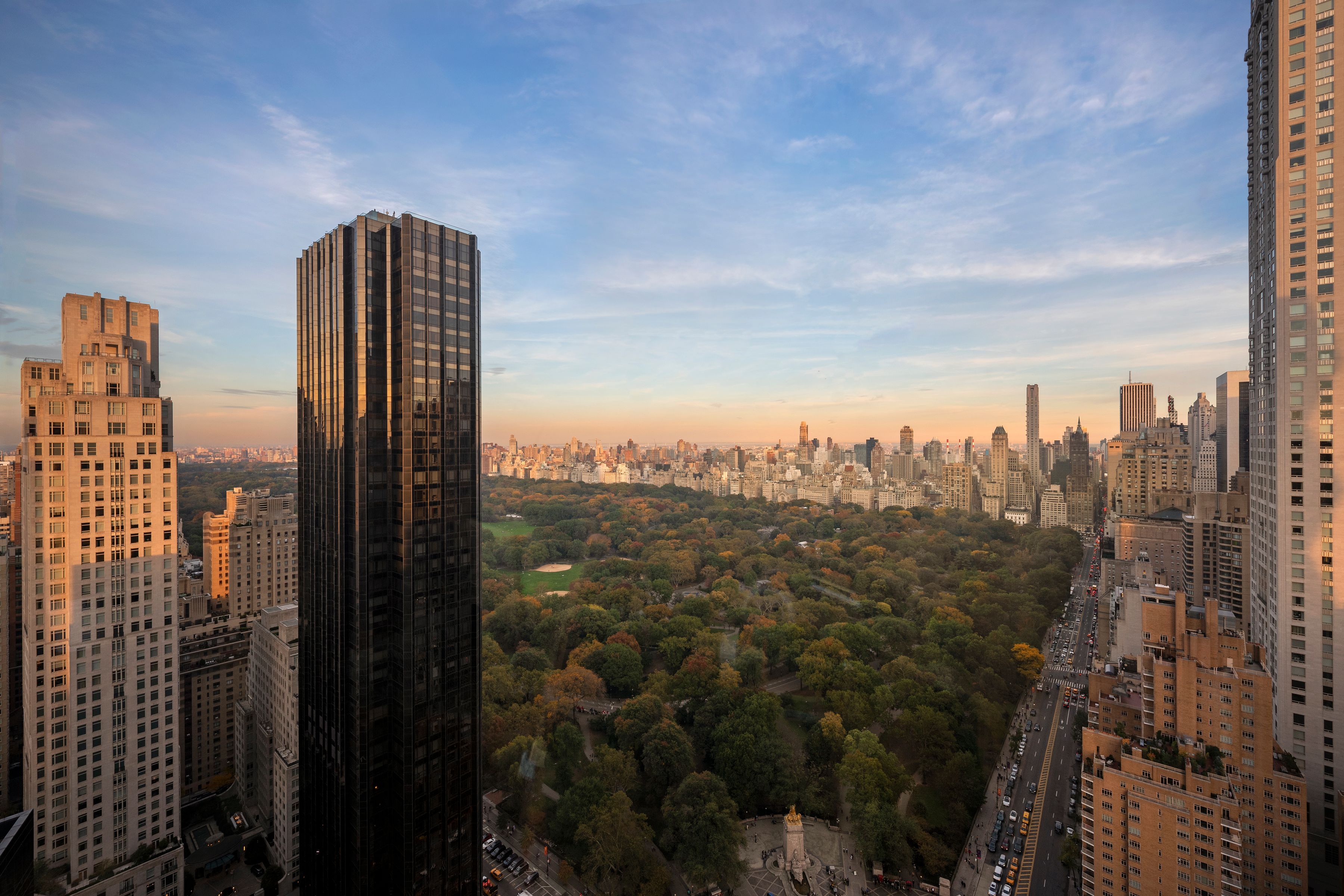 Central Park & Hudson River Views The breathtaking Central Park views and Hudson River sunsets, along with the Manhattan skyline illuminate every room seen from this spectacular residence with floor-to-ceiling windows. The apartment is beautifully renovated, designer and architecturally enhanced, and includes all-new wide white oak plank floors, an open kitchen, wood paneling, built-ins, custom furniture, and carpeting. There are playful aspects including the bar on the Park, stained glass panel, and custom lighting. A mix of wonderful bright and subtle colors highlights the magnificent views. A 20ft entry gallery, perfect for large art, leads to the stunning 42-foot entertaining area with its direct Park, River, and skyline views. The park-facing third bedroom has been incorporated into the existing Great Room to create a sweeping expanse of views. The modern opened kitchen has magnificent Park views and offers top-of-the-line Meile and Subzero appliances with white marble countertops and flooring. There is custom cabinetry throughout and ample storage. The washer and dryer are located conveniently within the apartment, and there are many closets throughout. The private, primary bedroom suite offers, Hudson River and views along with an ensuite, marble bathroom with a double marble vanity, large porcelain soaking tub, and large glass stall shower. An additional bedroom with an ensuite cream travertine marble bathroom and river views complete the 1862 sq ft home. The 5-star condominium offers amenities on the 51st floor (Club 51) including a private screening room, state-of-the-art gym, private party space, children’s playroom, private massage room, and outdoor terrace. In-house and valet parking. As a resident, you have access to The Mandarin Oriental Hotel amenities. Enjoy the state-of-the-art fitness center and the 75-foot indoor pool. Direct access to the retail offering first-class dining experiences, Whole Foods Market, and world-famous shopping. \u2028Deutsche Bank Center (also One Columbus Circle and formerly Time Warner Center) is a mixed-use building on Columbus Circle in New York City. It was developed by The Related Companies and Apollo Global Management, and designed by David Childs and Mustafa Kemal Abadan of Skidmore, Owings & Merrill. Deutsche Bank Center consists of two 750-foot (230 m) two towers bridged by a multi-story atrium containing upscale retail shops. The building also contains office and residential tenants. The total floor area of 2.8 million square feet (260,000 m2) is occupied by office space, including the Residences Mandarin Oriental condominiums; the Mandarin Oriental hotel; and Jazz at Lincoln Center. The Shops at Columbus Circle is an upscale shopping mall located in a curving arcade at the base of the building, with a large Whole Foods Market grocery store on the lower level.