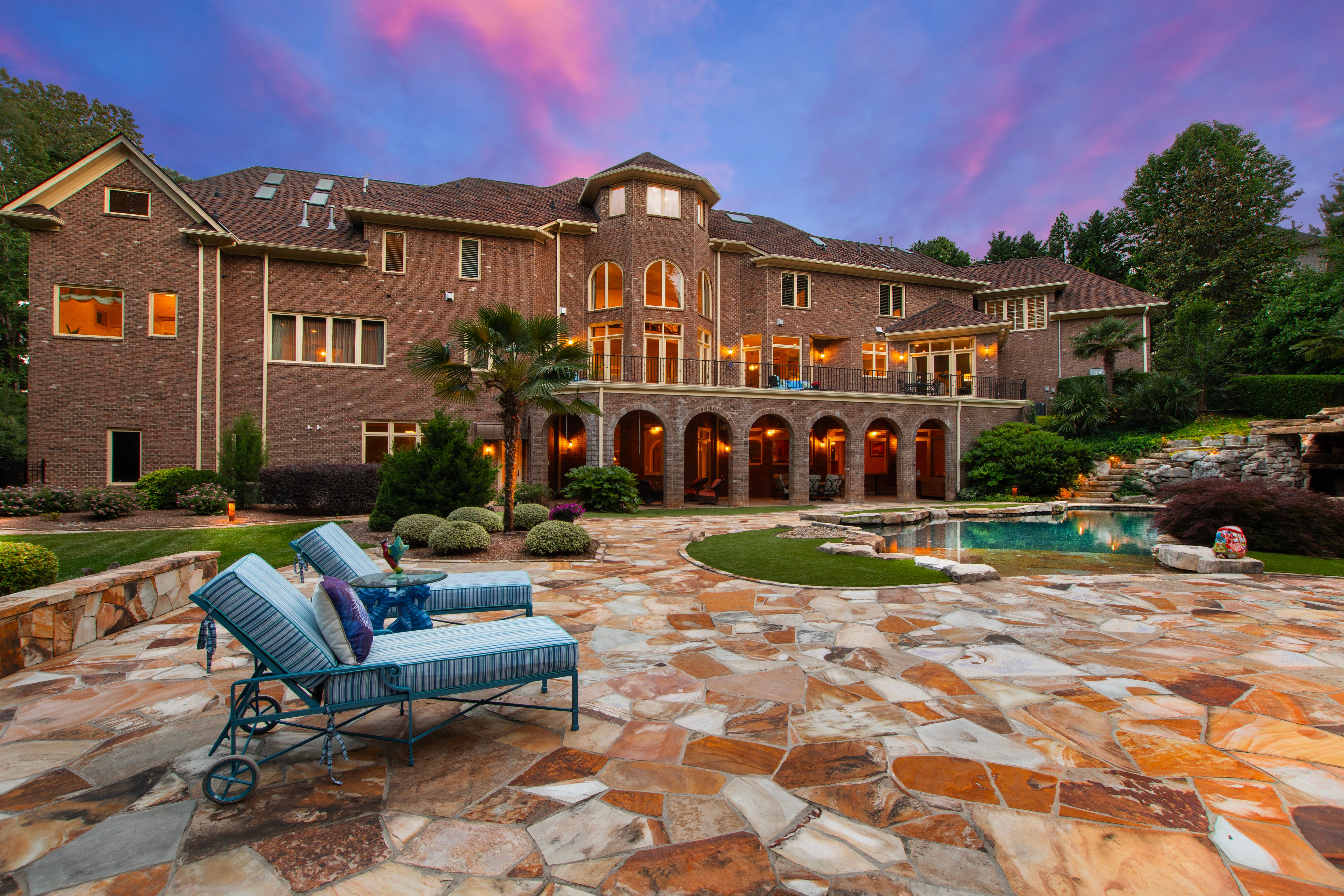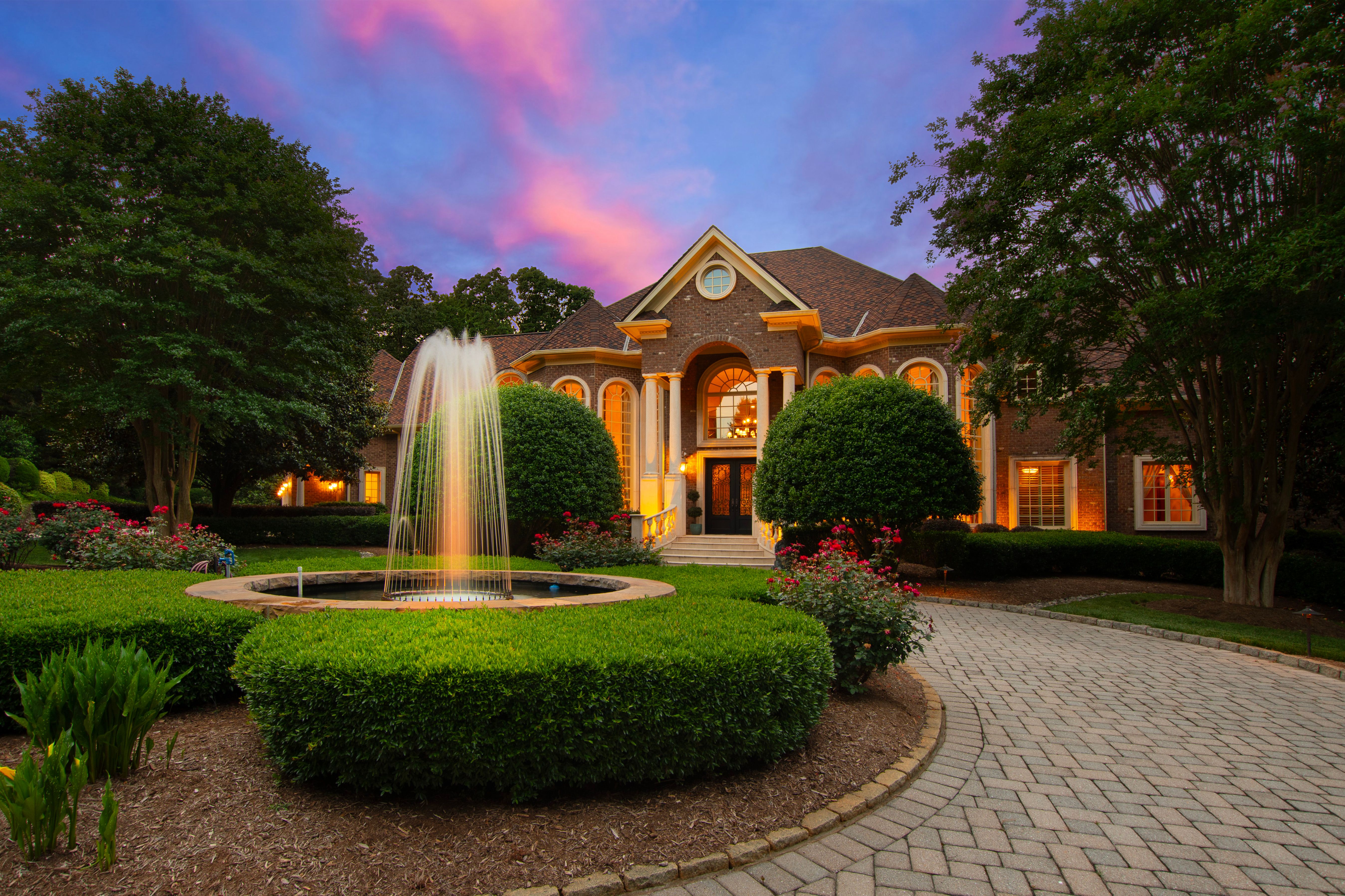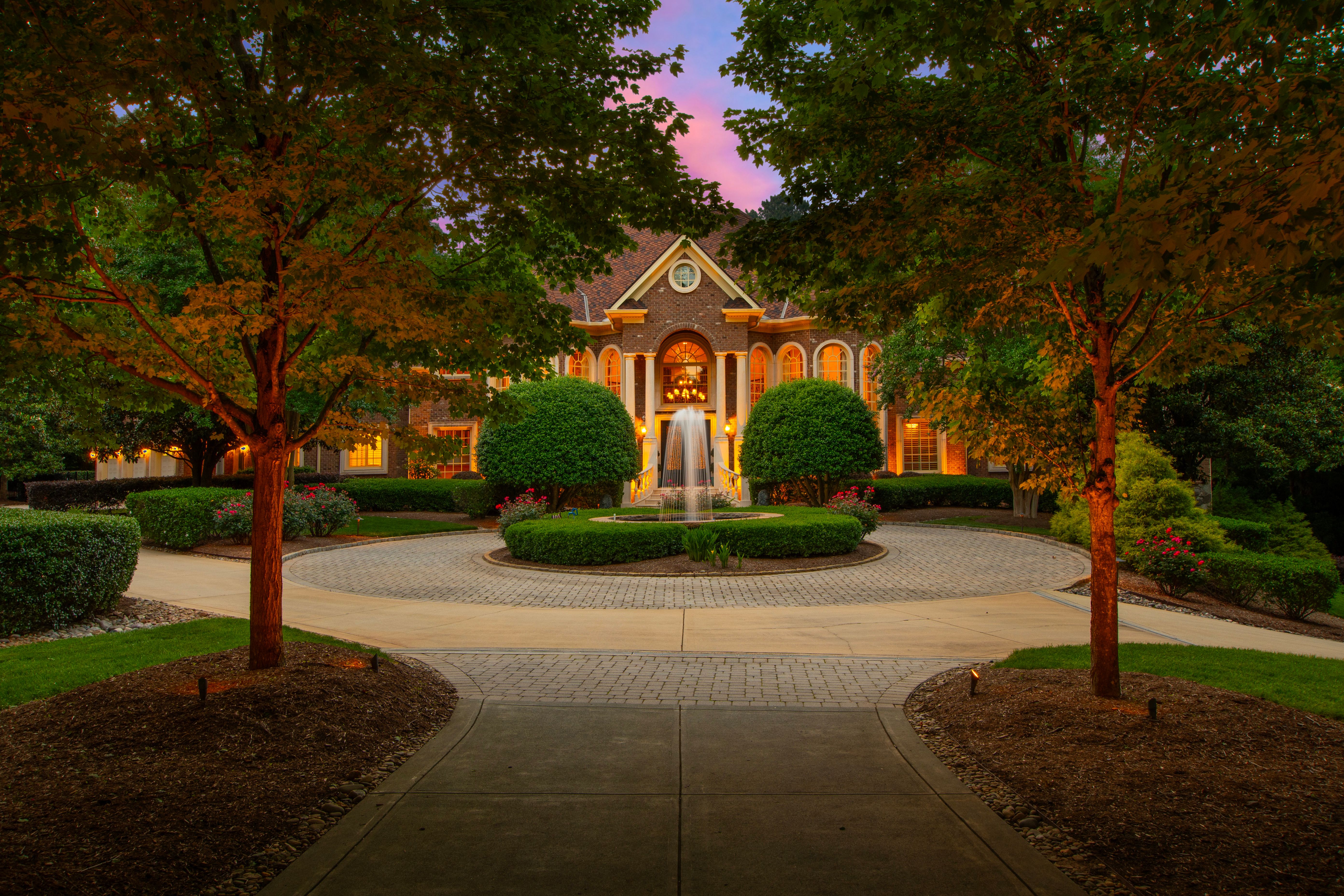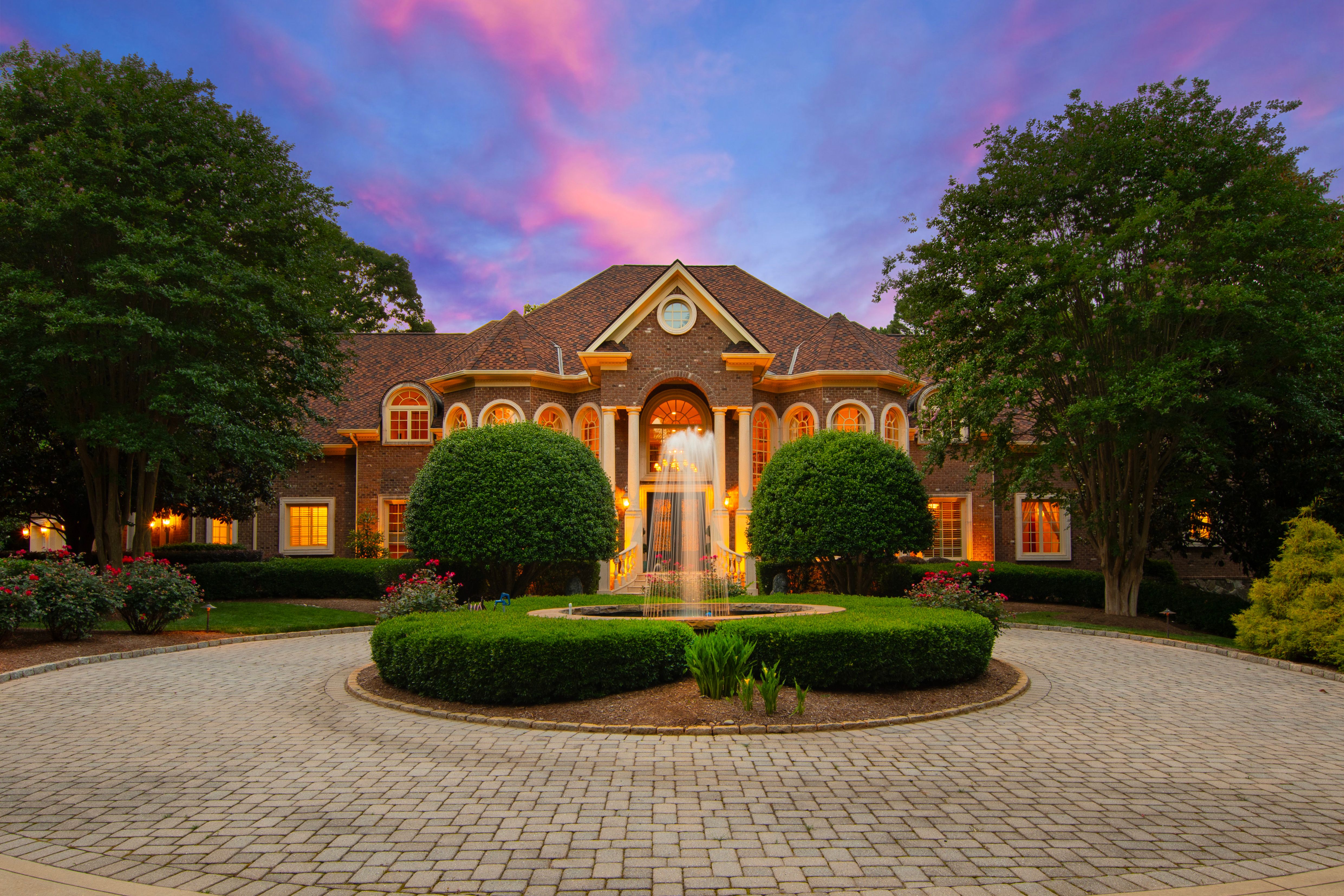Located in the exclusive gated community of Back Nine Estates near prestigious Wakefield Plantation, this stunning all-brick, gated estate is a rare find offering over 3.9 acres of private, exquisitely-landscaped grounds. The property features a brick-paver driveway encircling an impressive fountain, an extraordinary sandstone front porch, and multiple garages, including a three-car upper-level garage and lower-level RV and single-car garages with an electric charging station. The outdoor living space is unparalleled, with a zero-entry saltwater Pebble Tec pool, a rock waterslide, a grotto spa, an expansive stone patio, an outdoor fireplace and a 1,056-sf elevated terrace with panoramic views. Perfect for entertaining, the outdoor kitchen is equipped with a Lynx gas grill, granite countertops, task lighting, and ample storage. Inside, this home boasts an elegant grand foyer with double cascading staircases, travertine flooring, extraordinary millwork, Murano glass chandeliers and flows beautifully into multiple gathering spaces. The open kitchen adjoins a fabulous keeping room with floor-to-ceiling windows and features a gas fireplace, a breakfast bar, top-of-the-line Thermador appliances, a center island with a prep sink and one of two dishwashers, a walk-in pantry with Miele coffee/expresso maker, and a perfectly-placed butler's pantry. The owner's wing offers a private den with a two-sided gas fireplace, custom walk-in closets and dressing room, and a luxurious primary suite with a spa-like bath featuring heated floors, a huge steam shower, a bubble massage soaking tub, marble flooring, and dual water closets. The finished basement includes an in-law suite with a full kitchen and family room, game room, theater, custom wine cellar with 750-bottle storage, and more. The third-floor offers additional flex space with windows showcasing views of the stunning backyard oasis. This versatile space is perfect for dance, fitness, work, or relaxation, with plenty of natural light. Equipped with advanced systems such as a whole-house generator, whole-house water filtration, central vacuum, and an extensive security system, this home offers ultimate comfort and convenience. Ideal for those seeking luxury, privacy, and extraordinary amenities, this property is truly one-of-a-kind. Perfect for multi-generational living. Basement offers separate living quarters.