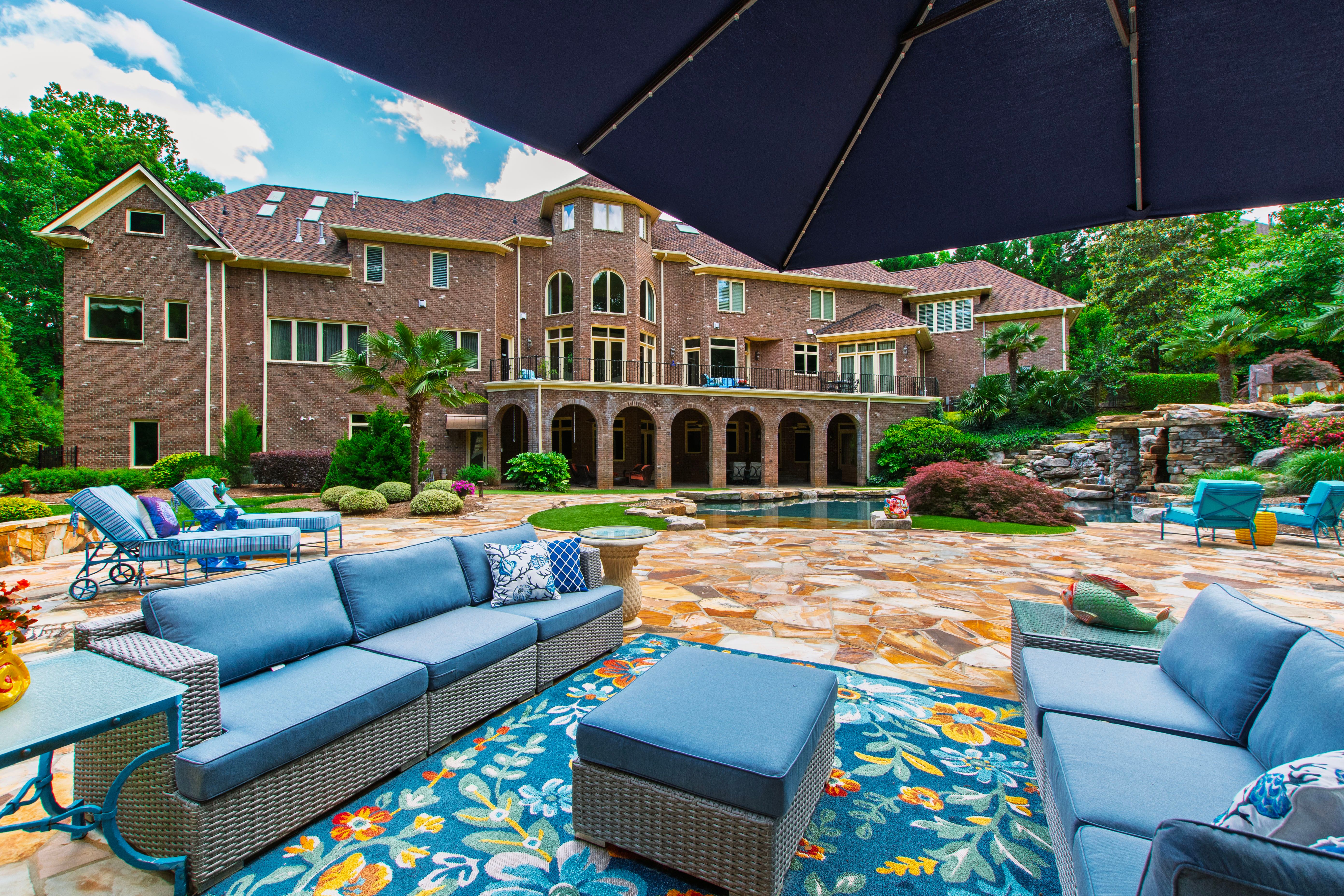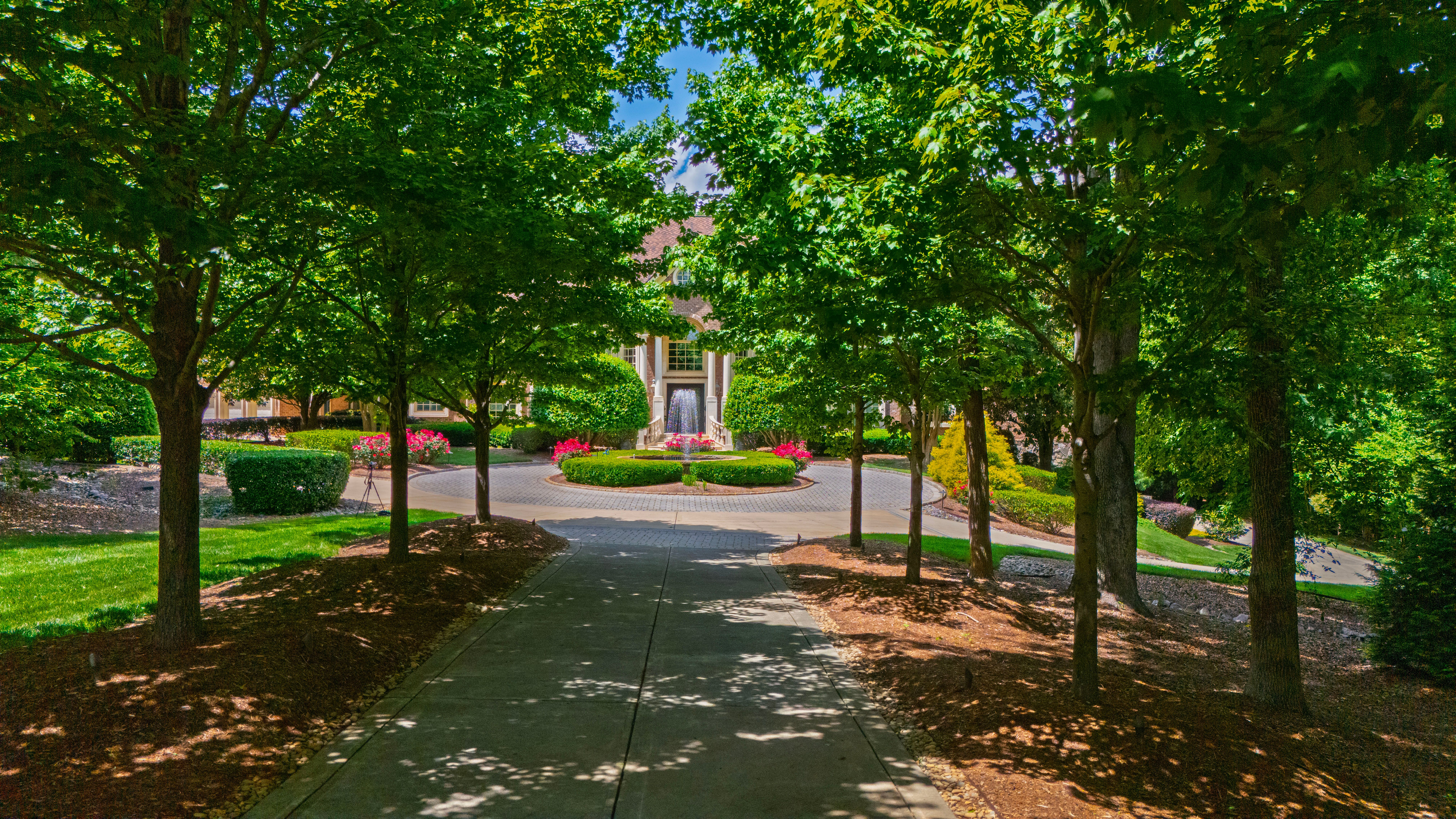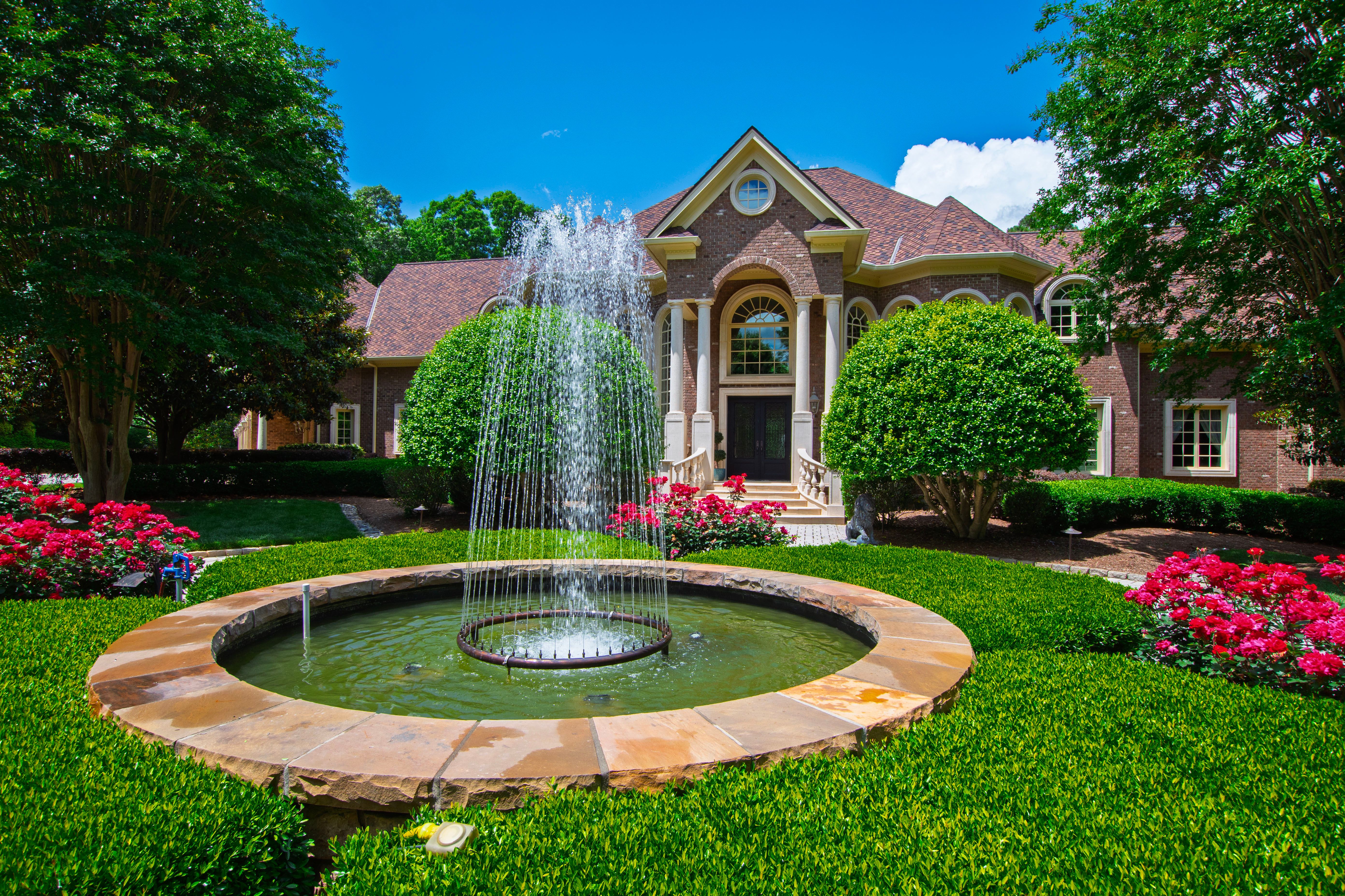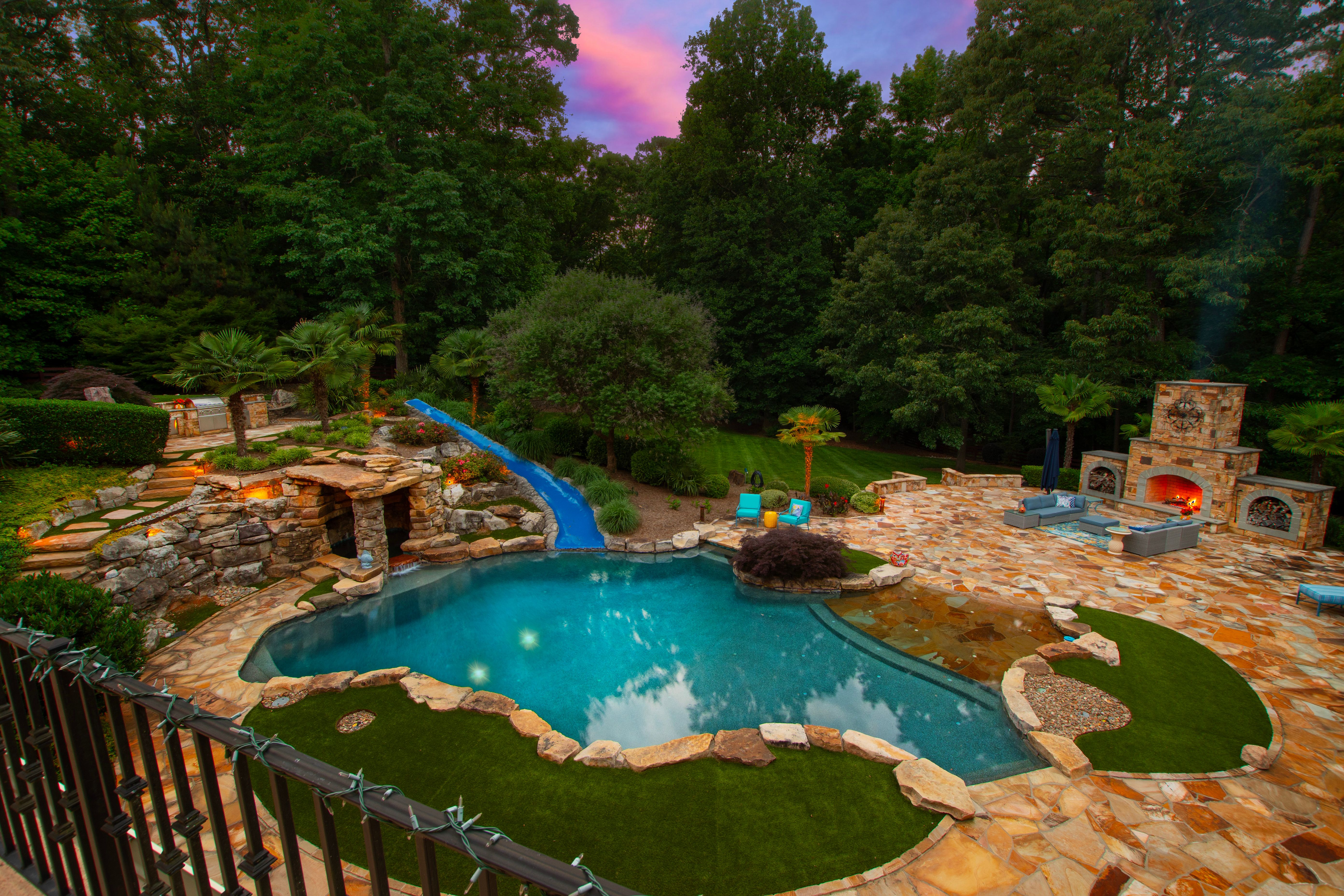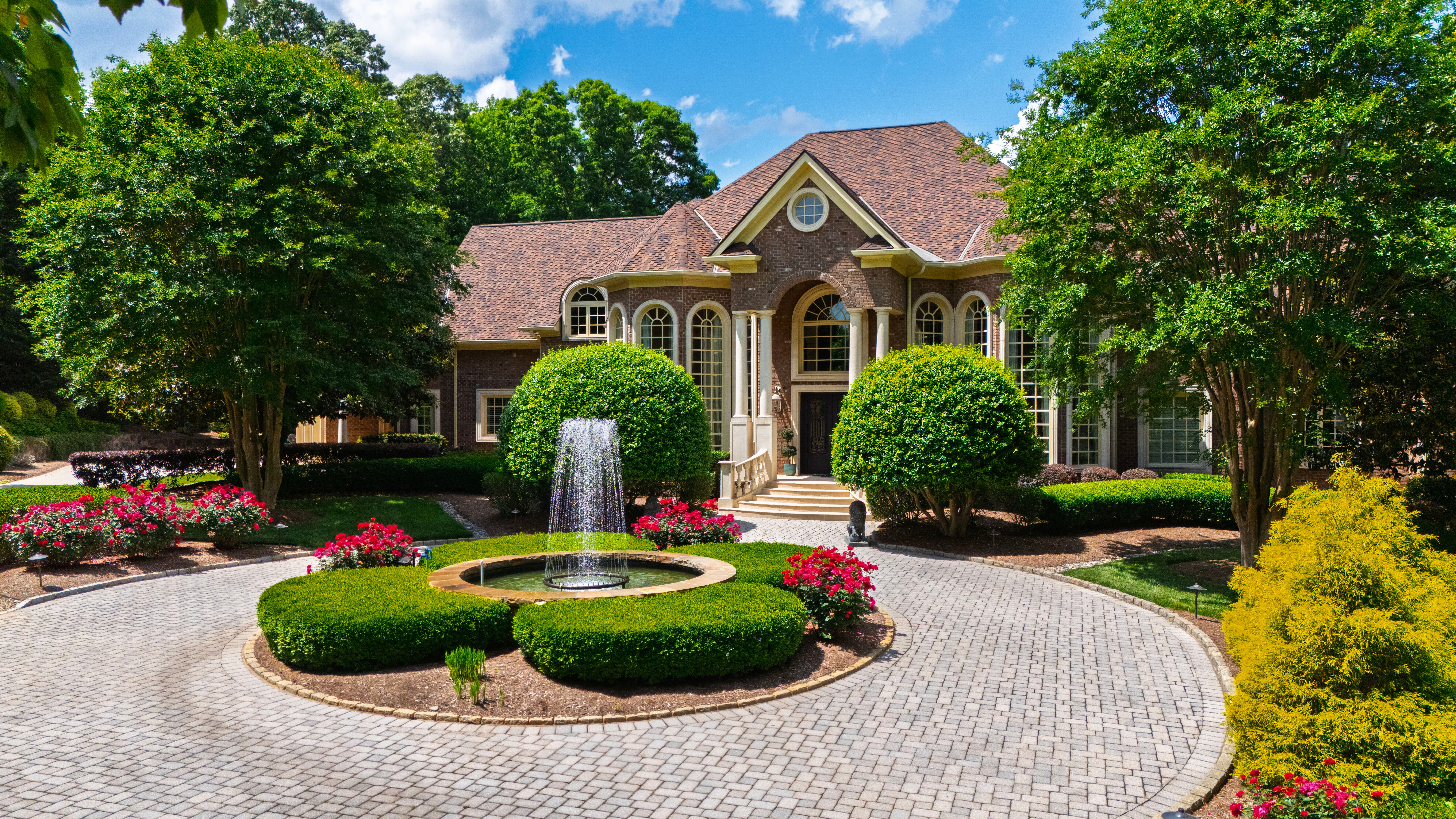 Located in the exclusive gated community of Back Nine Estates near prestigious Wakefield Plantation, this stunning all-brick, gated estate is a rare find offering over 3.9 acres of private, exquisitely-landscaped grounds. The property features a brick-paver driveway encircling an impressive fountain, an extraordinary sandstone front porch, and multiple garages, including a three-car upper-level garage and lower-level RV and single-car garages with an electric charging station. The outdoor living space is unparalleled, with a zero-entry saltwater Pebble Tec pool, a rock waterslide, a grotto spa, an expansive stone patio, an outdoor fireplace and a 1,056-sf elevated terrace with panoramic views. Perfect for entertaining, the outdoor kitchen is equipped with a Lynx gas grill, granite countertops, task lighting, and ample storage. Inside, this home boasts an elegant grand foyer with double cascading staircases, travertine flooring, extraordinary millwork, Murano glass chandeliers and flows beautifully into multiple gathering spaces. The open kitchen adjoins a fabulous keeping room with floor-to-ceiling windows and features a gas fireplace, a breakfast bar, top-of-the-line Thermador appliances, a center island with a prep sink and one of two dishwashers, a walk-in pantry with Miele coffee/expresso maker, and a perfectly-placed butler's pantry. The owner's wing offers a private den with a two-sided gas fireplace, custom walk-in closets and dressing room, and a luxurious primary suite with a spa-like bath featuring heated floors, a huge steam shower, a bubble massage soaking tub, marble flooring, and dual water closets. The finished basement includes an in-law suite with a full kitchen and family room, game room, theater, custom wine cellar with 750-bottle storage, and more. The third-floor offers additional flex space with windows showcasing views of the stunning backyard oasis. This versatile space is perfect for dance, fitness, work, or relaxation, with plenty of natural light. Equipped with advanced systems such as a whole-house generator, whole-house water filtration, central vacuum, and an extensive security system, this home offers ultimate comfort and convenience. Ideal for those seeking luxury, privacy, and extraordinary amenities, this property is truly one-of-a-kind. Perfect for multi-generational living. Basement offers separate living quarters.