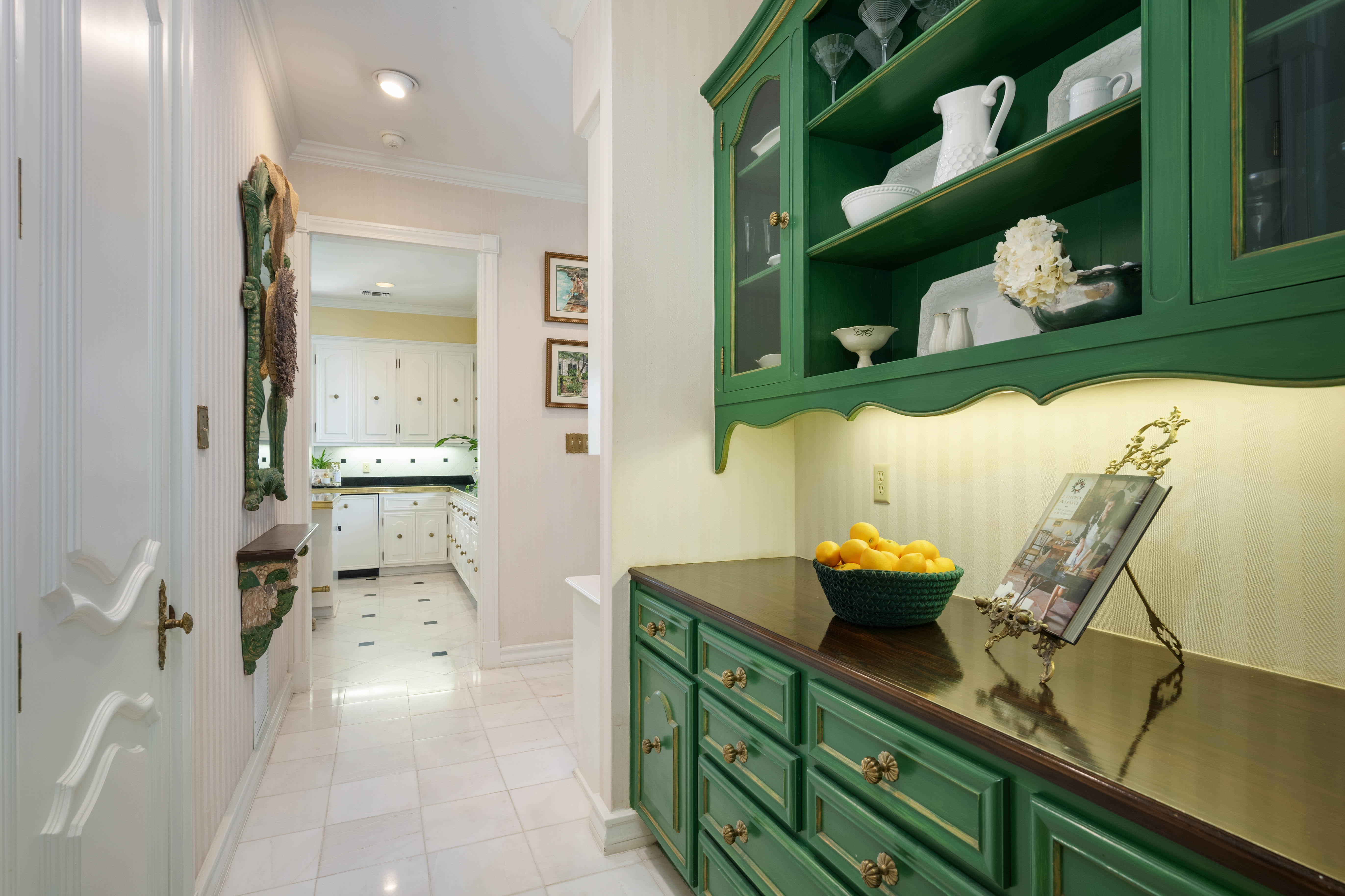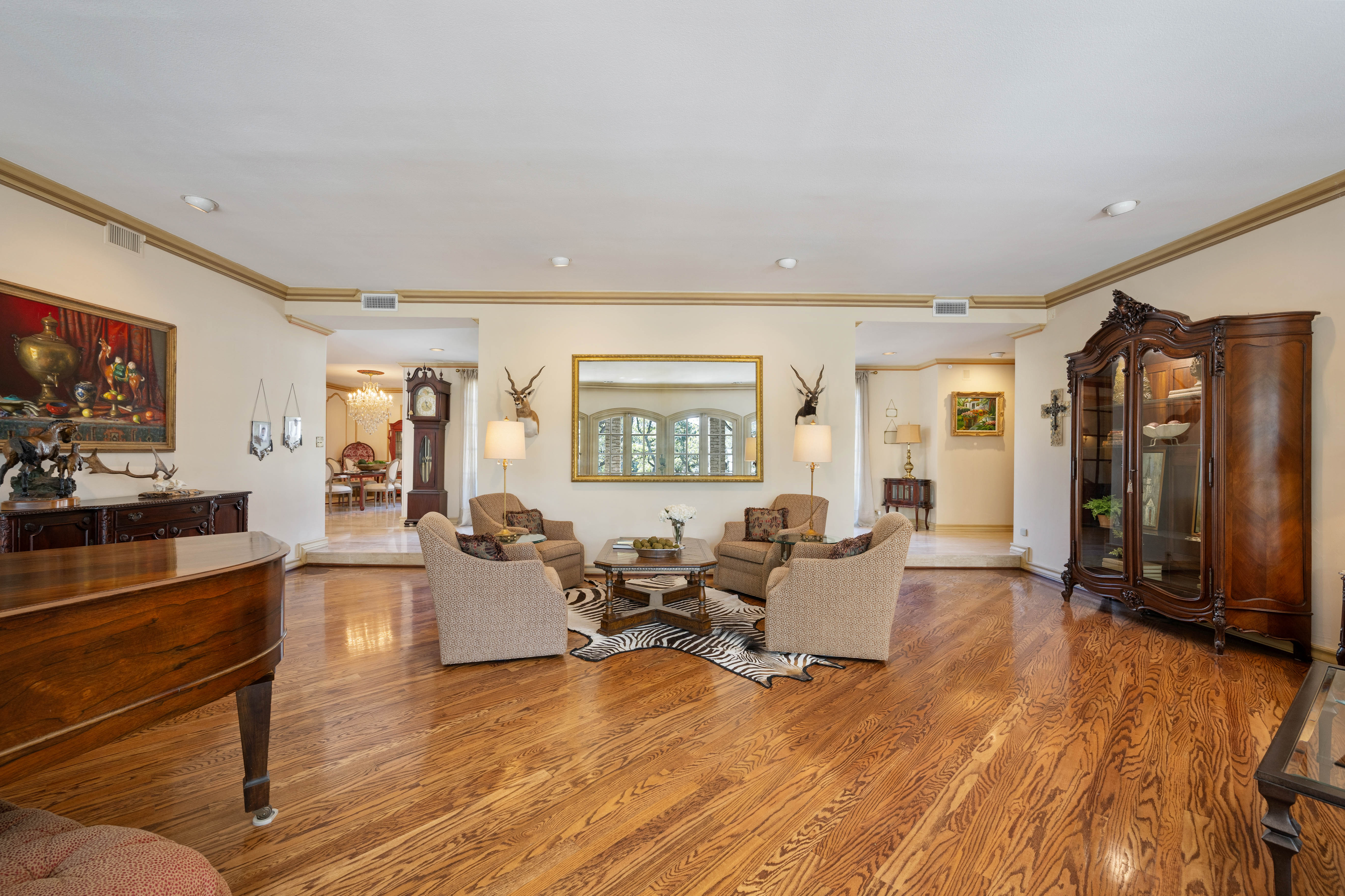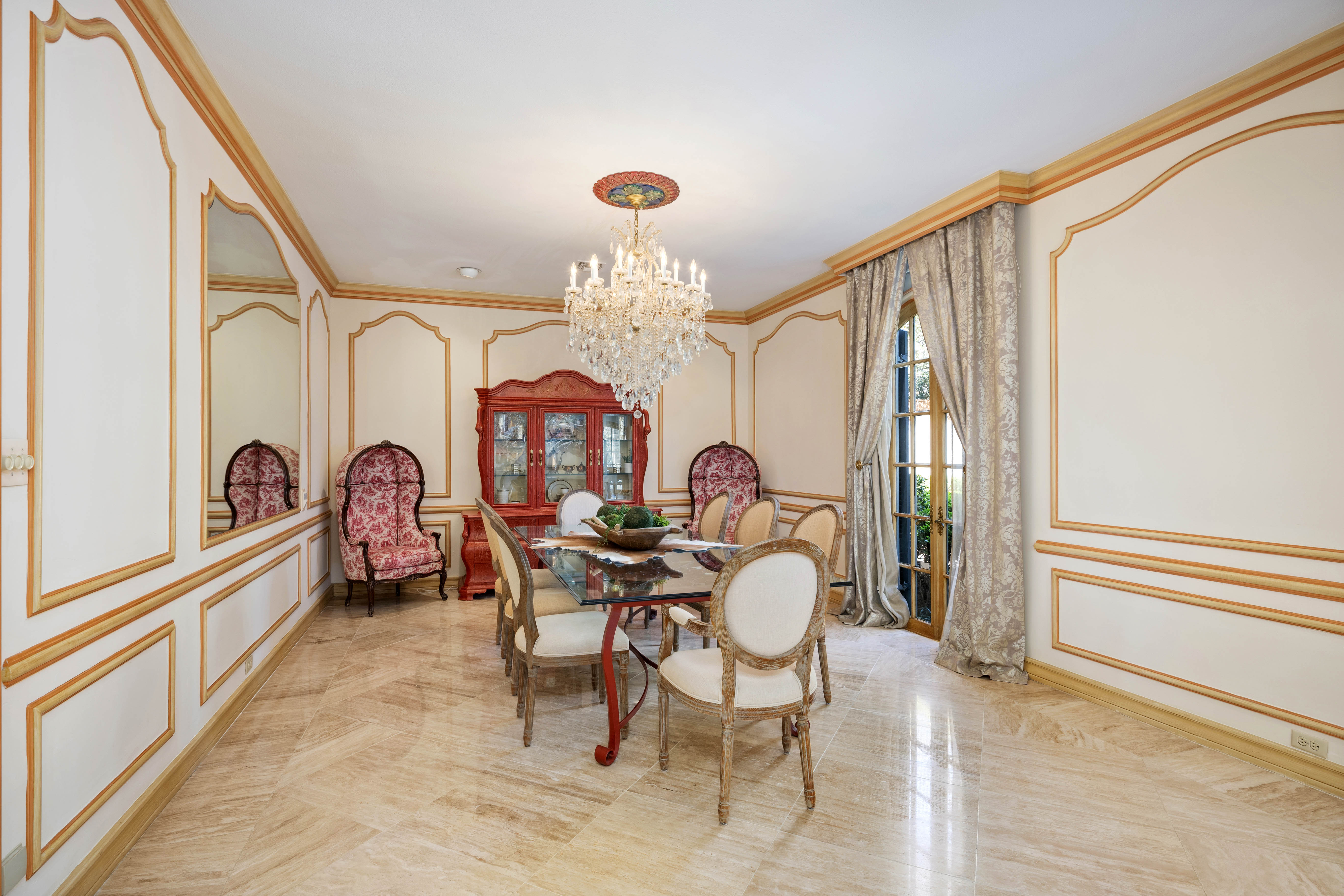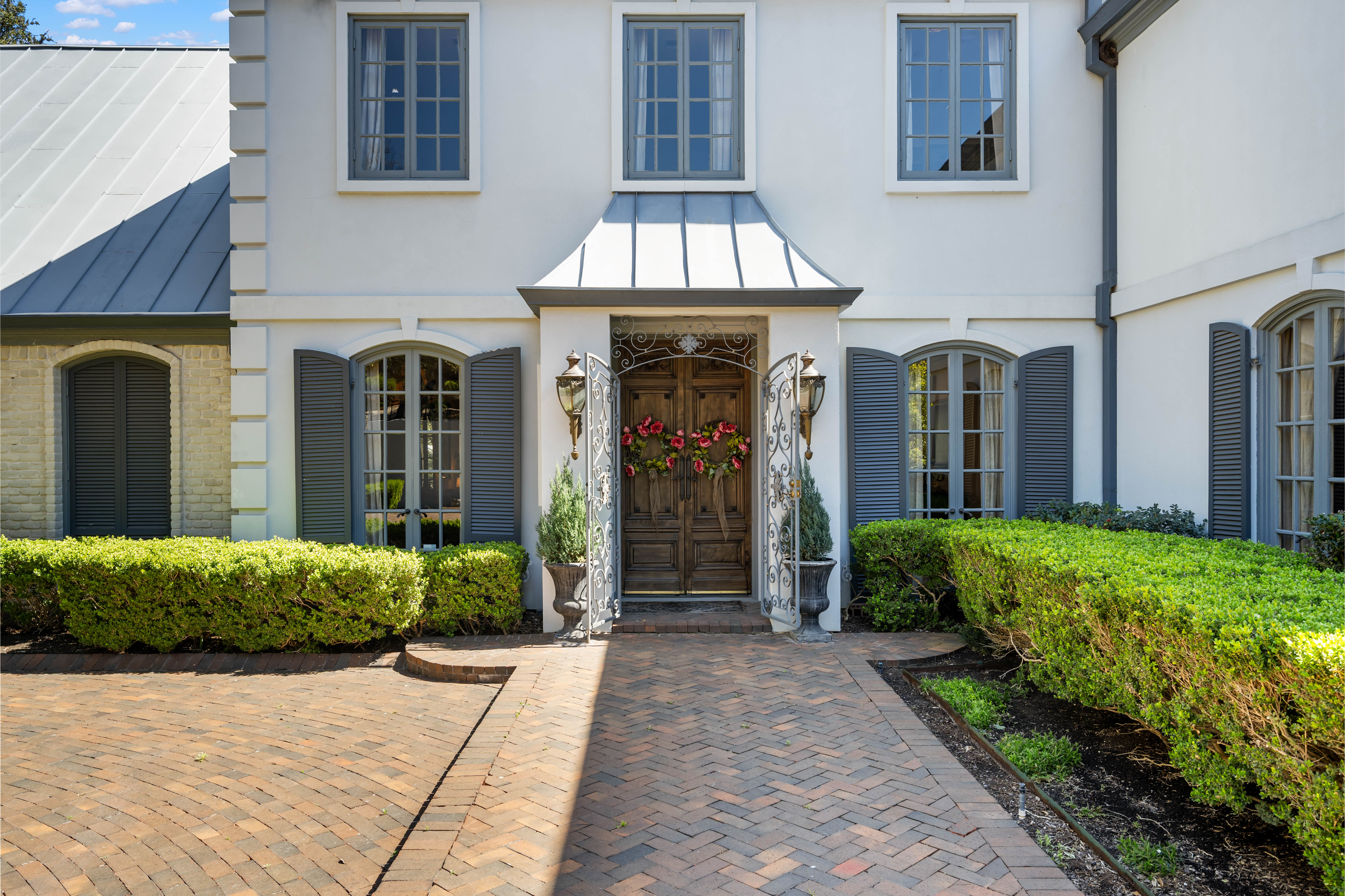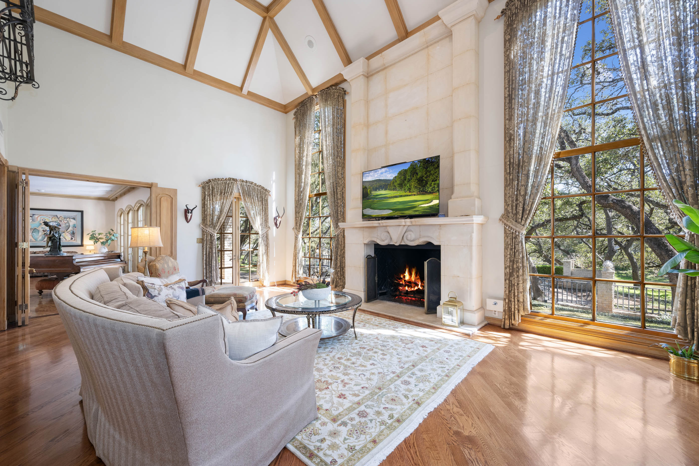 Tucked behind private gates on 6.5 acres of beautifully manicured grounds, this exceptional French-inspired estate offers a rare blend of timeless elegance and modern luxury in an unparalleled location. A winding, tree-lined drive welcomes you, leading past lush gardens and a picturesque 2.5-acre lake, setting the stage for this remarkable residence. Designed with influences from the French countryside, the home boasts soaring ceilings, graceful archways, and expansive windows that frame breathtaking views of the pool and surrounding landscape. Gleaming wood floors anchor the grand living spaces, seamlessly flowing from one room to the next. The formal dining room, illuminated by an intricate chandelier, sits adjacent to a thoughtfully designed island kitchen, perfectly positioned for both everyday living and entertaining. The private owner's wing is a true retreat, featuring a spacious suite, a cozy sitting area with a fireplace, and a remodeled spa-like bath. Throughout the home, bespoke details including preserved Sherle Wagner fixtures add a touch of timeless glamour. A richly paneled library and a stately billiards room provide additional spaces for relaxation and entertainment. Stepping outside, the estate continues to impress with an array of resort-style amenities. A tennis court, putting green, and sparkling pool with a spa create an entertainer's paradise, while a separate guest house complete with a built-in Teppanyaki grill offers a private sanctuary for visitors. A greenhouse and meticulously maintained gardens further enhance the property's serene ambiance. Offering grand proportions yet an inviting warmth, this estate is a rare find, secluded yet conveniently located just minutes from I-10, embodying the perfect harmony of refined sophistication and natural beauty.