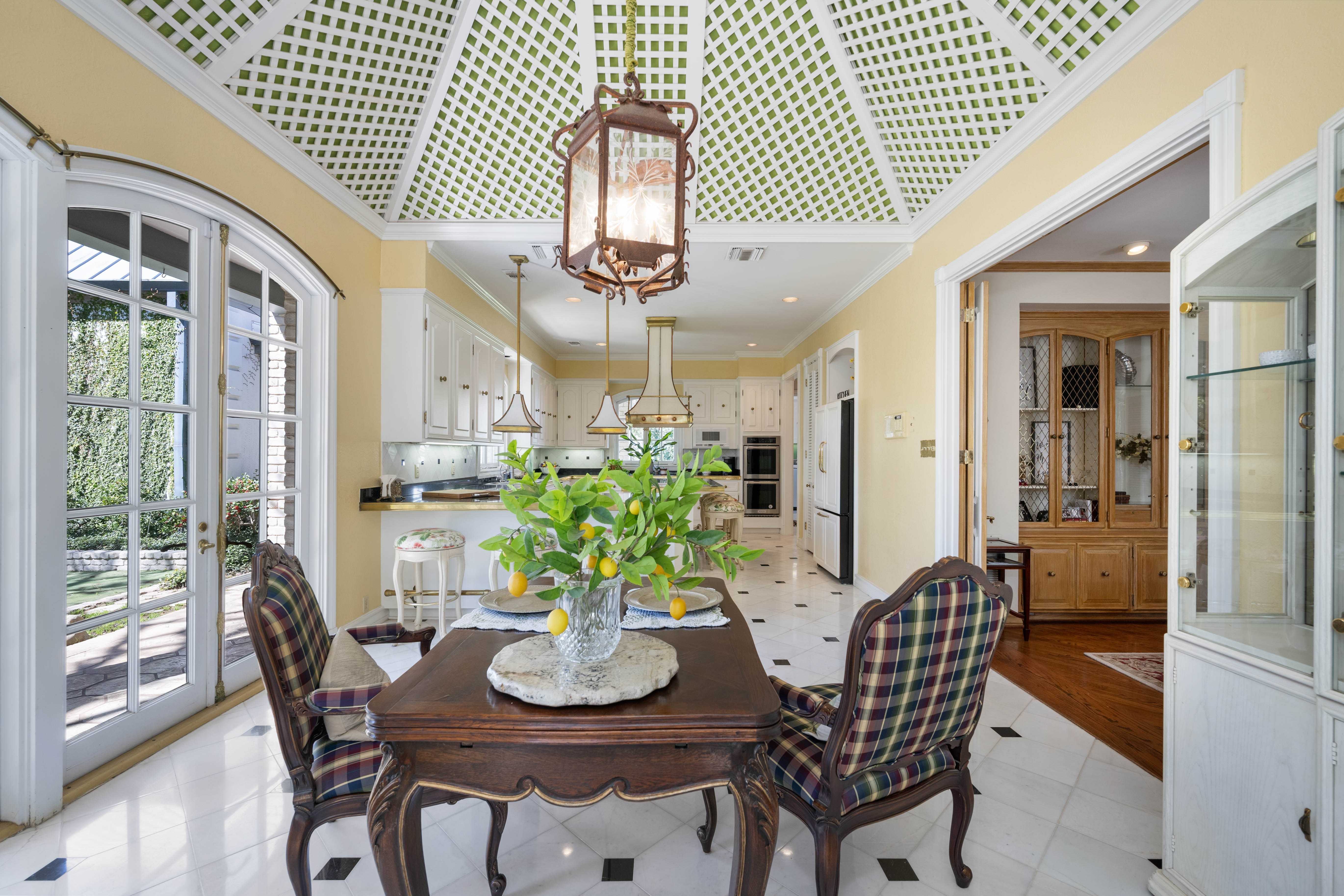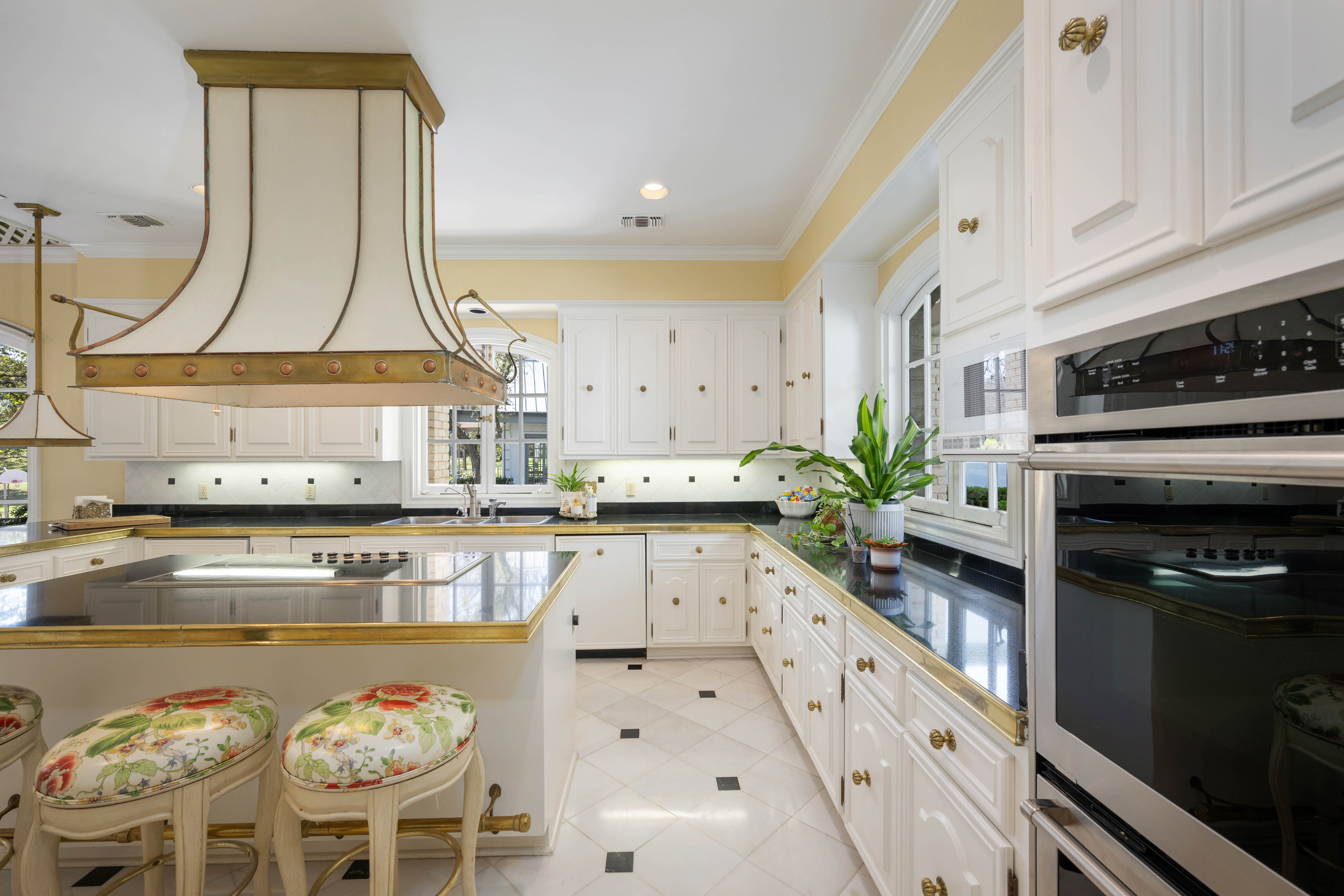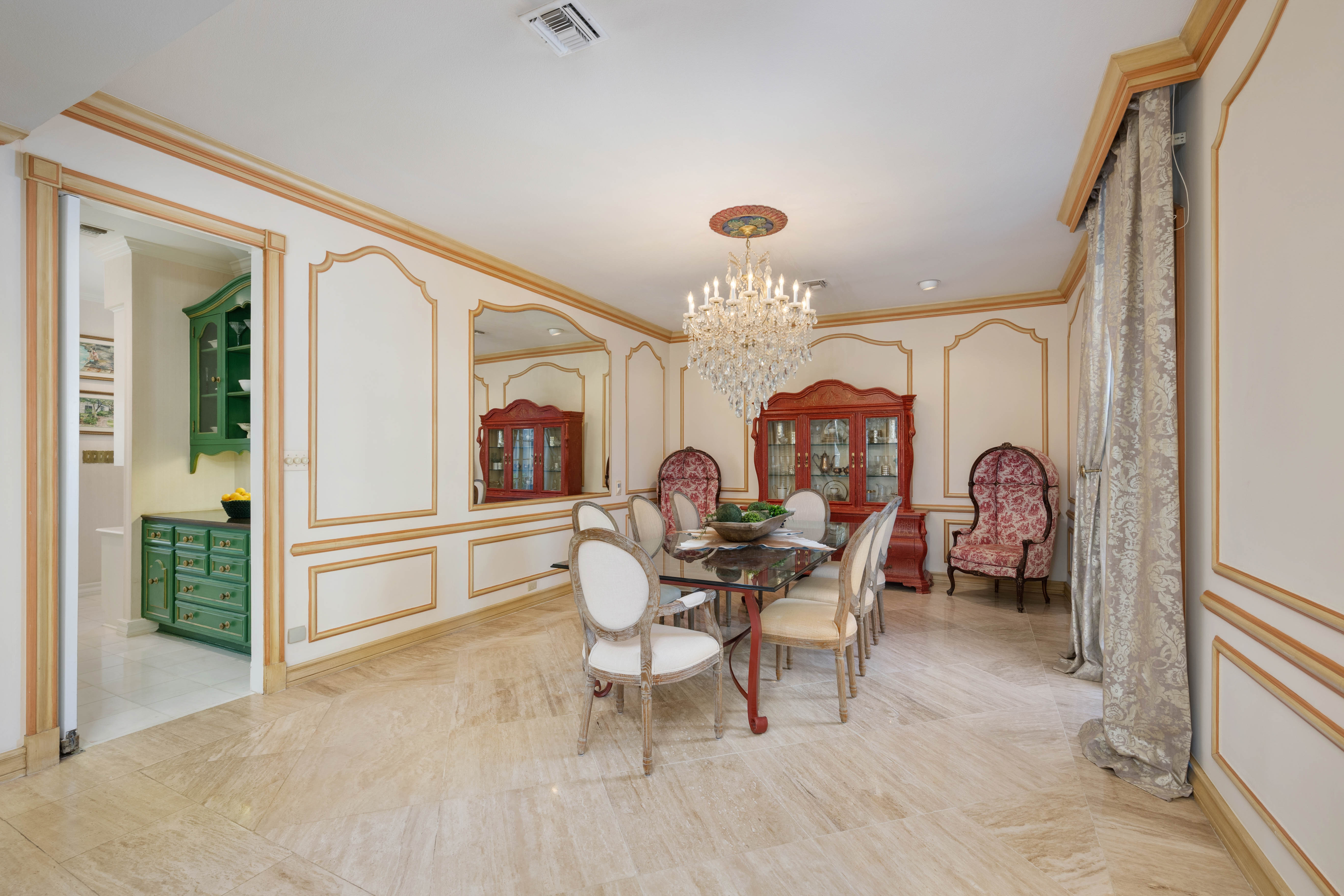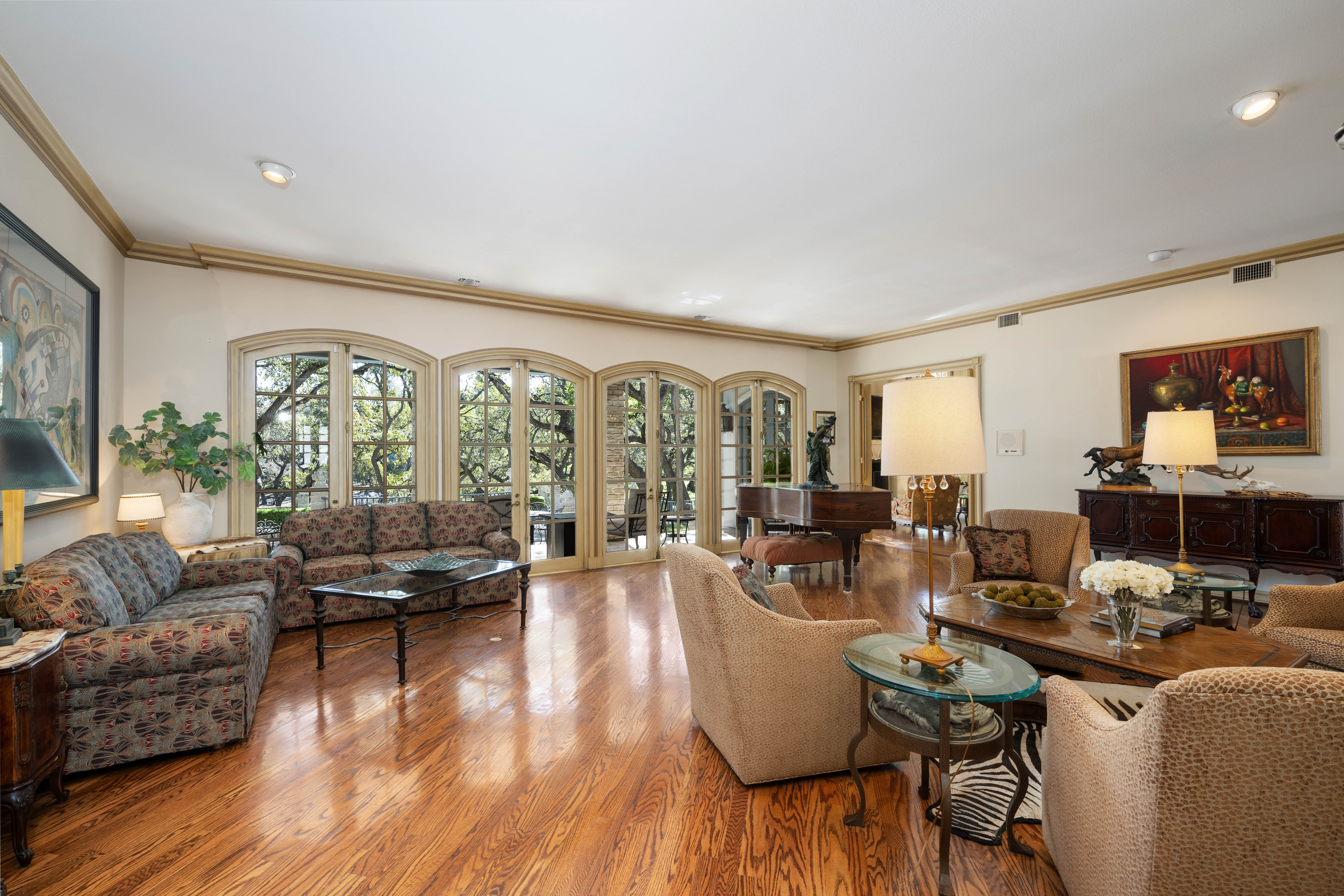 Tucked behind private gates on 6.5 acres of beautifully manicured grounds, this exceptional French-inspired estate offers a rare blend of timeless elegance and modern luxury in an unparalleled location. A winding, tree-lined drive welcomes you, leading past lush gardens and a picturesque 2.5-acre lake, setting the stage for this remarkable residence. Designed with influences from the French countryside, the home boasts soaring ceilings, graceful archways, and expansive windows that frame breathtaking views of the pool and surrounding landscape. Gleaming wood floors anchor the grand living spaces, seamlessly flowing from one room to the next. The formal dining room, illuminated by an intricate chandelier, sits adjacent to a thoughtfully designed island kitchen, perfectly positioned for both everyday living and entertaining. The private owner's wing is a true retreat, featuring a spacious suite, a cozy sitting area with a fireplace, and a remodeled spa-like bath. Throughout the home, bespoke details including preserved Sherle Wagner fixtures add a touch of timeless glamour. A richly paneled library and a stately billiards room provide additional spaces for relaxation and entertainment. Stepping outside, the estate continues to impress with an array of resort-style amenities. A tennis court, putting green, and sparkling pool with a spa create an entertainer's paradise, while a separate guest house complete with a built-in Teppanyaki grill offers a private sanctuary for visitors. A greenhouse and meticulously maintained gardens further enhance the property's serene ambiance. Offering grand proportions yet an inviting warmth, this estate is a rare find, secluded yet conveniently located just minutes from I-10, embodying the perfect harmony of refined sophistication and natural beauty.