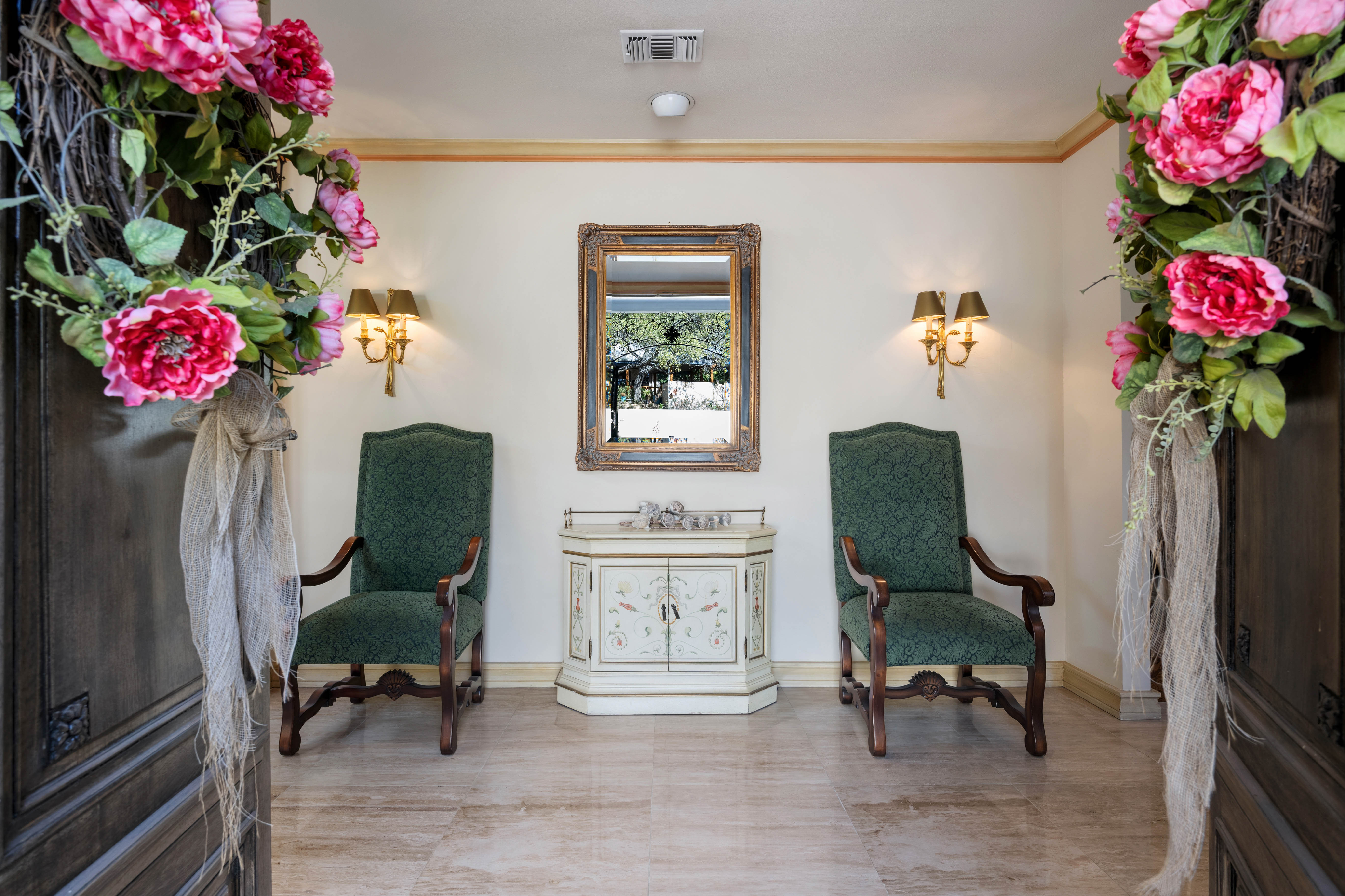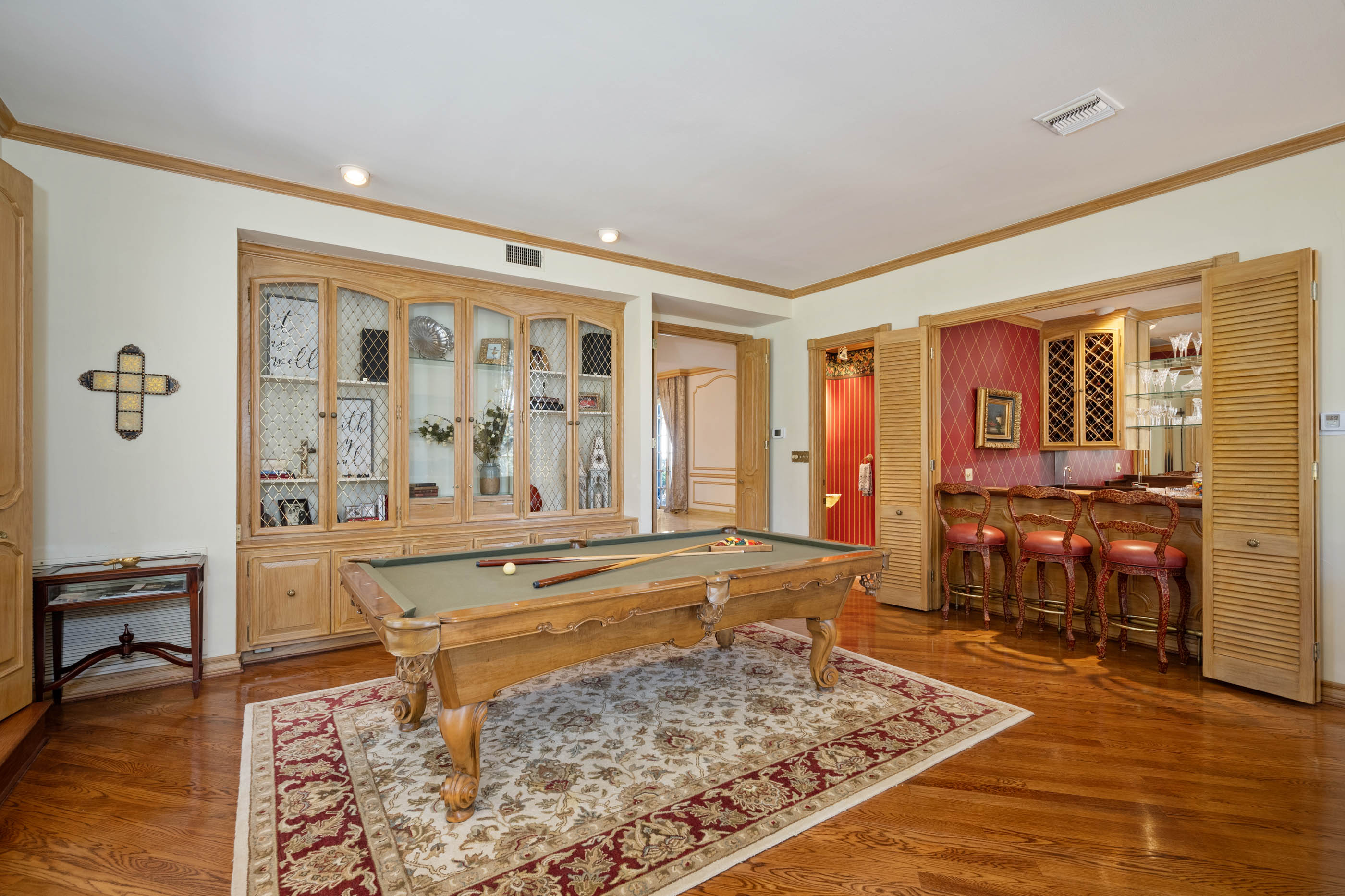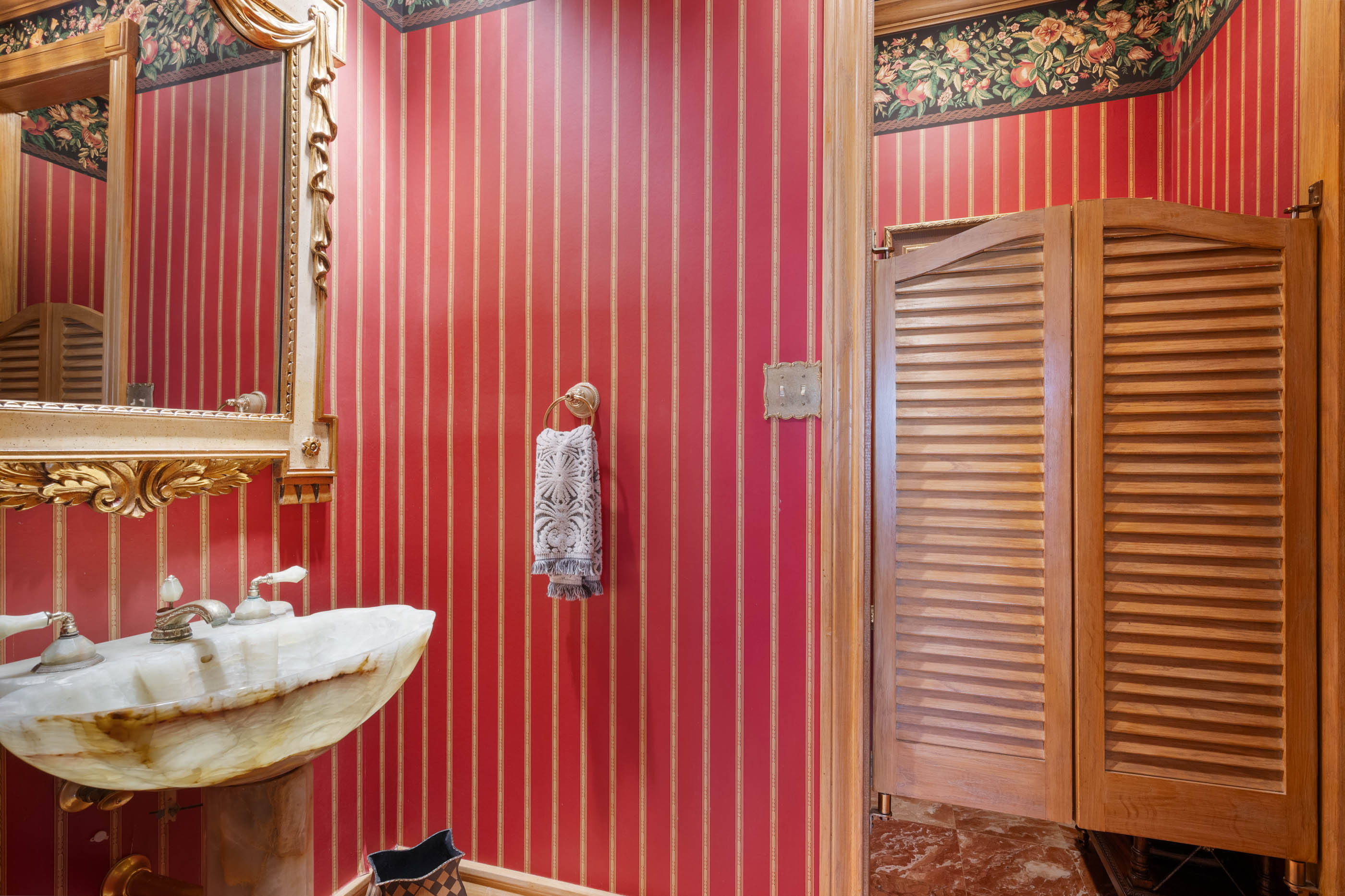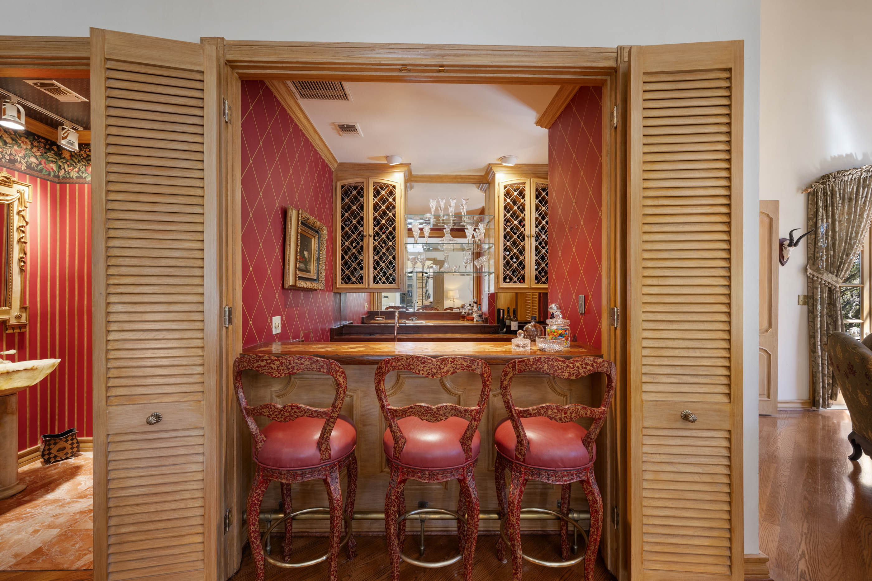 Tucked behind private gates on 6.5 acres of beautifully manicured grounds, this exceptional French-inspired estate offers a rare blend of timeless elegance and modern luxury in an unparalleled location. A winding, tree-lined drive welcomes you, leading past lush gardens and a picturesque 2.5-acre lake, setting the stage for this remarkable residence. Designed with influences from the French countryside, the home boasts soaring ceilings, graceful archways, and expansive windows that frame breathtaking views of the pool and surrounding landscape. Gleaming wood floors anchor the grand living spaces, seamlessly flowing from one room to the next. The formal dining room, illuminated by an intricate chandelier, sits adjacent to a thoughtfully designed island kitchen, perfectly positioned for both everyday living and entertaining. The private owner's wing is a true retreat, featuring a spacious suite, a cozy sitting area with a fireplace, and a remodeled spa-like bath. Throughout the home, bespoke details including preserved Sherle Wagner fixtures add a touch of timeless glamour. A richly paneled library and a stately billiards room provide additional spaces for relaxation and entertainment. Stepping outside, the estate continues to impress with an array of resort-style amenities. A tennis court, putting green, and sparkling pool with a spa create an entertainer's paradise, while a separate guest house complete with a built-in Teppanyaki grill offers a private sanctuary for visitors. A greenhouse and meticulously maintained gardens further enhance the property's serene ambiance. Offering grand proportions yet an inviting warmth, this estate is a rare find, secluded yet conveniently located just minutes from I-10, embodying the perfect harmony of refined sophistication and natural beauty.