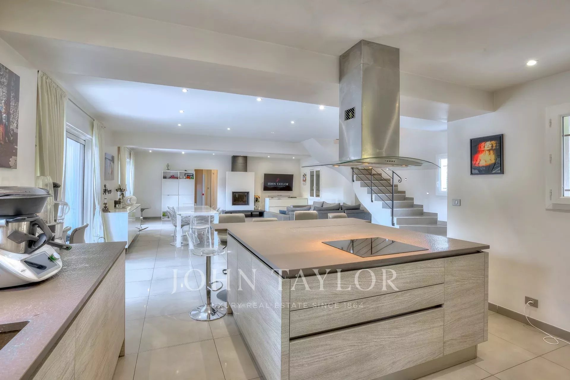 Nestled in a sought-after residential environment, this sumptuous villa with its sleek, contemporary architecture boasts a strategic location in the immediate vicinity of the Mougins British International School, the Mouratoglou tennis academy, the A8 freeway and the Sophia Antipolis technology park.Set on a magnificent 4,000 m² flat plot, the property offers 240 m² of living space, with generous volumes and top-of-the-range amenities.Ground floor:Bright living room with fireplace and televisionElegant dining room with fully-equipped open kitchenMaster suite (bedroom 1) with dressing room and en-suite bathroomOffice ideal for telecommutingBeautiful covered terrace with summer kitchen, gas barbecue, sitting area and outdoor dining area - perfect for meals with family or friendsUpstairs:Children's twin bedroom with en-suite shower roomBedrooms 3 and 4 Bathroom 5 with bath, walk-in shower, double washbasin and WCExterior & facilities :Swimming pool in the heart of a flat gardenGarageLaundry roomA/CUnderfloor heating High-speed fiber-optic Internet connectionVideo surveillance system for enhanced security*****Fully furnished rental under a civil code lease, exempted from the provisions of the Act of 06/07/1989, available for occupancy either under the name of a company or as a secondary residence.Rent: €90,000/year (equivalent to €7,500/month), payable in advance, including garden and pool maintenance.Additional expenses: taxes, utilities, home insurance.Security deposit: €15,000, equivalent to 2 months' rent.Agency fee: €7,500 VAT incl.