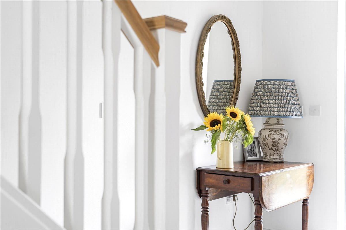 The rear garden has a wonderful terrace with plenty of space for outdoor dining. The garden has been thoughtfully landscaped with screening to create privacy and raised beds surrounding the lawn. Decking to one side has a glass fronted shed, bin storage and another seating area. To the front is ample driveway parking and a garage with electric vehicle charging point with utility area to the rear.