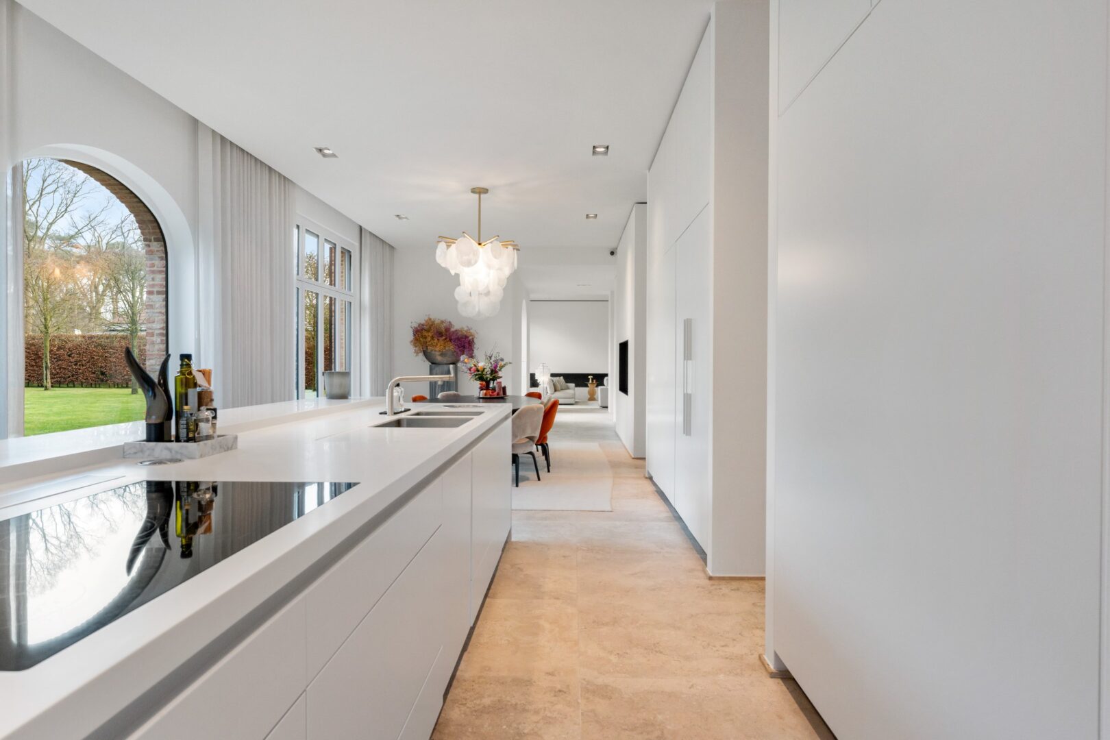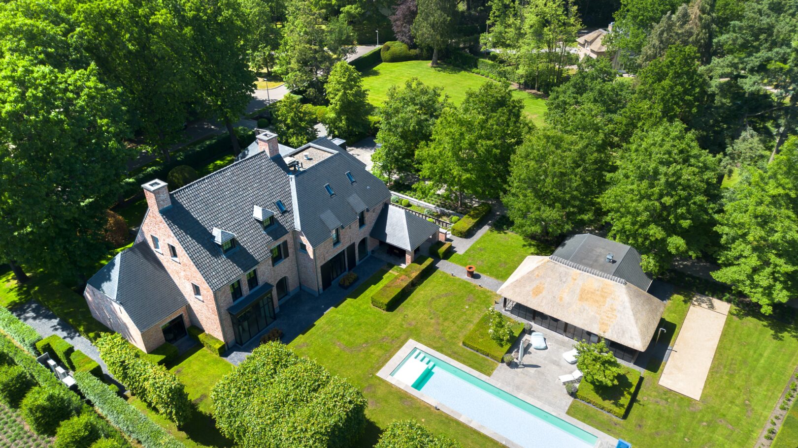 Magnificent top-class villa on a plot of 8,042 m² located in the most unique and coveted avenue of the residential area Oud-Turnhout. The villa has a living area of no less than 1,253 m² and truly has it all: 7 bedrooms, 6 bathrooms, spacious living areas, office, 2 indoor garages, fully finished basement with separate entrance, a beautifully landscaped garden with luxury pool house with wellness facilities and outdoor swimming pool. An extraordinary finish has been chosen that exceeds every expectation.Truly a masterpiece of luxury and privacy, where elegance, technology and comfort come together in a villa of unparalleled class!Ground floor:Upon entering the entrance hall of this villa, you immediately feel the spaciousness and openness it has to offer. The large windows provide beautiful natural light, and the high ceilings offer a very spacious feeling. To the left of the entrance hall, you will find a guest toilet and cloakroom. The living areas extend over the entire width of the villa. On the right side, you will find two spacious sitting areas on parquet, one of which is equipped with a cozy gas fireplace, the ideal place to stylishly entertain your guests. In the other sitting area, you can enjoy watching TV. The ceiling here reaches up to the ridge and is illuminated by a beautiful chandelier.To the left of the villa, you will find the spacious kitchen with dining area equipped with a gas fireplace. The large windows at the back provide a beautiful connection with the garden and the pool.The kitchen is a culinary paradise equipped with high-end Gaggenau appliances (including 2 steamers, 2 convection ovens, 2 warming drawers, induction hob, Bora extraction system, 2 large refrigerators, ...). It's wonderful to have an aperitif or breakfast at the kitchen island or the cozy benches in the bay window. The covered terrace with heating elements is directly accessible from the kitchen.At the front of the villa, you will find the practical area including a spacious storage room with cold room, fryer with extractor hood, ice machine, and many built-in cupboards, a second cloakroom for coats and shoes adjacent to the back entrance, and the double indoor garage. A convenient office space, playroom for kids, or second TV area is also located at the front of the villa and can be conveniently closed off with a glass sliding wall.First floor:The wide staircase covered with parquet brings you to the upper floor. A well-concealed security door with fingerprint lock safely closes off the upper floor. The master suite is located on the right side and centrally features a spacious dressing room (Poliform), a luxurious bathroom with a double walk-in shower, a freestanding bathtub in Corean, two sinks in a sleek cabinet, equipped with Dornbracht faucets, the master bedroom is located at the back and has a beautiful view of the garden. This suite also offers a separate sitting area/office with gas fireplace.On the other side of this floor, you will find two very spacious children's rooms (30 m² - 55 m²), a luxurious bathroom with a bathtub, shower, and two sinks in a cabinet, a separate toilet on the landing, and a spacious linen room/laundry room with space for 4 washing machines/dryers and many built-in cupboards.Second floor:On this floor, you will find a landing that is also used as a relaxation area/TV corner, which provides access to two beautiful bedrooms, each with a desk, dressing room, and private shower room. Separate toilet on the landing.Basement:The entire villa is basemented and finished to the same level as the rest of the villa. Here you will also find two bedrooms, each with its own shower room and toilet. These two rooms are separately accessible from the outside with a fingerprint lock and are ideal as a guest accommodation, ensuring your own privacy. In the center, you will find a beautiful space, currently furnished with a TV corner and dining area. All facilities are available here for installing a kitchen. Furthermore, you will find a large climate-controlled wine cellar (18 m²), a technical room, and a large versatile storage space (approx. 100m²).Garden and pool house:The garden is landscaped all around and enjoys absolute privacy. Beautiful covered and heated terrace at the kitchen. Pool house with thatched roof (which has been completely maintained in 2024), equipped with fireplace/BBQ, seating and dining area, electric heaters, sauna, shower, toilet, ... Outdoor swimming pool heated with a heat pump with a length of 16m, equipped with an automatic pool cover. Several parking spaces available. The entire property is nicely enclosed with an automatic entrance gate and is completely fenced.