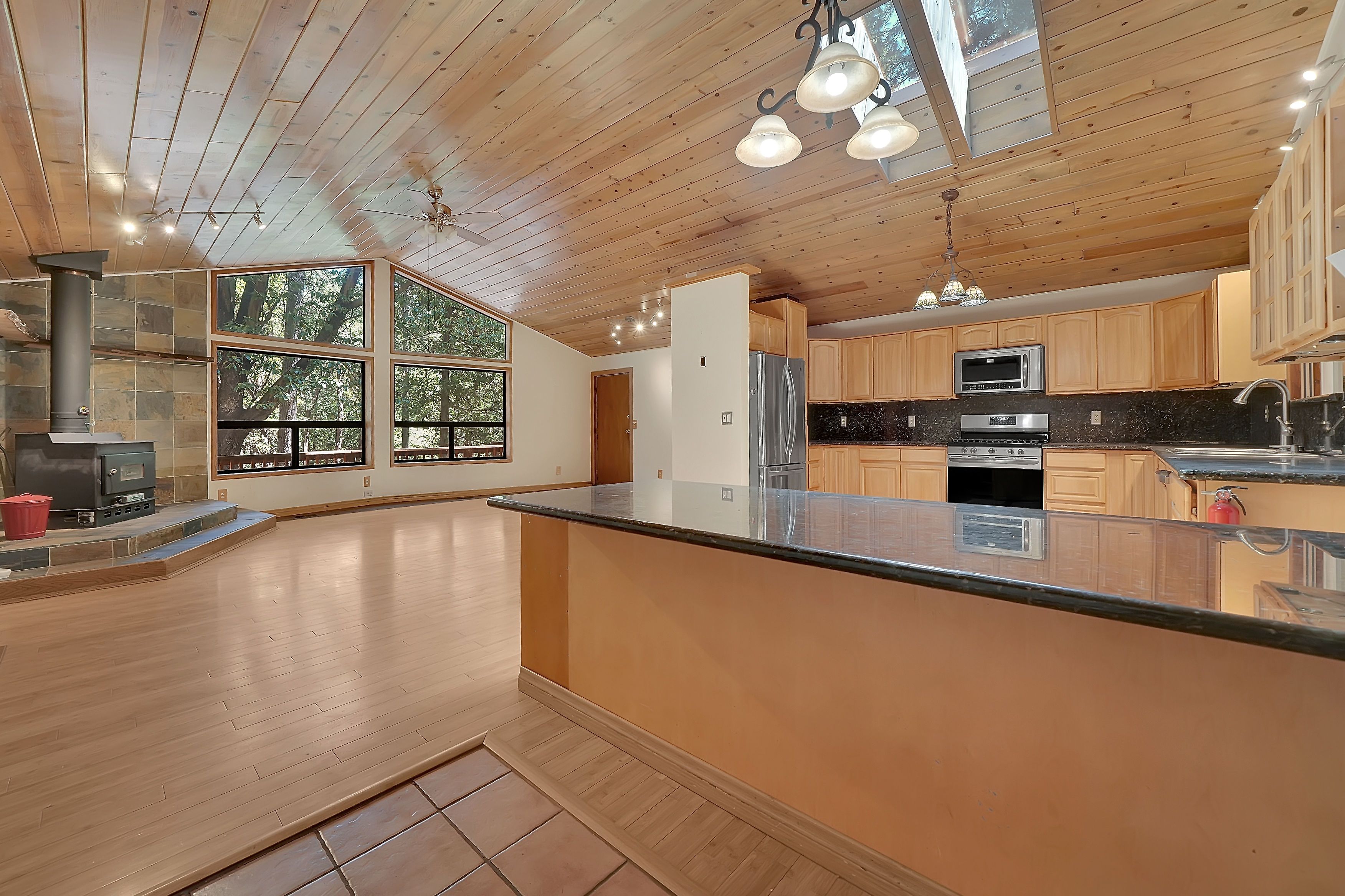 Nestled among the trees on a private road, this raised ranch style home offers a unique blend of comfort, functionality, and serene forest views.With 2 bedrooms, 2 bathrooms, and a fully finished walk-in basement room, this property is packed with upgrades and storage. Enjoy the luxuryof heated bathroom floors, a Jacuzzi tub, updated appliances, and multiple laundry hookups. The home features a wrap-around redwood deck,concrete patio, and fenced backyard with a garden area, greenhouse, and chicken palace'' for your feathered friends. A whole-house generatorsystem, water filtration system, and recently replaced high-producing well pump (16 GPM in 2021) ensure peace of mind. The pull throughgarage, multiple shop spaces, closet organizers, and 220V power connections make this property a dream for hobbyists or RV travelers with RVhookups already in place. Whether you're entertaining or relaxing under the treetop canopy, this home blends rural charm with thoughtfulmodern touches.