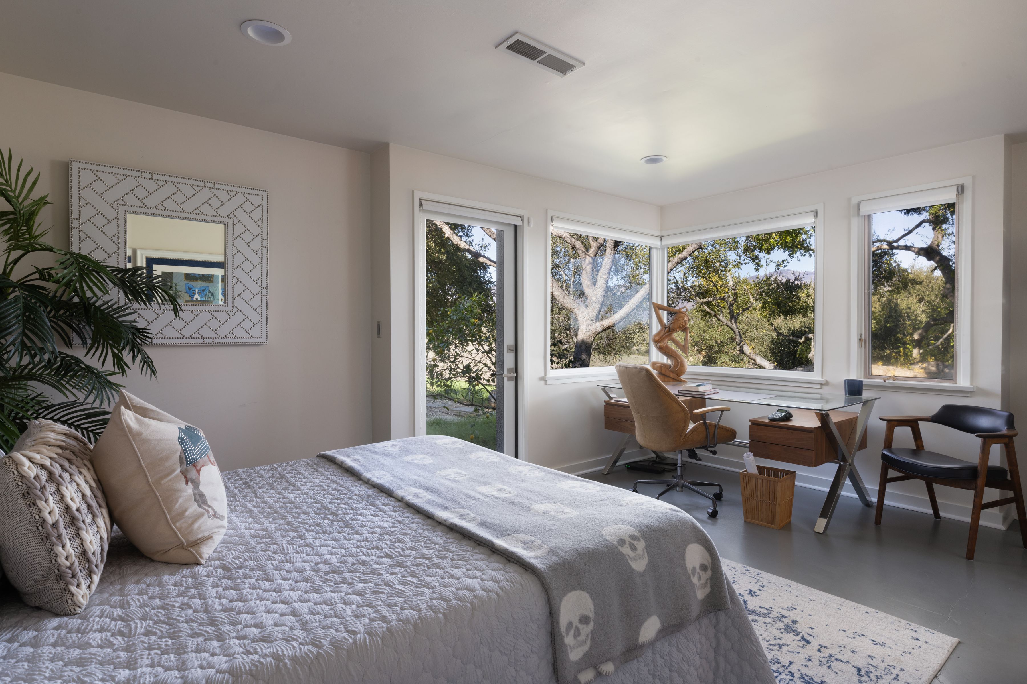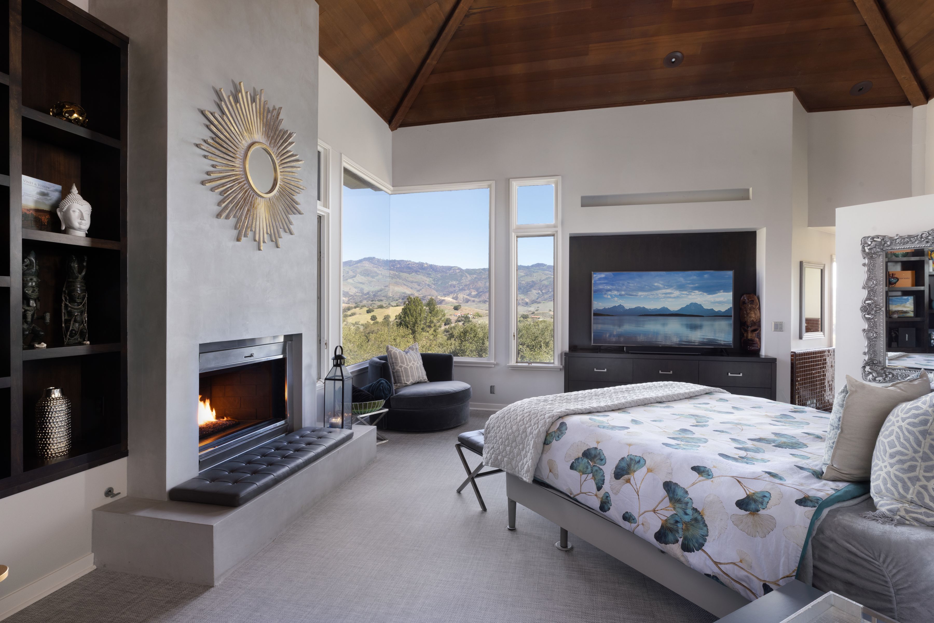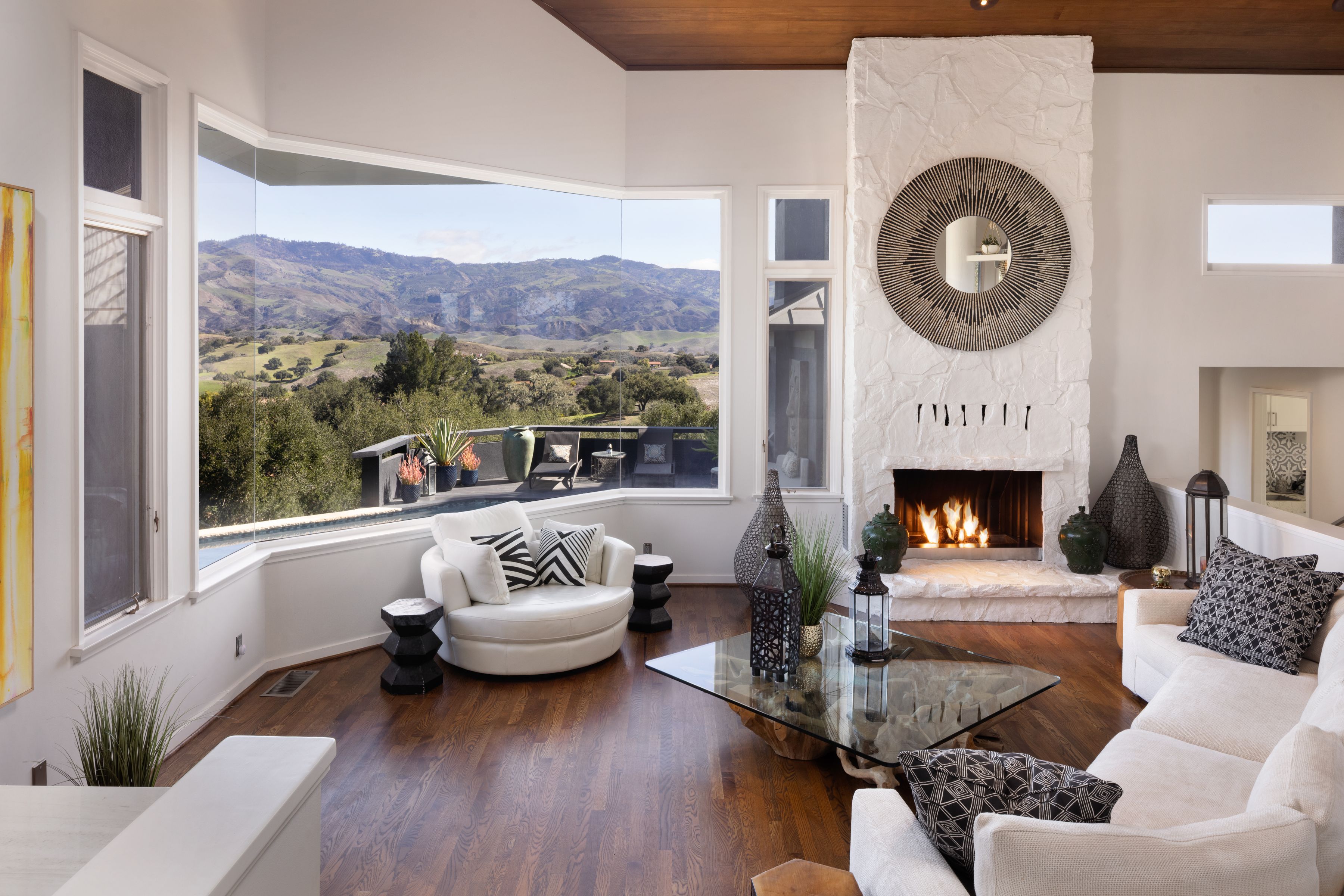 A masterpiece of contemporary architectural elegance, this stunning estate is set atop one of the highest promontories in Woodstock Ranch. 20+/- oak-studded acres with panoramic 360 views of the Santa Ynez valley and San Rafael Mountain range. Designed to harmonize with its natural surroundings, this 5000+ square foot residence features 5 private ensuite bedrooms, each capturing breathtaking views, and five and a half baths. At the heart of the home, a magnificent open living space boasts soaring beamed ceilings, seamless walls of glass, and effortless indoor-outdoor flow.