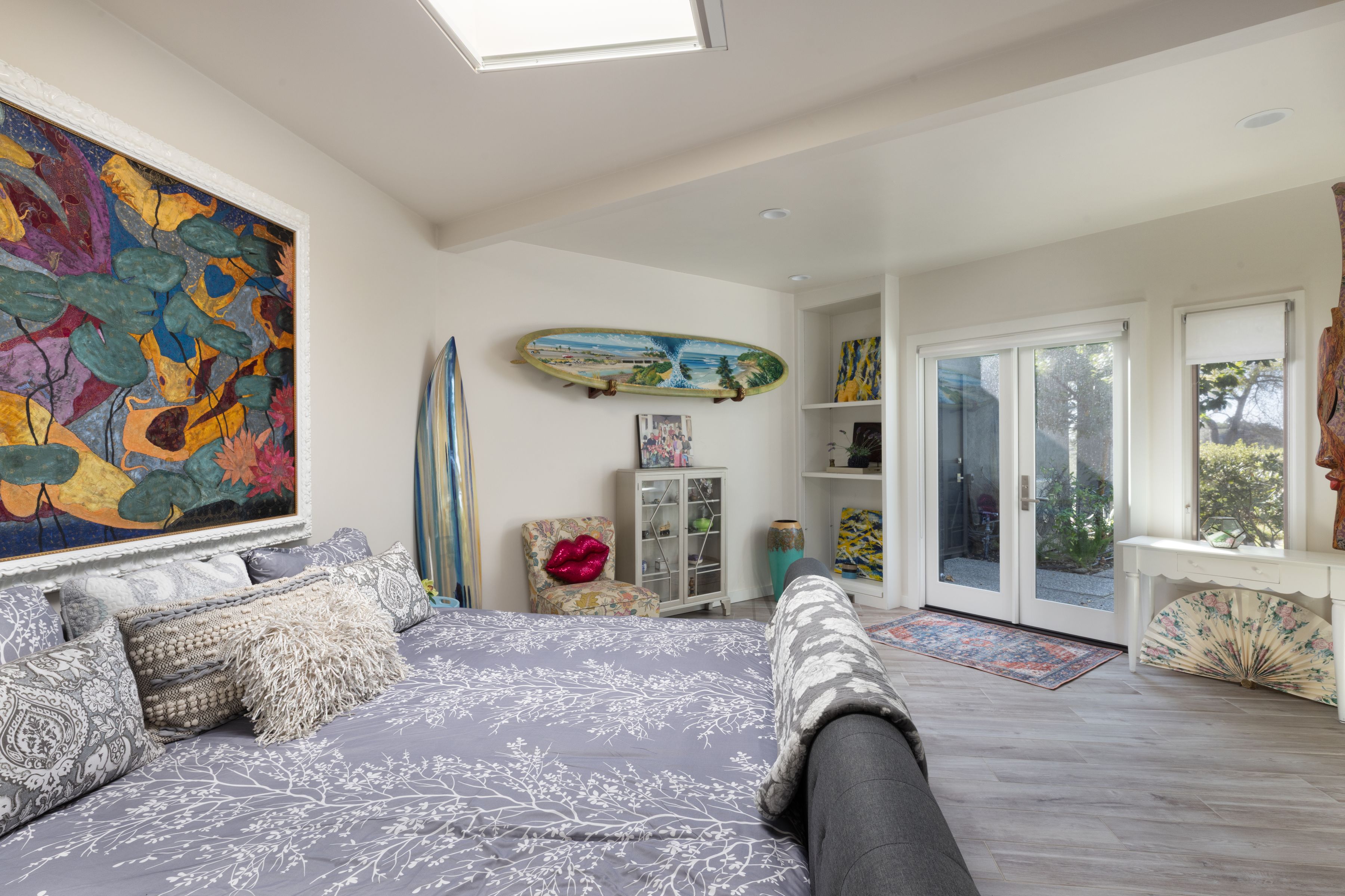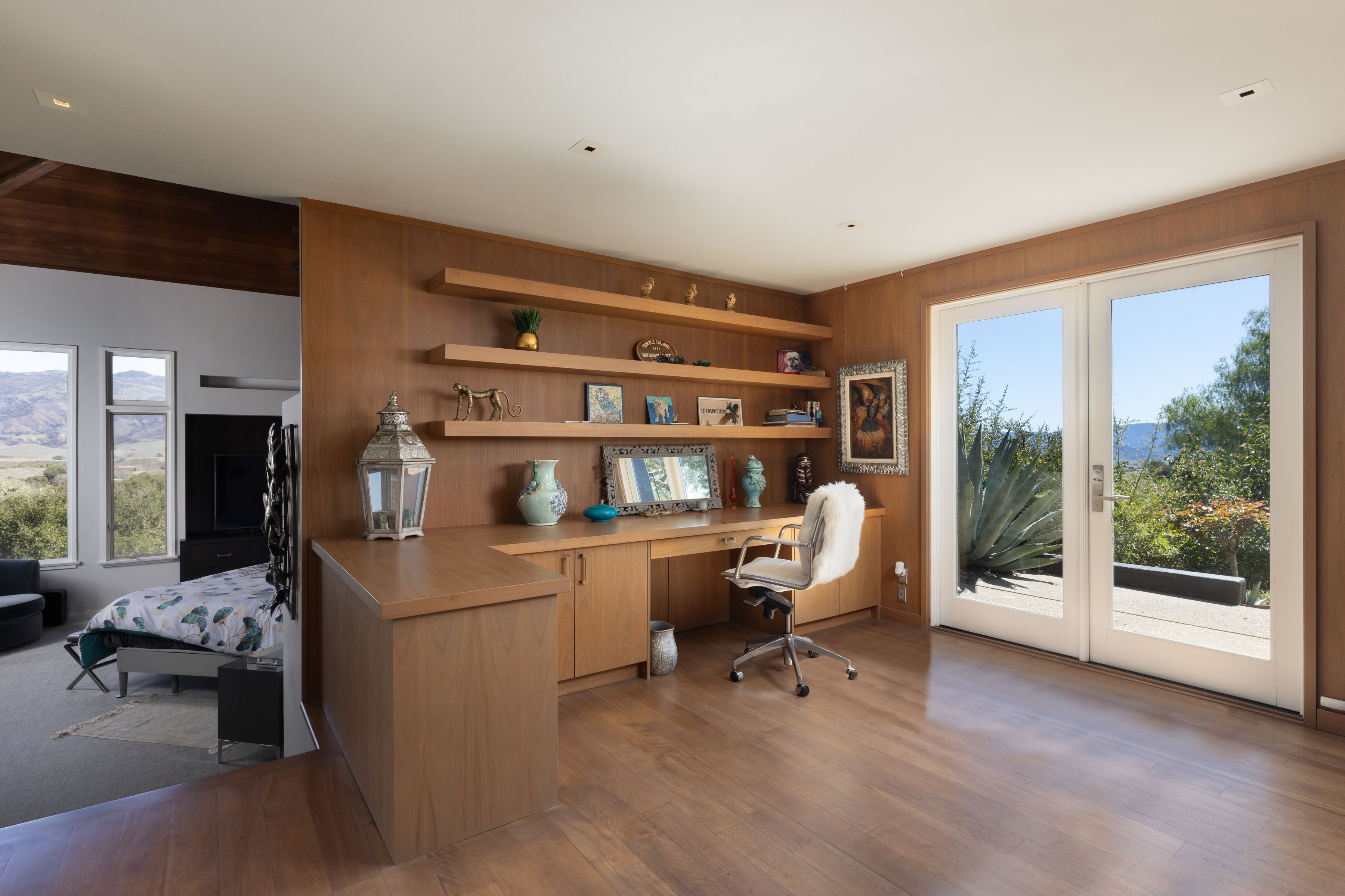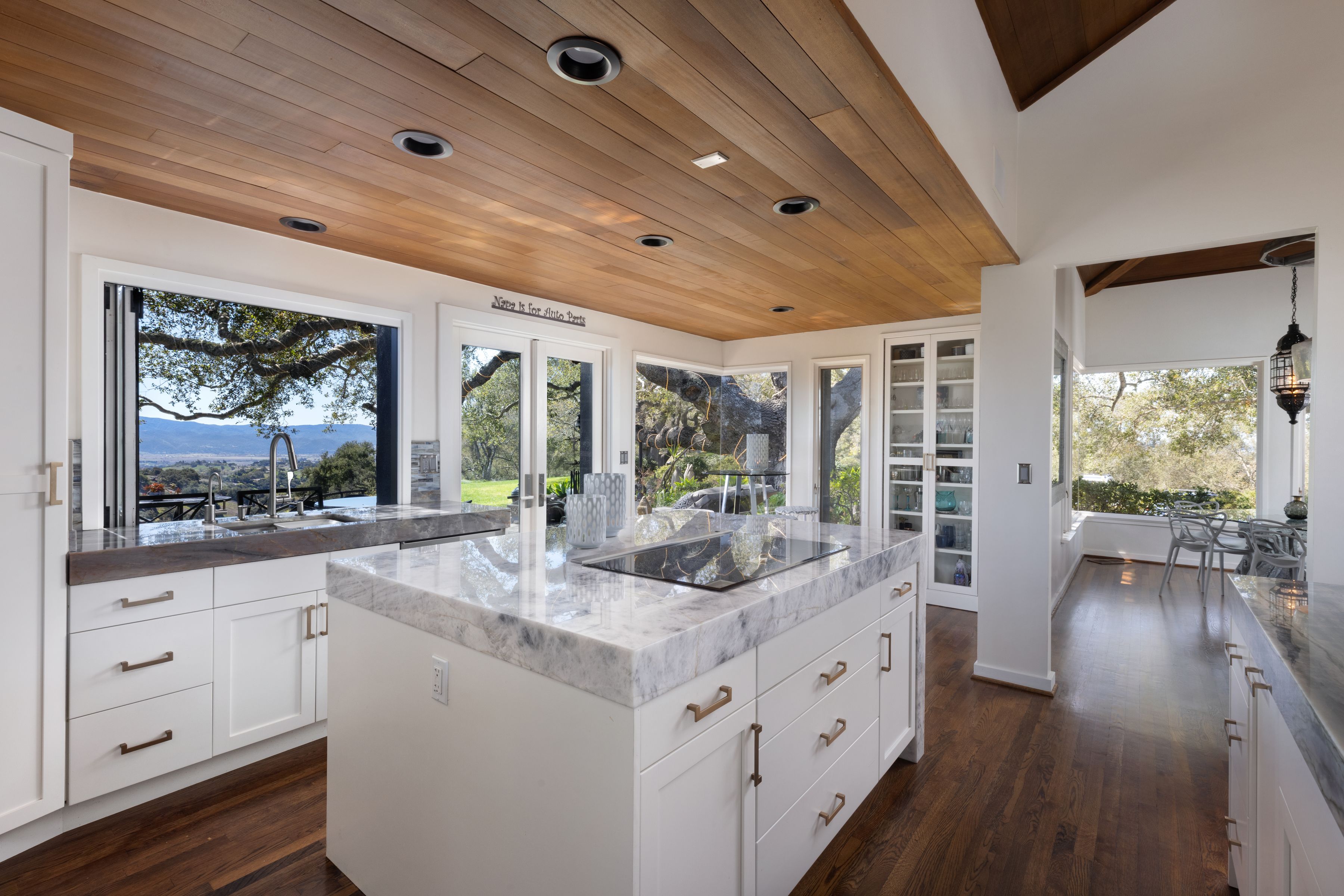 The flagstone patio, cantilevered pool and spa and dining terrace provide stunning spaces for entertaining, while expansive lawn and tennis/pickleball court that sits atop a scenic hillside knoll offer spectacular settings for recreation and exercise. The lush, secluded, gated grounds set this estate apart. The mature oaks, thoughtfully designed landscaping, tranquil ponds and meandering waterfalls create a serene retreat that enhances the homes natural beauty. A rare opportunity to own a true sanctuary in one of the Santa Ynez Valley's most sought-after communities. This Woodstock Ranch estate blends timeless sophistication, privacy, and natural beauty to create an unparalleled lifestyle.