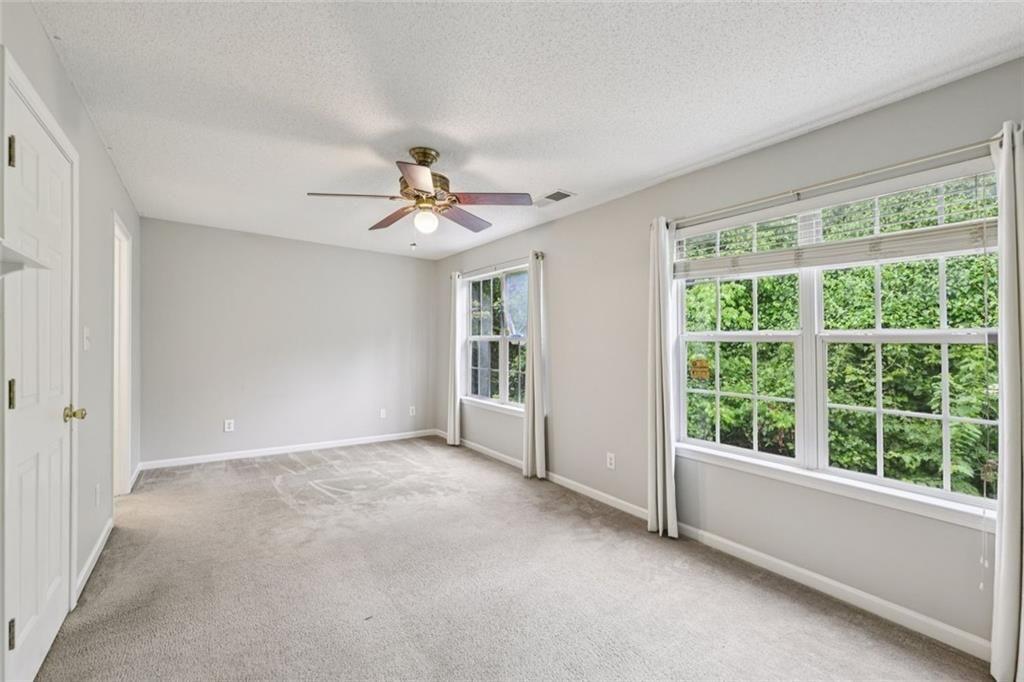 This home is back on the market through no fault of the seller - previous buyer financing fell through. Looking for a condo that actually offers privacy, inviting outdoor space, and an open feel? Want to look out and see trees and green space instead of concrete walls? This is your place. This well-maintained home in Parkview Commons stands out with a rare private back patio that backs up to a wooded open space. Inside, fresh paint and a thoughtfully cared-for interior create a bright, welcoming atmosphere. The open kitchen and dining area connect naturally to the living room, giving the main level an easy, open flow, with a fireplace adding warmth and character. Upstairs, the roommate-style floor plan features two spacious primary bedrooms, each with its own private bathroom, offering flexibility and separation. The HOA covers roof and exterior maintenance, keeping ownership simple and low maintenance. Conveniently located near major interstates, the Silver Comet Trail, Cumberland Mall, Vinings, Smyrna, and nearby parks, this condo offers easy access to daily essentials - all within an established community.