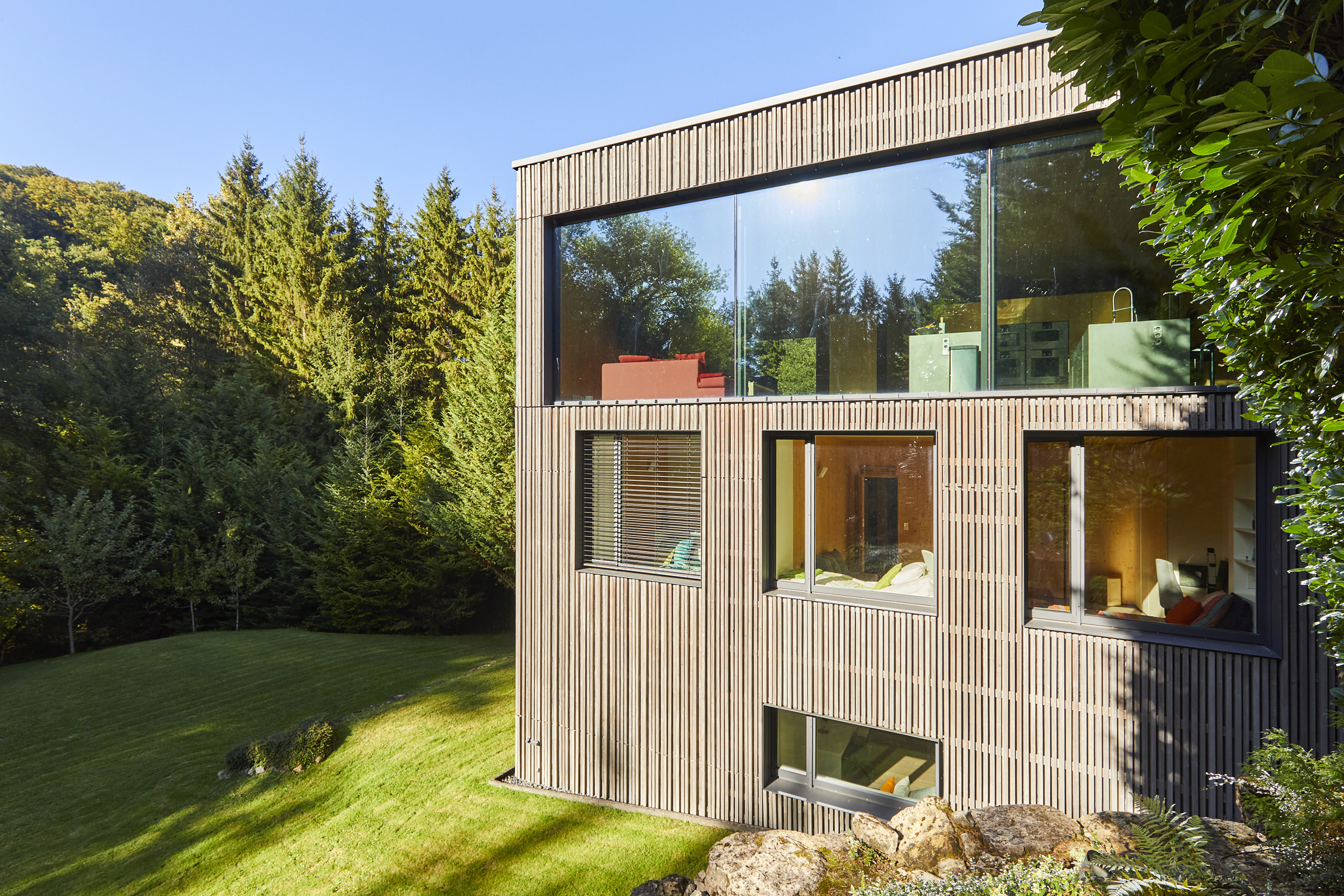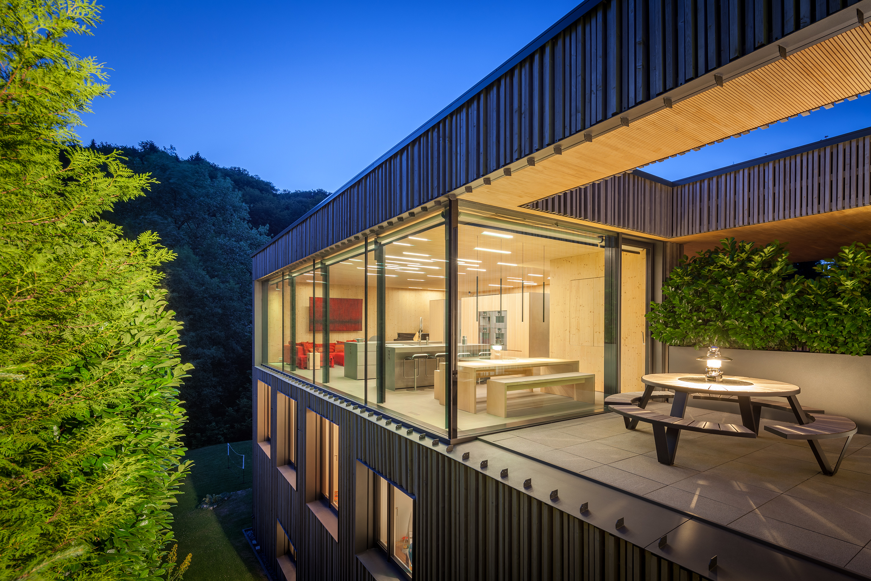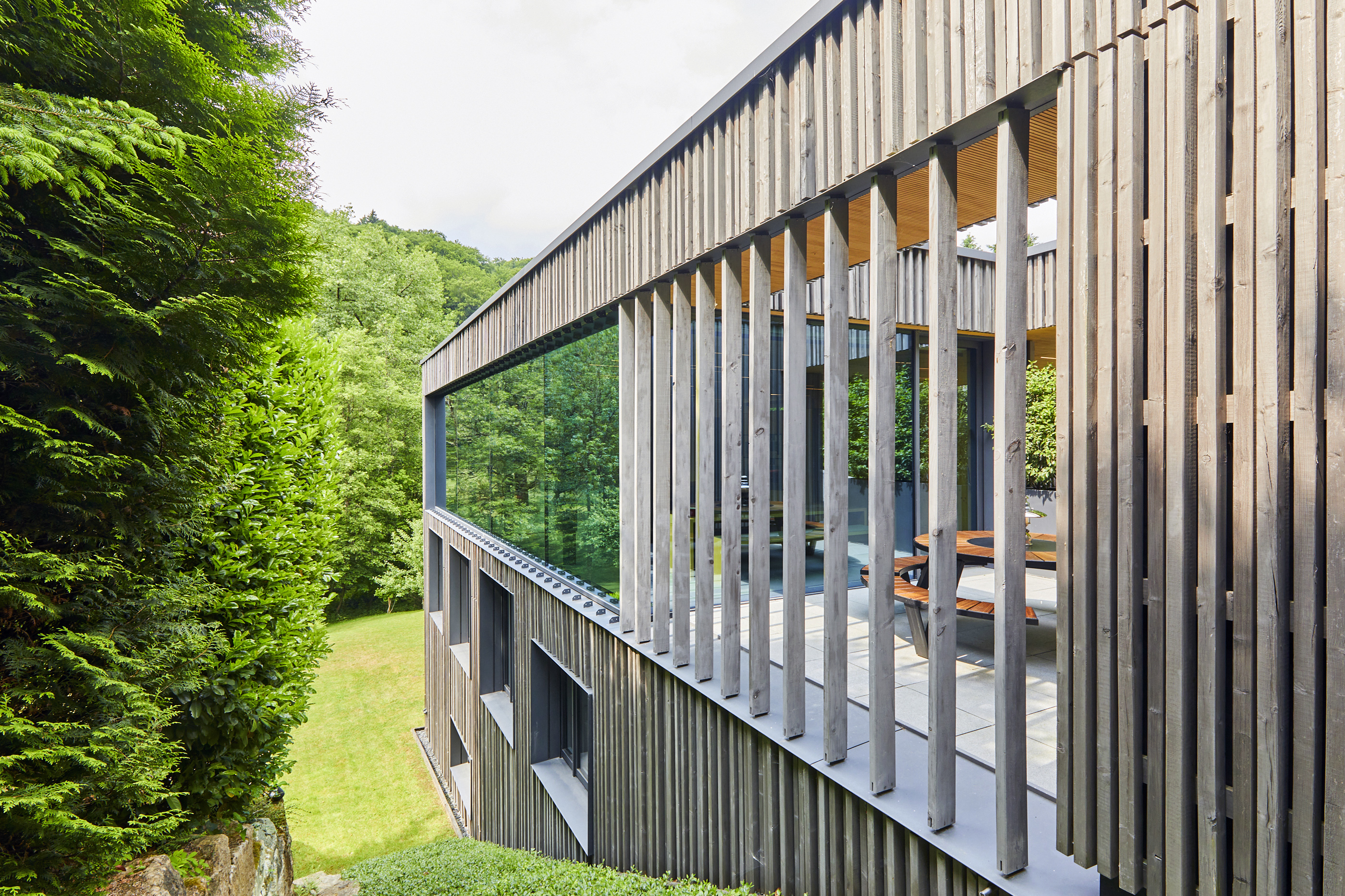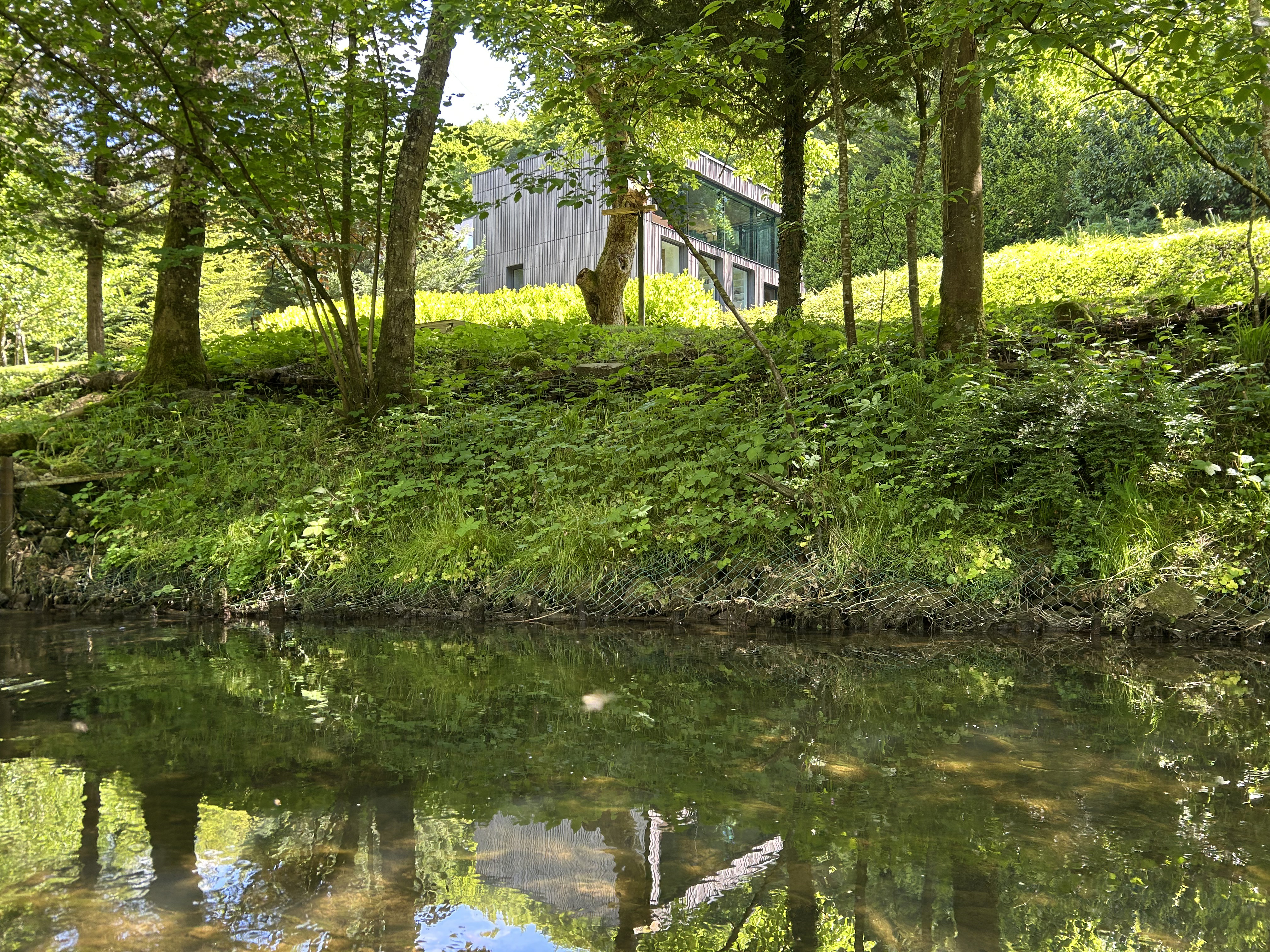 An award-winning architect-designed villa in perfect harmony with nature. Nestled in a lush green setting, bordered by a dense forest and a gentle stream, this stunning contemporary villa blends seamlessly into its natural surroundings. Winner of the prestigious Bauhärepräis for architecture in 2020, a distinction that recognises architectural quality through exemplary projects, it embodies a rare symbiosis of design, comfort, and environment.