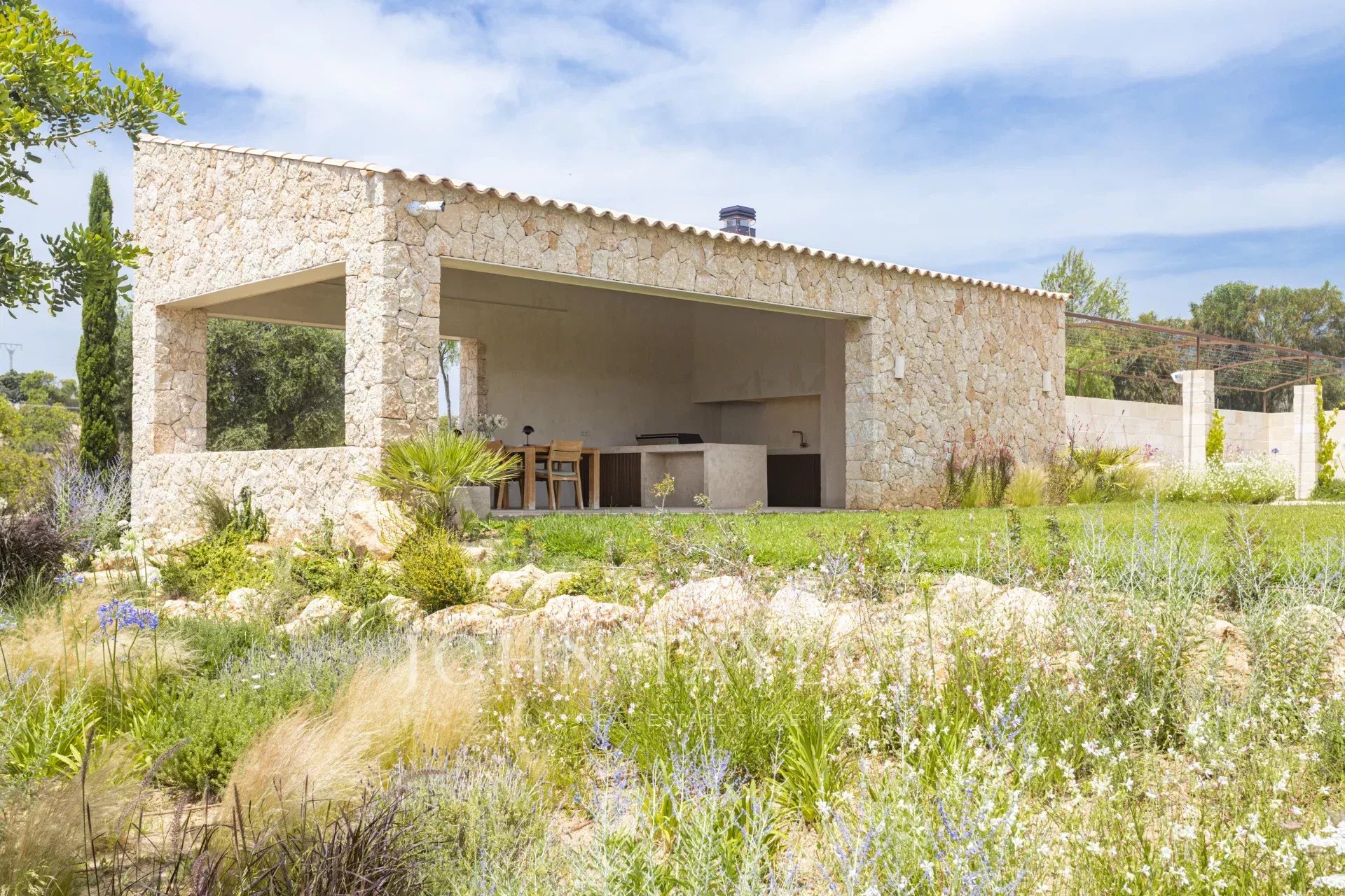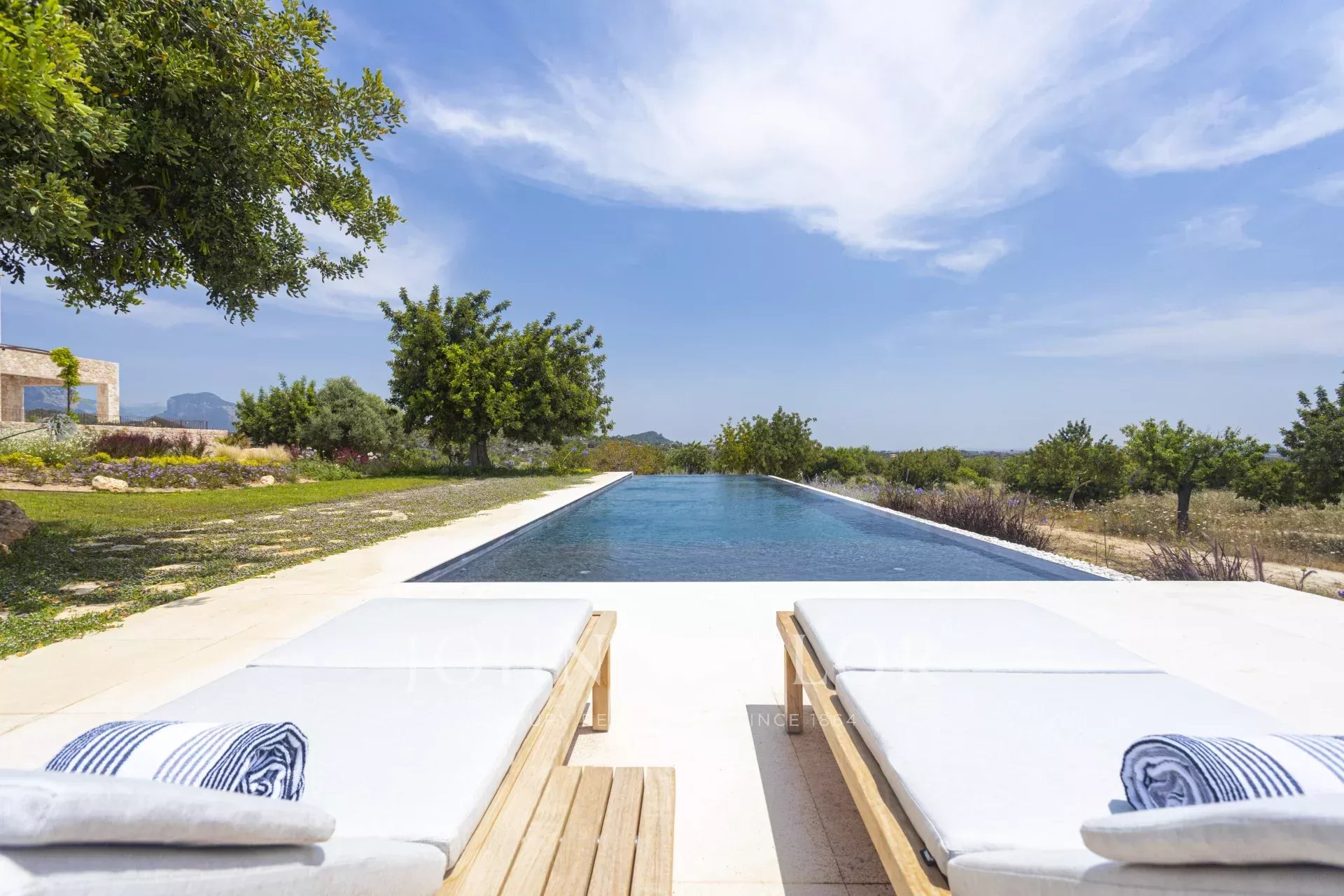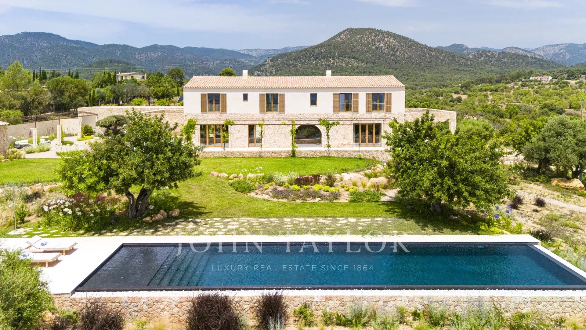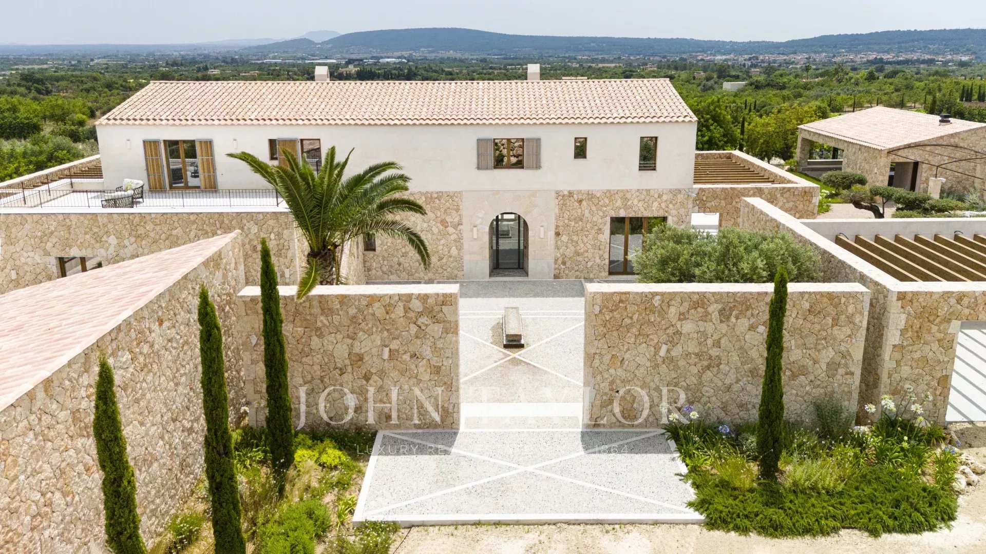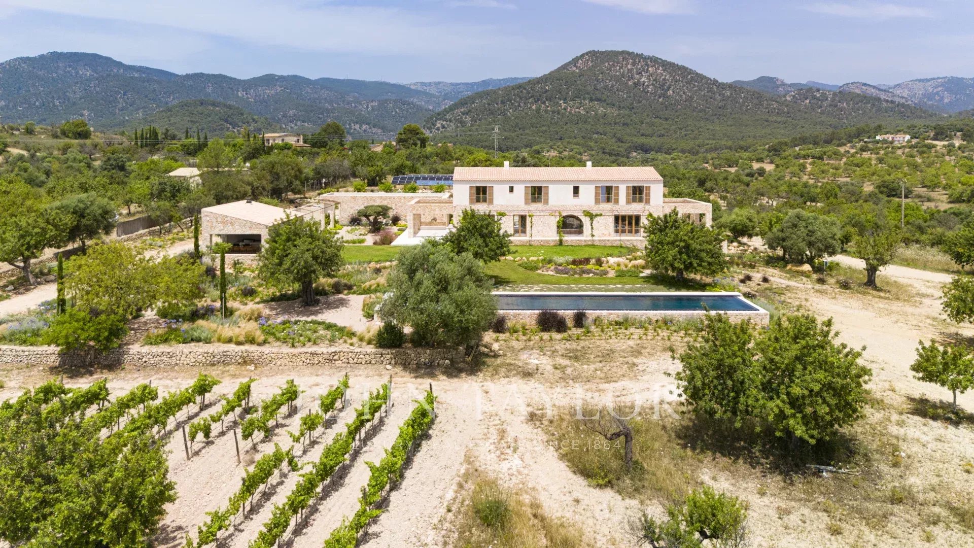 Discover “Son Blai” – a newly built luxury finca in Santa Maria del Camí, one of the most prestigious rural areas in Mallorca’s wine country. This exceptional country estate offers a harmonious blend of Mediterranean charm and Nordic elegance, using only the highest-quality materials sourced locally and internationally.Set on a spacious plot of land with breathtaking panoramic views of its private vineyard, the open countryside, and the majestic Tramuntana mountains, “Son Blai” is ideal for those seeking privacy, nature, and refined sophistication – just a short drive from Palma de Mallorca.Exclusive Features and Finishes in this property include marfil natural stone tiles throughout the ground and first floors, underfloor heating in all rooms, custom-built oak woodwork, and natural stone handcrafted sinks in all bathrooms, designer taps and showers from VOLA, solar panel system (approx. 30 KW) for sustainable energy, large swimming pool with dedicated technical and storage room, SONOS sound system in several exterior locations, barbecue house with dual grills (gas & charcoal), two outdoor fountains with independent cleaning and pump systems, Approx. 3,750 sqm vineyard planted with prensal grape variety, outsourced to a local winery – yielding approx. 40 bottles annually, hand-carved natural stone façades for timeless architecture, and landscape architecture by NONAMGround Floor: impressive entrance, fully equipped Poliform designer kitchen with central island, gas fireplace, and Premium appliances such as Gaggenau, BORA, and Quooker. Informal lounge, elegant dining area, and spacious living room with a cozy second gas fireplace, seamless access to covered terraces, landscaped gardens, and the private swimming pool. guest bedroom with en-suite bathroom, guest lavatory, and direct outdoor access from all rooms.First Floor: open-plan office/studio – ideal for remote work or creative space, two spacious guest bedrooms with walk-in wardrobes and en-suite bathrooms, Master suite (68 sqm) with private terrace, offering ultimate luxury and privacy.Lower Ground Floor: 275 sqm including: Secure garage for multiple vehicles, two storage rooms, and a machinery room.Without a doubt, one of the most popular country locations on the island, due to its proximity to the airport and Palma, to which it is also connected by train, ensures the maximum quality of life and comfort for easy access. This, together with its authentic charm, active village life, local artisans, and well-known Sunday morning market where you can sample an array of products from local producers, is extremely popular with not only residents but also those living around the island. One of the best vineyards on the island, Macia Batle, is located in the village, which is an experience in itself. The area is surrounded by vineyards and open countryside. The neighboring villages of Consell, Binissalem, and Sencelles all offer additional options for enjoyment. A perfect location for those looking for a quieter, slower pace of life, immersed in nature, however, with the convenience of being 20 minutes from the city.