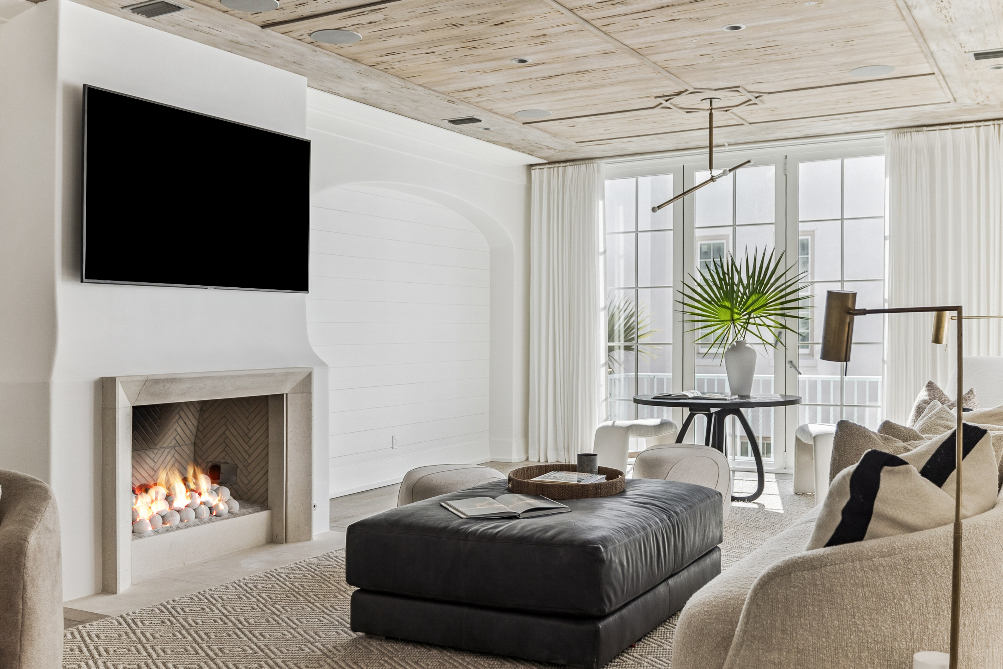 Welcome to 13 La Garza Court - a breathtaking architectural residence in the iconic community of Alys Beach. Thoughtfully designed for elevated coastal living, this home spans 4,844 square feet, blending modern sophistication with timeless Mediterranean influence. The addition of a fourth bedroom is an option, should a Buyer wish to modify the layout, as articulated by the included design renderings and contractor’s proposal. A dramatic private courtyard sets the stage, leading to a sweeping staircase and striking architectural details that establish an elegant tone. Light-filled interiors flow seamlessly throughout, from the stunning great room with its wood-paneled ceiling and designer fireplace to the open-concept dining area and chef's kitchen, appointed with bespoke cabinetry, a custom range hood, and high-end appliances. Wide-plank hardwood floors and layered natural textures add warmth and depth at every turn. The home's centerpiece is an expansive rooftop terrace is an unrivaled private oasis in Alys Beach. An infinity-edge pool with a sun shelf and cascading water feature invites relaxation, while an adjacent outdoor kitchen with built-in grill, wet bar, and covered lounge area with TV provides the perfect setting for effortless entertaining from sunrise to sunset. Each bedroom serves as a private retreat with spa-like en suite baths, and an elevator provides convenient access to all levels. Multiple indoor and outdoor living areas offer the ideal backdrop for both quiet moments and lively gatherings. Capturing the beauty of the Emerald Coast and the unmatched lifestyle of Alys Beach, 13 La Garza Court represents a rare opportunity to own one of the community's most distinctive residences.