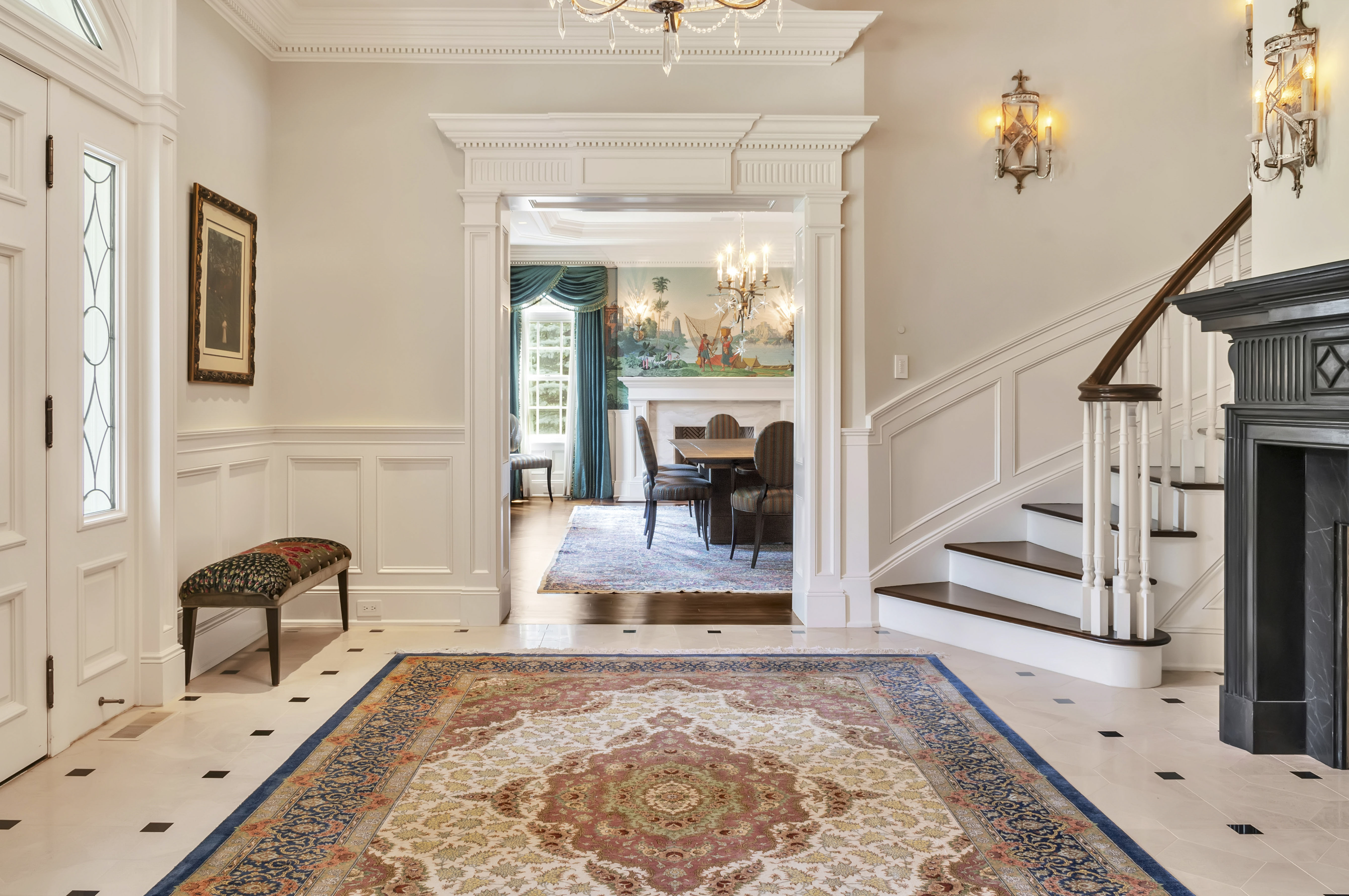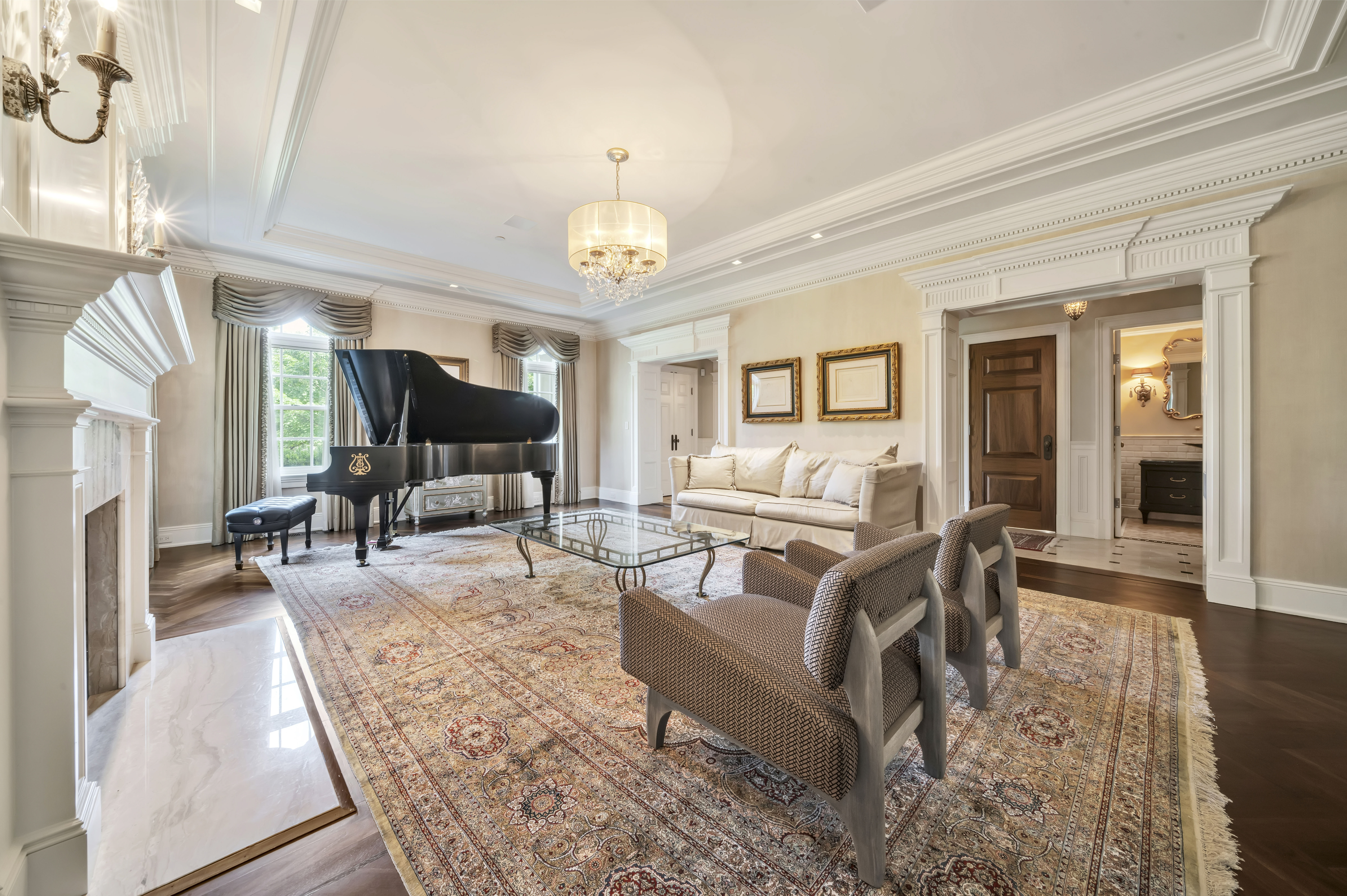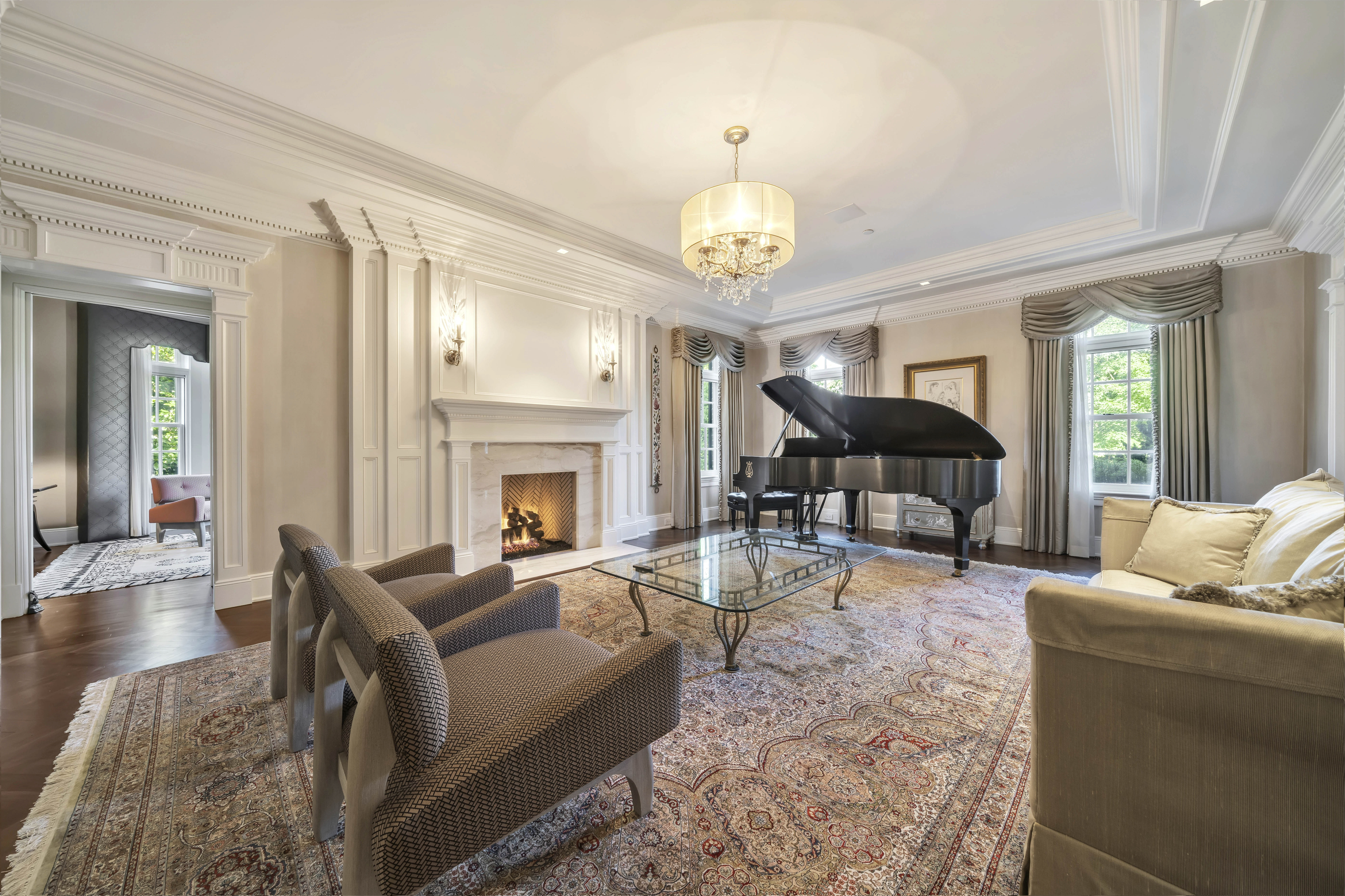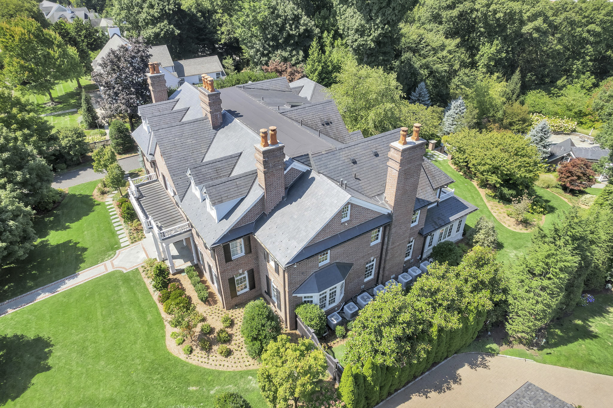 Offered for the first time, this extraordinary custom-built estate spans over 15,000 square feet across four elevator-serviced levels, set on 3.3 acres of private, manicured grounds. A grand foyer with fireplace introduces the home's scale and refined architectural presence. To one side, a banquet-sized dining room connects to a fully appointed butler's pantry with icemaker, dishwasher, and wine cooler. To the other, formal living and music rooms lead into a spacious family room and a glass-enclosed, all-season porch. At the heart of the home, the chef’s kitchen is anchored by dual islands, a La Cornue range, and a sunlit breakfast nook. With 7 bedrooms, 9 full baths, and 5 half baths, the layout is designed for both large-scale entertaining and everyday living. Interior amenities include a billiard room, game room, private theater with tiered seating, temperature-controlled wine room, gym, art studio, mudroom with custom cubbies, multiple home offices, several laundry areas, and generous storage throughout. The resort-style grounds feature a heated gunite pool with full-service cabana, illuminated tennis court, and mature landscaping offering total privacy. A detached three-car garage includes butler quarters and an oversized storage room. A rare opportunity to own a private compound of this scale and quality - minutes from shopping and surrounded by nature.