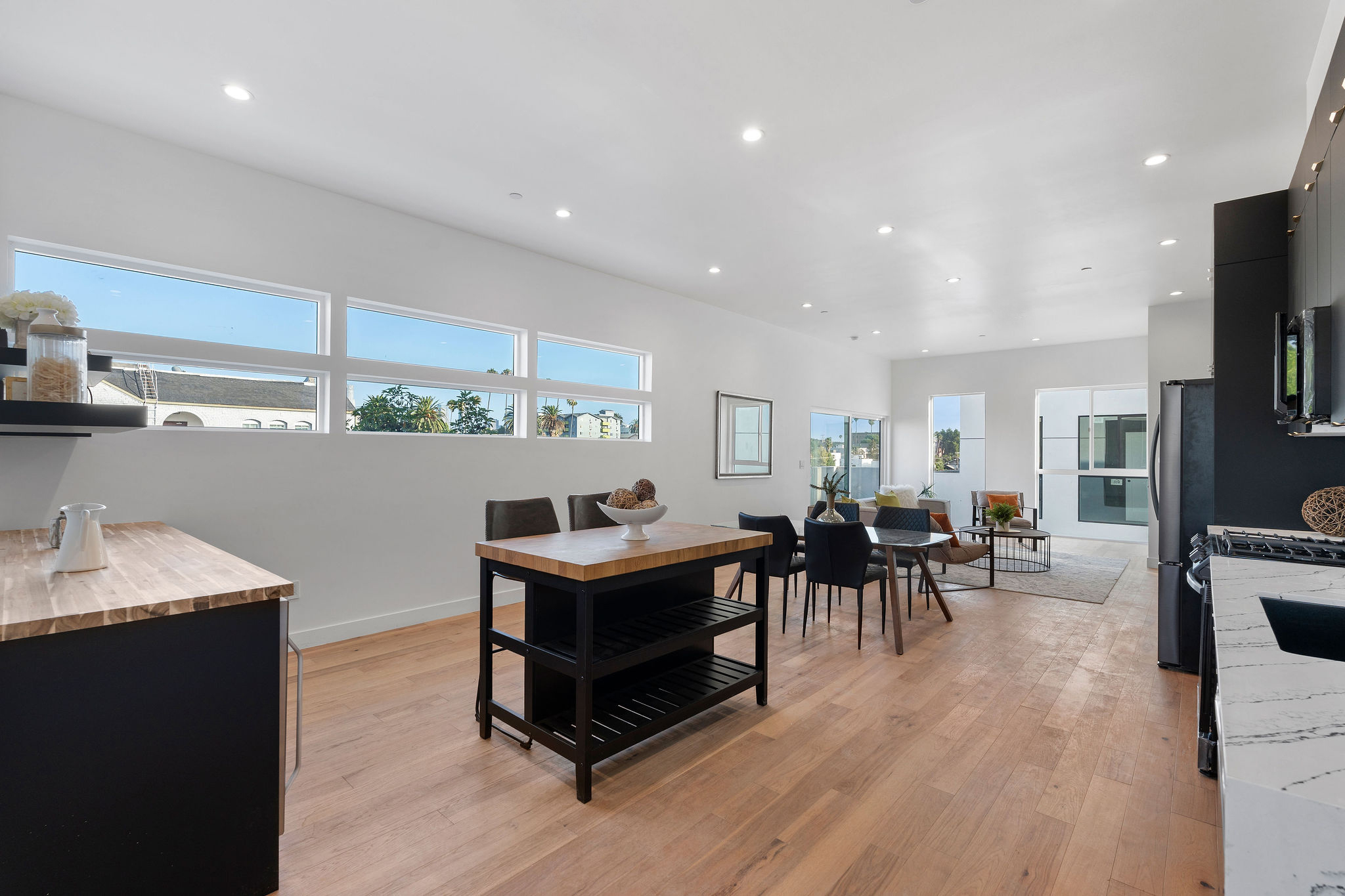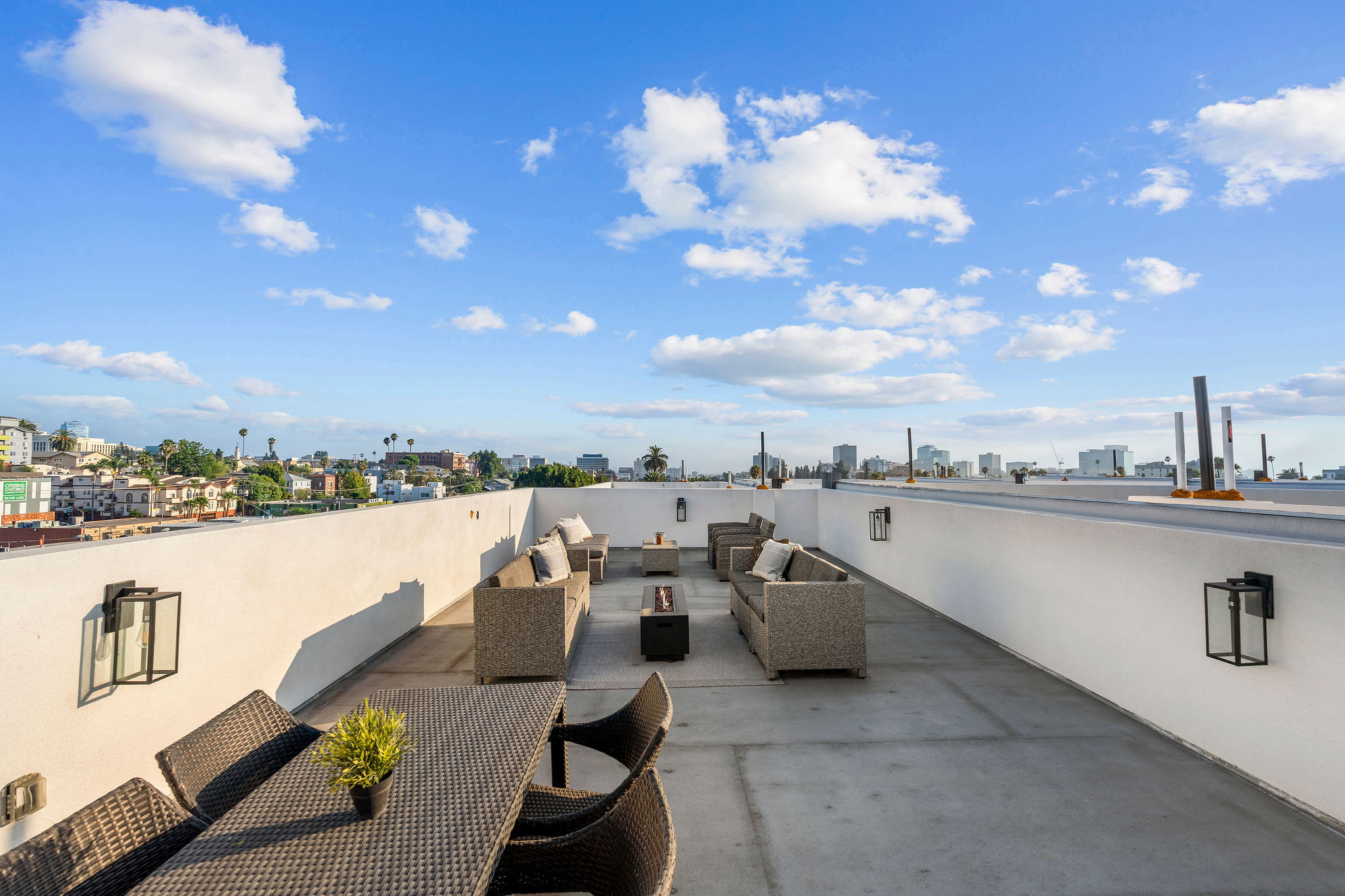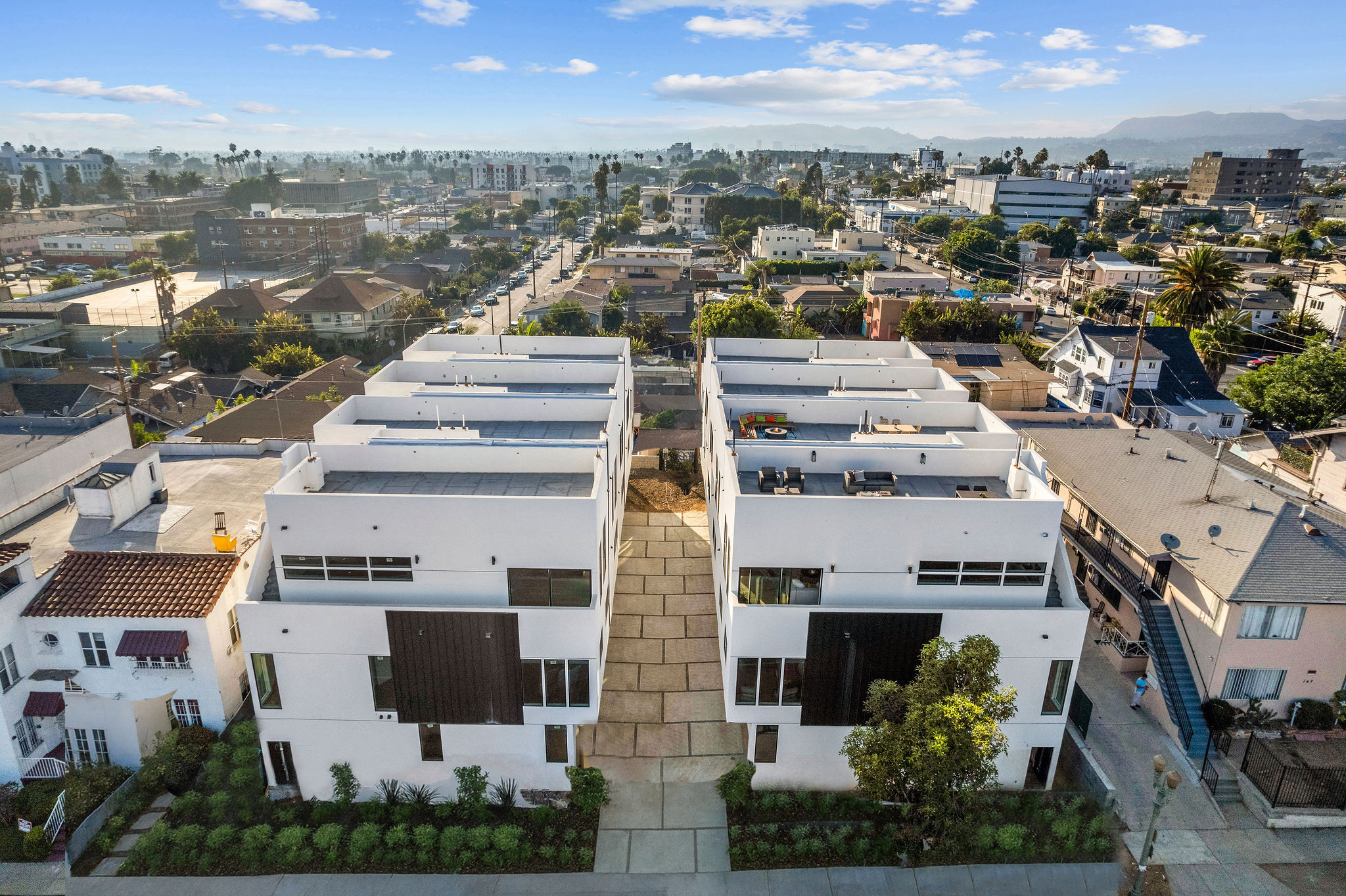 Discover The Ten at Rampart, a rare Small Lot Ordinance home in the heart of Historic Filipino town, one of Los Angeles' most vibrant and centrally located neighborhoods. This modern 3-bedroom, 3.5-bathroom residence offers over 2,000 sq. ft. of light-filled living space, designed with open-concept flow and sleek finishes throughout. The chef's kitchen is equipped with quartz countertops, custom cabinetry, and premium stainless-steel appliances, opening to expansive living and dining areas ideal for both entertaining and everyday comfort. Floor-to-ceiling windows bring in abundant natural light, while the private rooftop deck showcases sweeping views of the Downtown Los Angeles skyline, perfect for evening gatherings and enjoying iconic city sunsets. The spacious bedrooms include a luxurious primary suite with spa-inspired bath, while the attached garage provides convenience and secure parking. Blending modern architecture with an unbeatable location, The Ten at Rampart places you minutes from Echo Park, Silver Lake, Koreatown, and DTLA, with access to top dining, shopping, and cultural destinations. This is a rare opportunity to own a contemporary Los Angeles home with skyline views, rooftop lifestyle, and incredible city access in a thriving neighborhood.