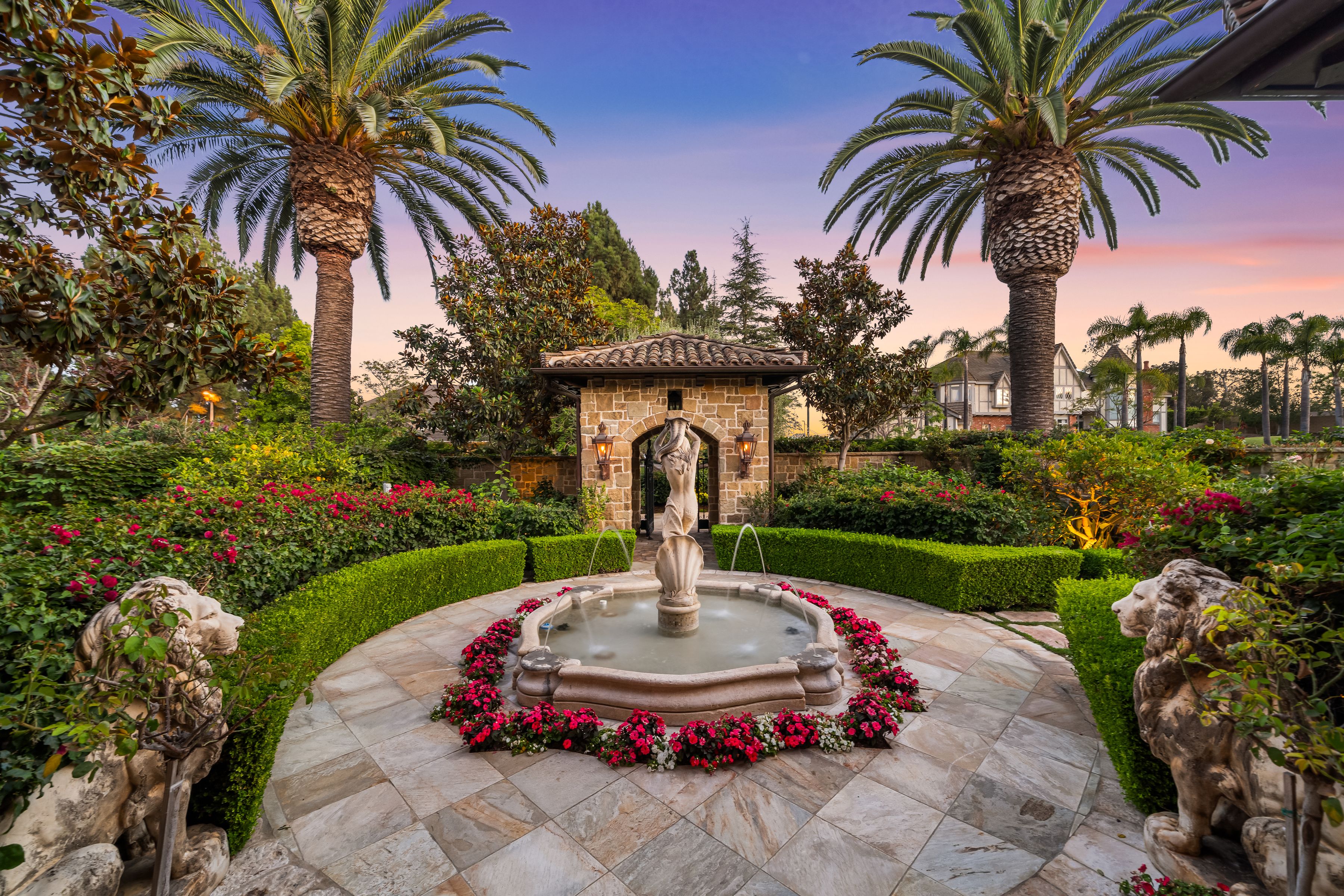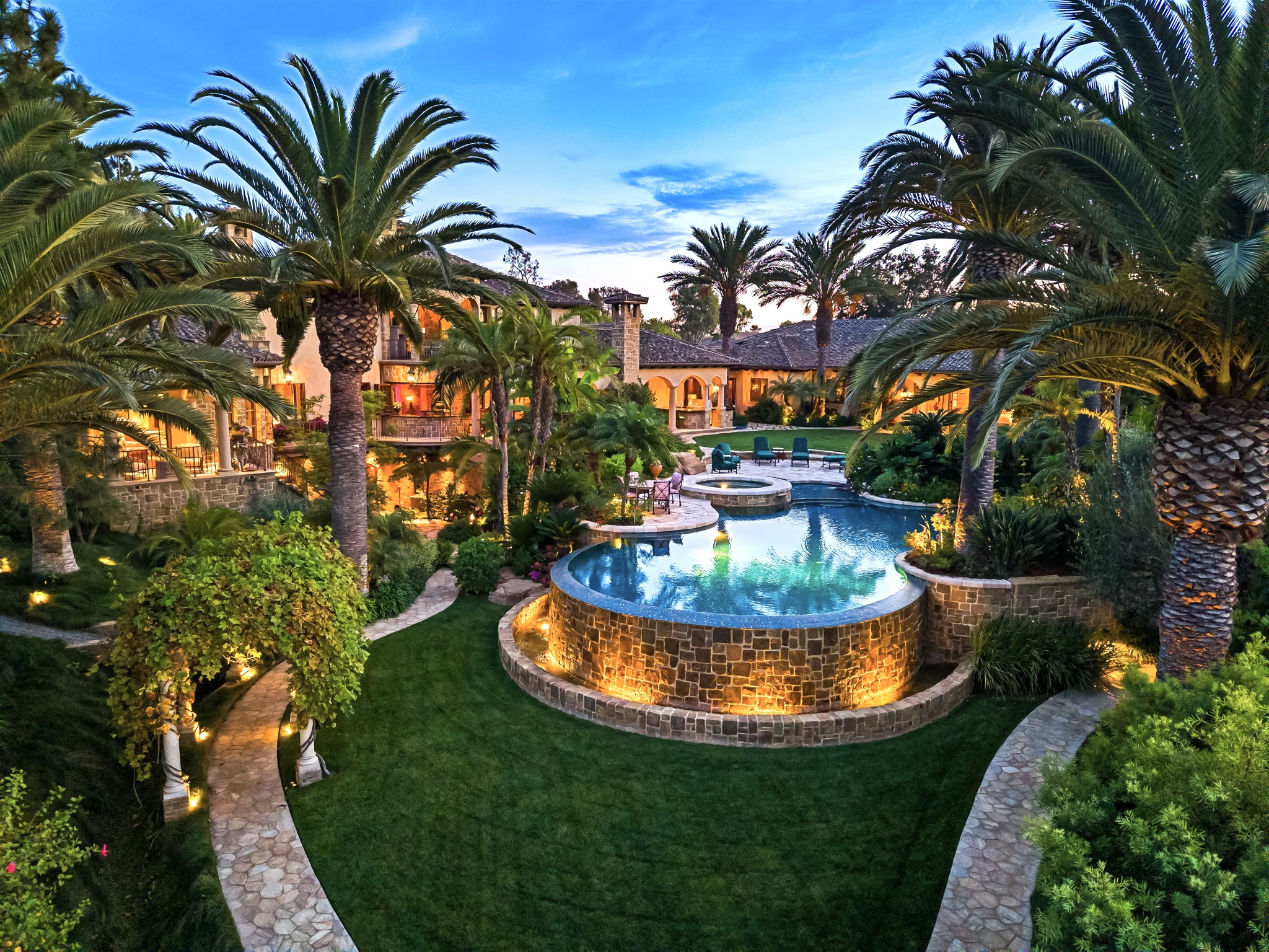 Additional amenities include a subterranean wine cellar and tasting lounge, professional soundproof home theater, Crestron home automation system, safe room, and garage parking for seven cars plus RV. Every inch of this estate has been designed for elegant living and grand entertaining.