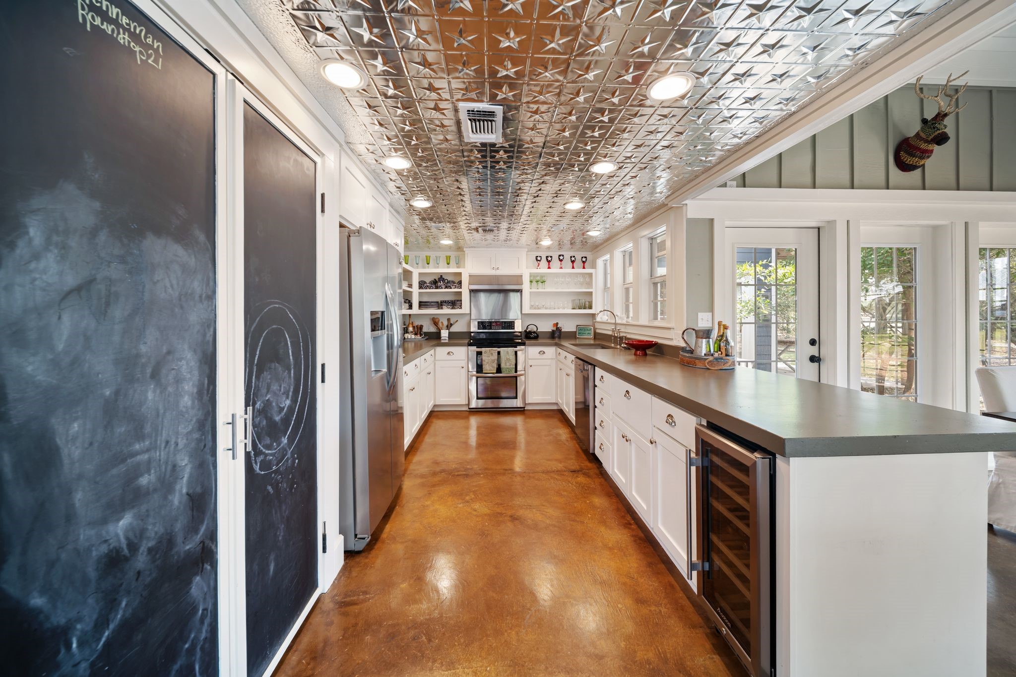 Less than five minutes from the square in Round Top, this 8.7 acre property offers both personal use and income potential. The main home features a vaulted living room, open kitchen and dining area, four bedrooms, and three full baths. A separate guest house provides additional space for visitors. Outdoor amenities include a pool with pool house, fire pit area, and a stocked pond with bass, catfish, and piers for fishing or relaxing. The wooded acreage provides privacy while remaining close to town. Offered fully furnished and turnkey, the property currently generates income during the Antique Shows and offers potential for additional short term rental use. There is also an opportunity to build a even larger primary home across the pond while continuing to utilize the existing improvements for guest accommodations or rental income.