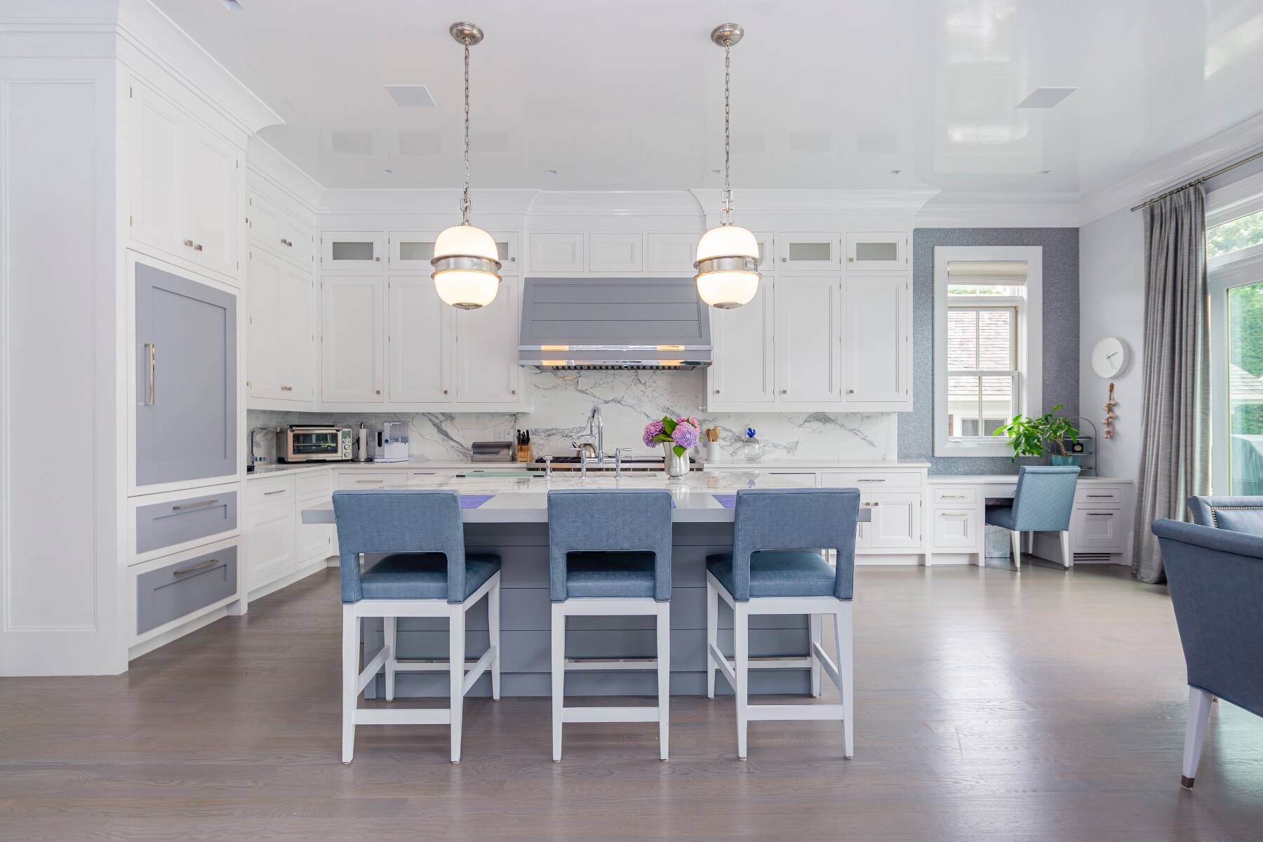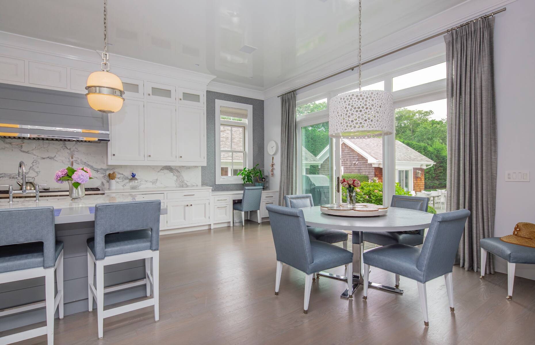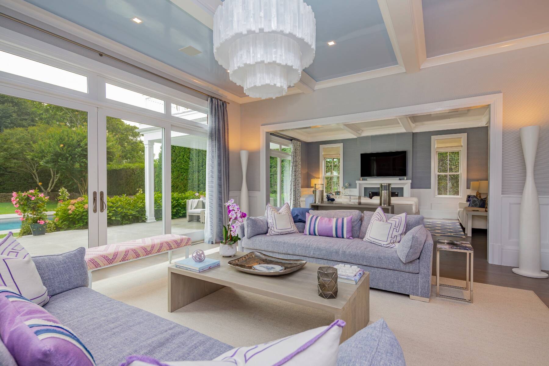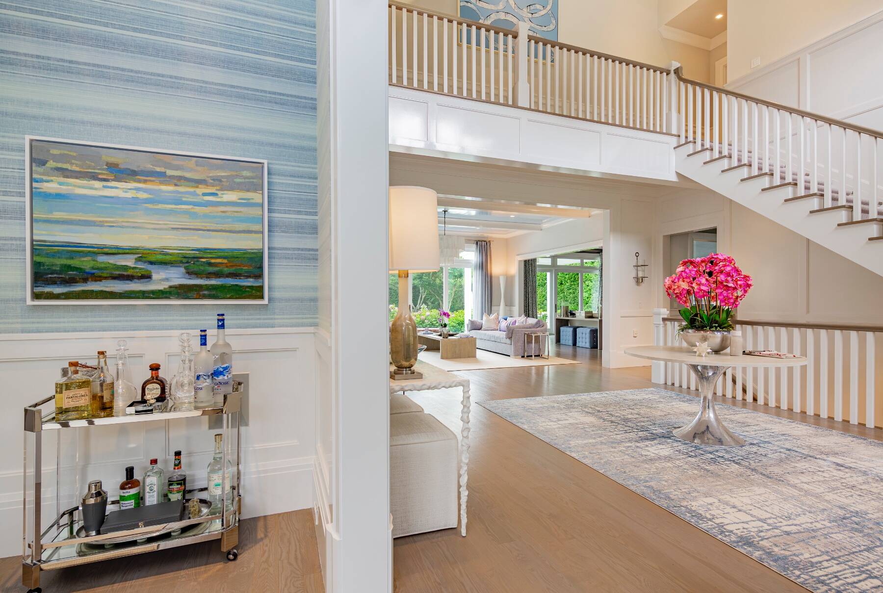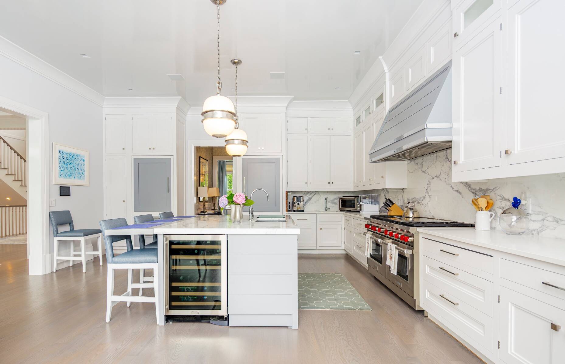 This residence truly has it all. Step inside and be greeted by a dramatic double-height foyer that sets the tone for the home's grand yet inviting design. The open, light-filled floor plan flows effortlessly, perfect for both everyday living and entertaining. Ideally situated just moments from Southampton Village and the pristine ocean beaches, this shingled traditional sits on a generous 0.72-acre Village lot. Offering 5,300 square feet of above-ground living space, plus an additional 2,500 square feet on the beautifully finished lower level, the home provides ample room for all occasions. Outdoors, enjoy extensive bluestone patios, lush landscaped gardens, a 45' x 20' gunite pool, and a 10' x 10' spa. A 468-square-foot pool house completes the resort-like setting, featuring a full bath, sitting room, and wet bar. The gourmet kitchen is a chef's dream, anchored by a statuary marble island and outfitted with top-tier appliances including two Sub-Zero refrigerators/freezers, a wine cooler, and double ovens. The first floor also offers a formal dining room, powder room, formal living room, casual living room with fireplace, and a junior primary suite. Expansive glass doors along the south wall open seamlessly to the partially covered patio, pool, and private backyard for effortless indoor-outdoor living. Upstairs, the primary suite impresses with 11' vaulted ceilings, a fireplace, private balcony, spacious walk-in closet, and a spa-like bath with radiant heat, steam shower, and stand-alone tub. Three additional ensuite guest bedrooms and a large laundry room with dual washers and dryers complete the second floor. The lower level is designed for recreation and relaxation, featuring a glass-enclosed gym, state-of-the-art theater, powder room, seating area, space for a wine cellar, and two bright guest bedrooms with an adjoining bath. This is a rare opportunity to enjoy a Southampton Village home that combines timeless style, modern luxury, and a truly exceptional location.