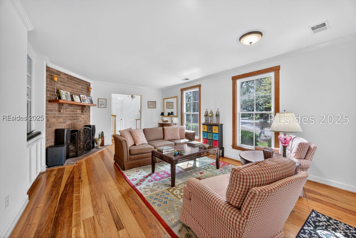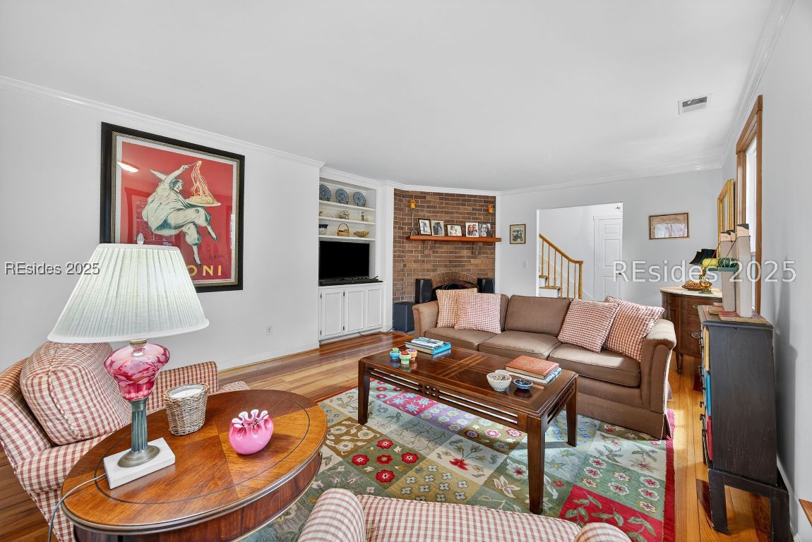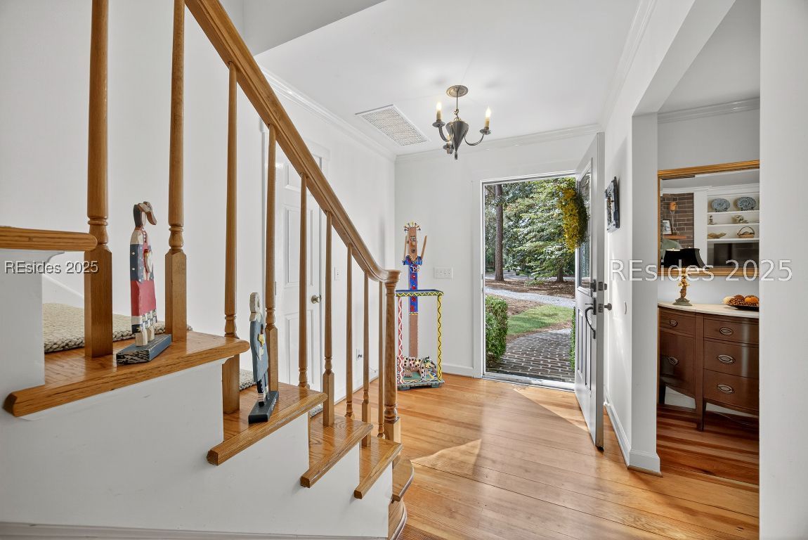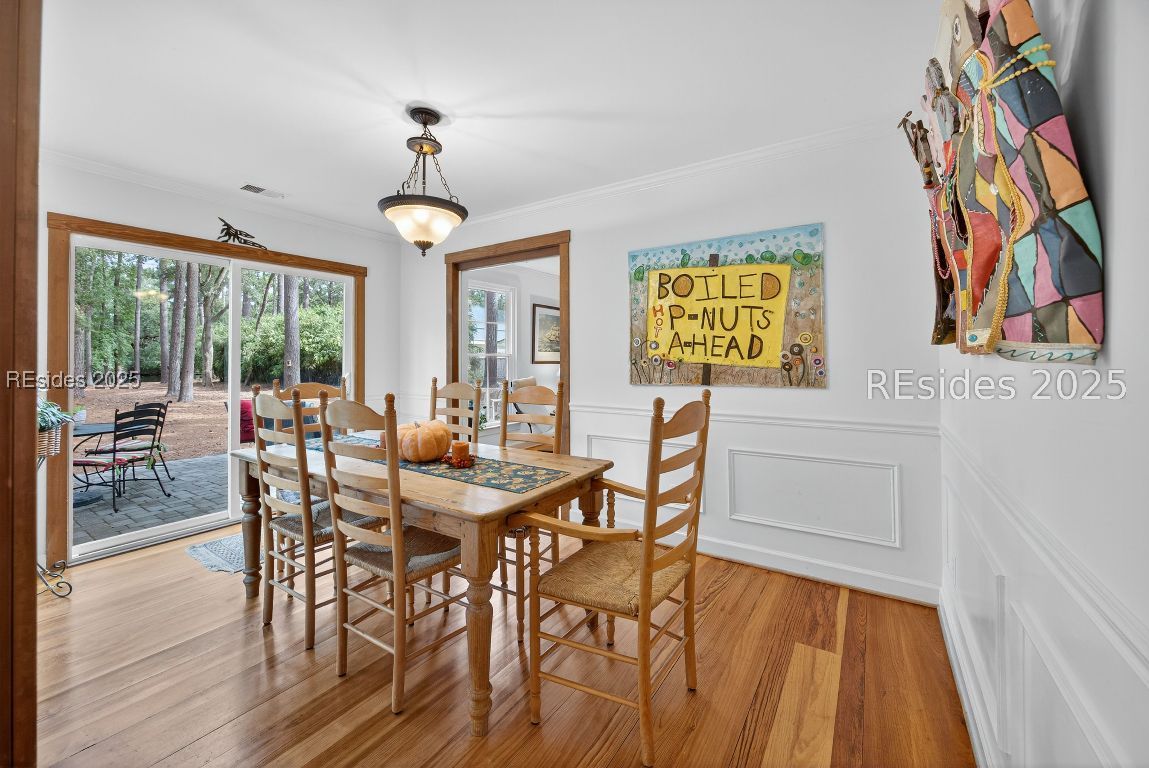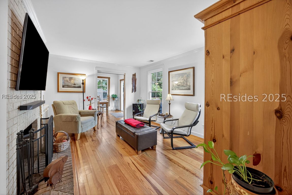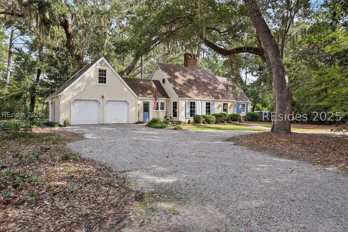Rare opportunity to own a charming Cape Cod-style home in the exclusive Spanish Wells community on Hilton Head Island for under $1M. Situated on a private one-acre lot overlooking a lagoon and the golf course, this home features wide-plank heart-of-pine floors, abundant natural light, and a spacious layout with a first-floor primary suite. Enjoy the serene backyard with a majestic live oak and lush landscaping. A finished room above the two-car garage offers space for an office or studio. Spanish Wells Club membership is required to access club amenities which include a golf course, pool, clubhouse, deep water dock, and the beach on Calibogue Sound. All this in a quiet, friendly neighborhood with easy access to the islands best attractions.