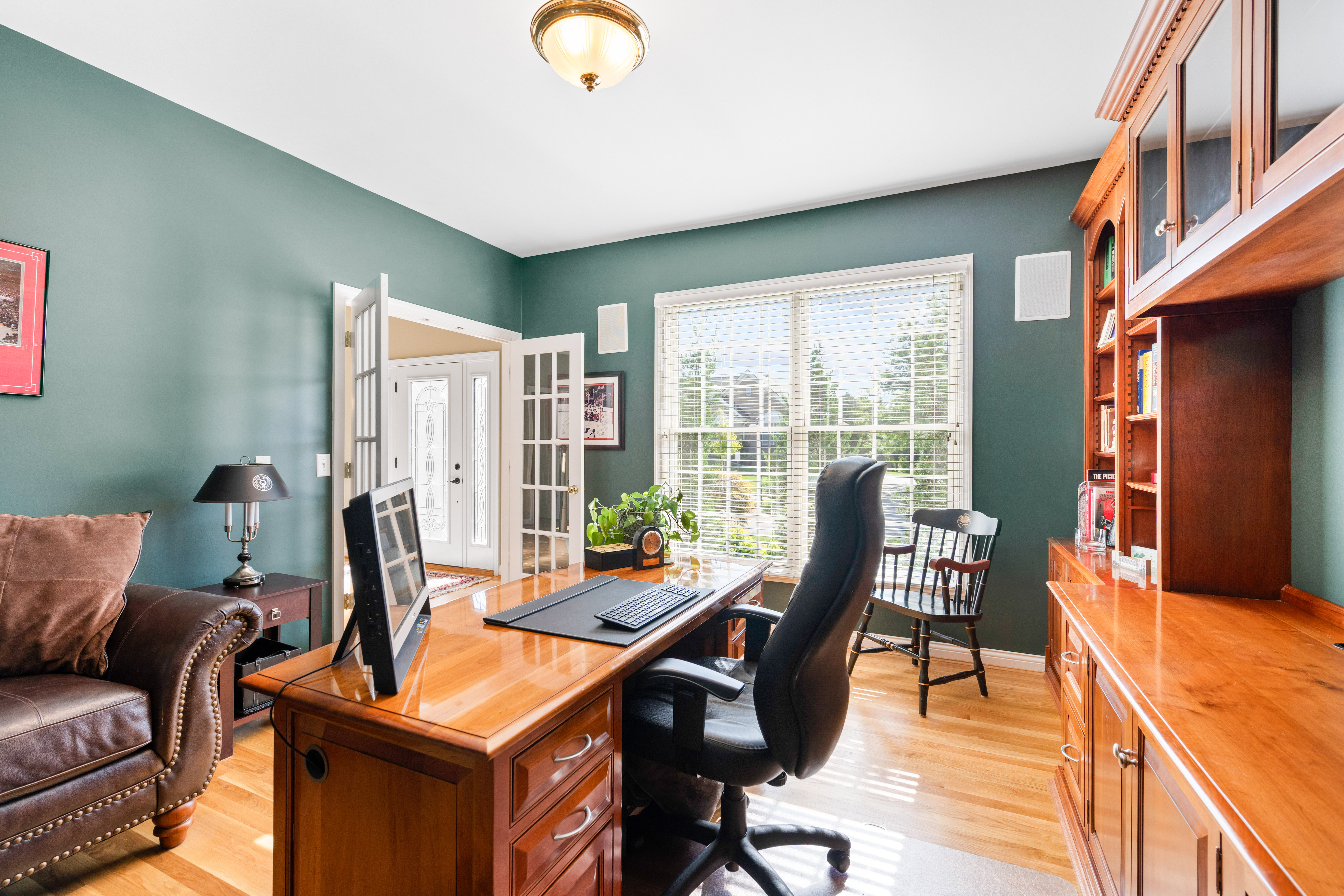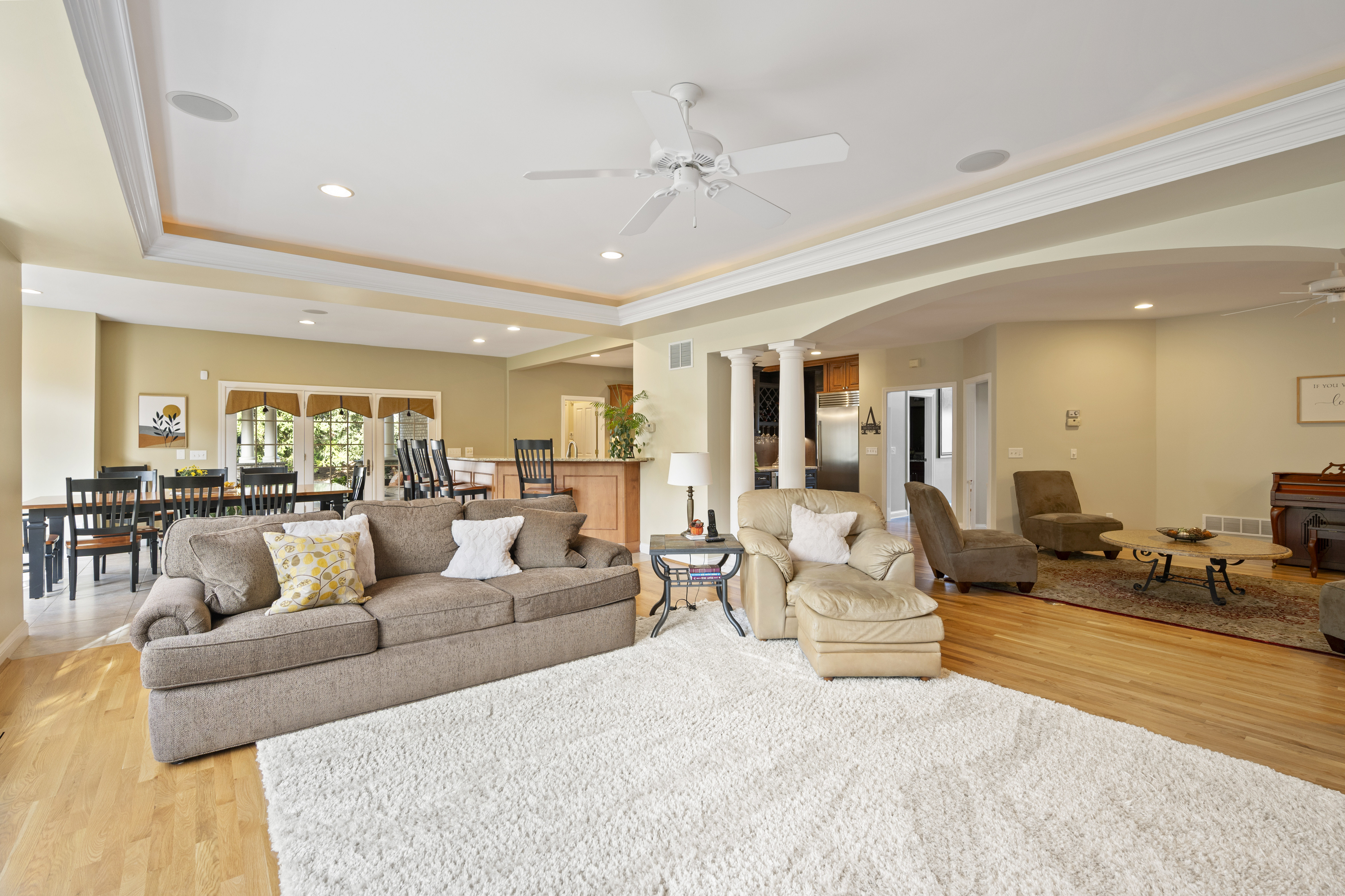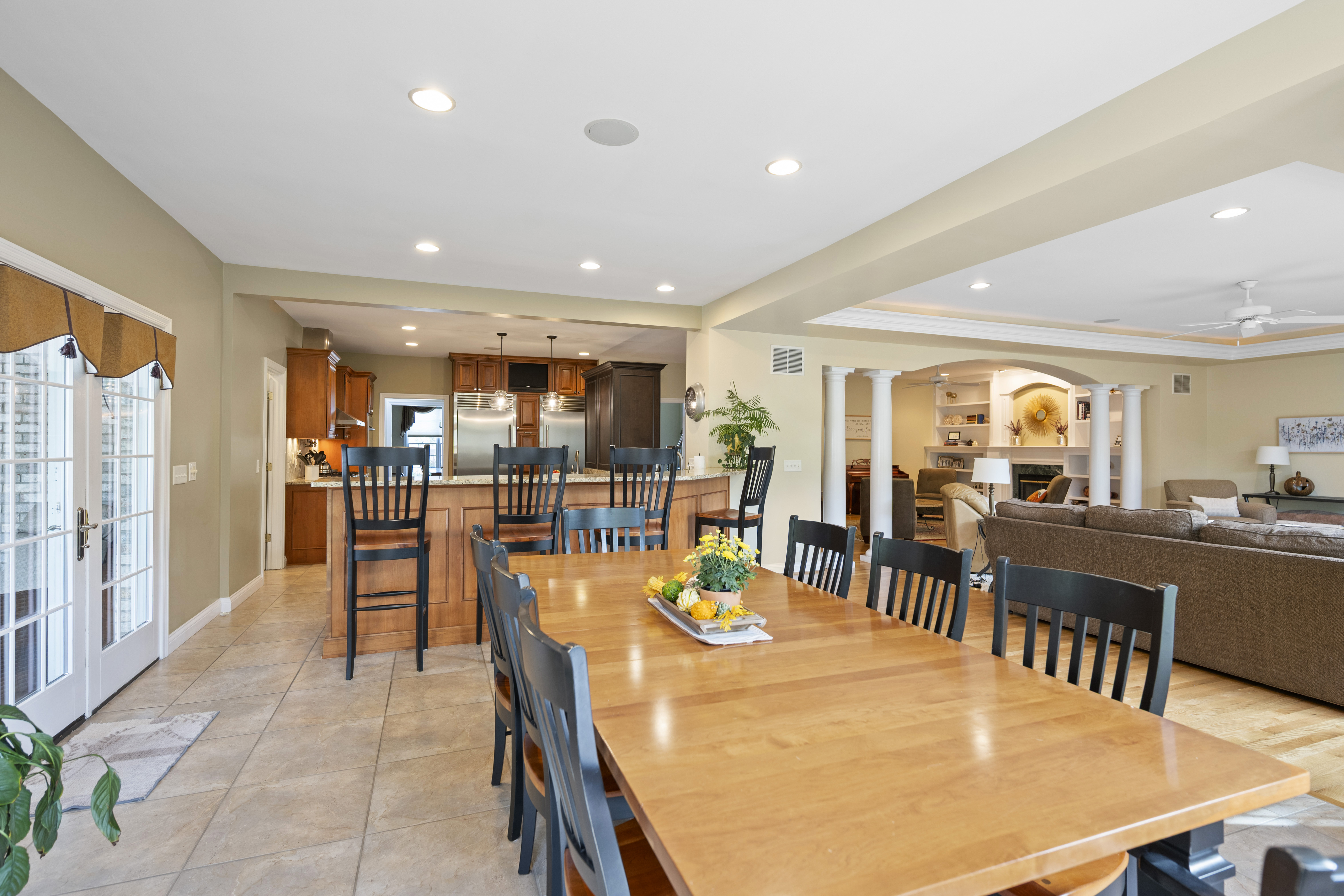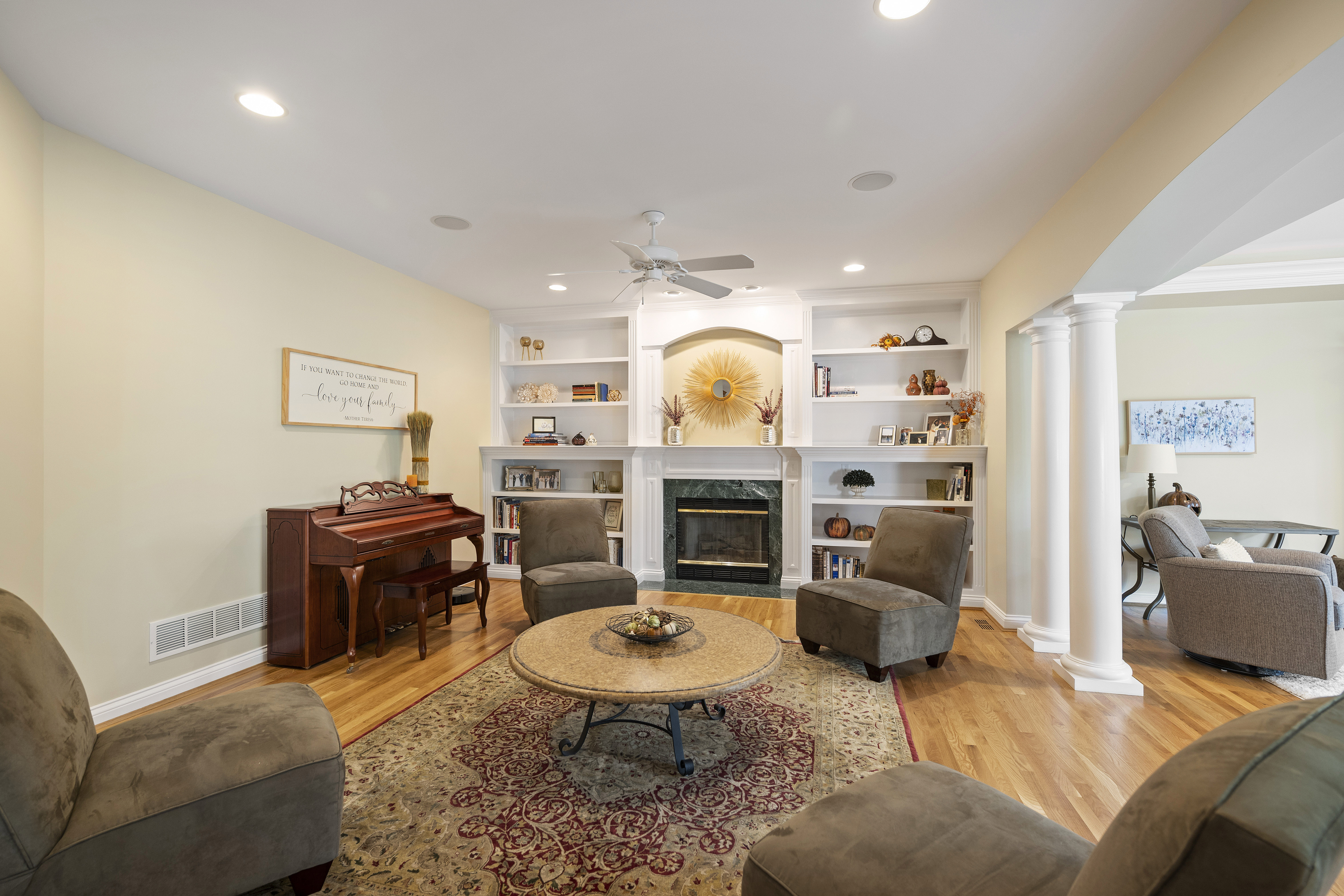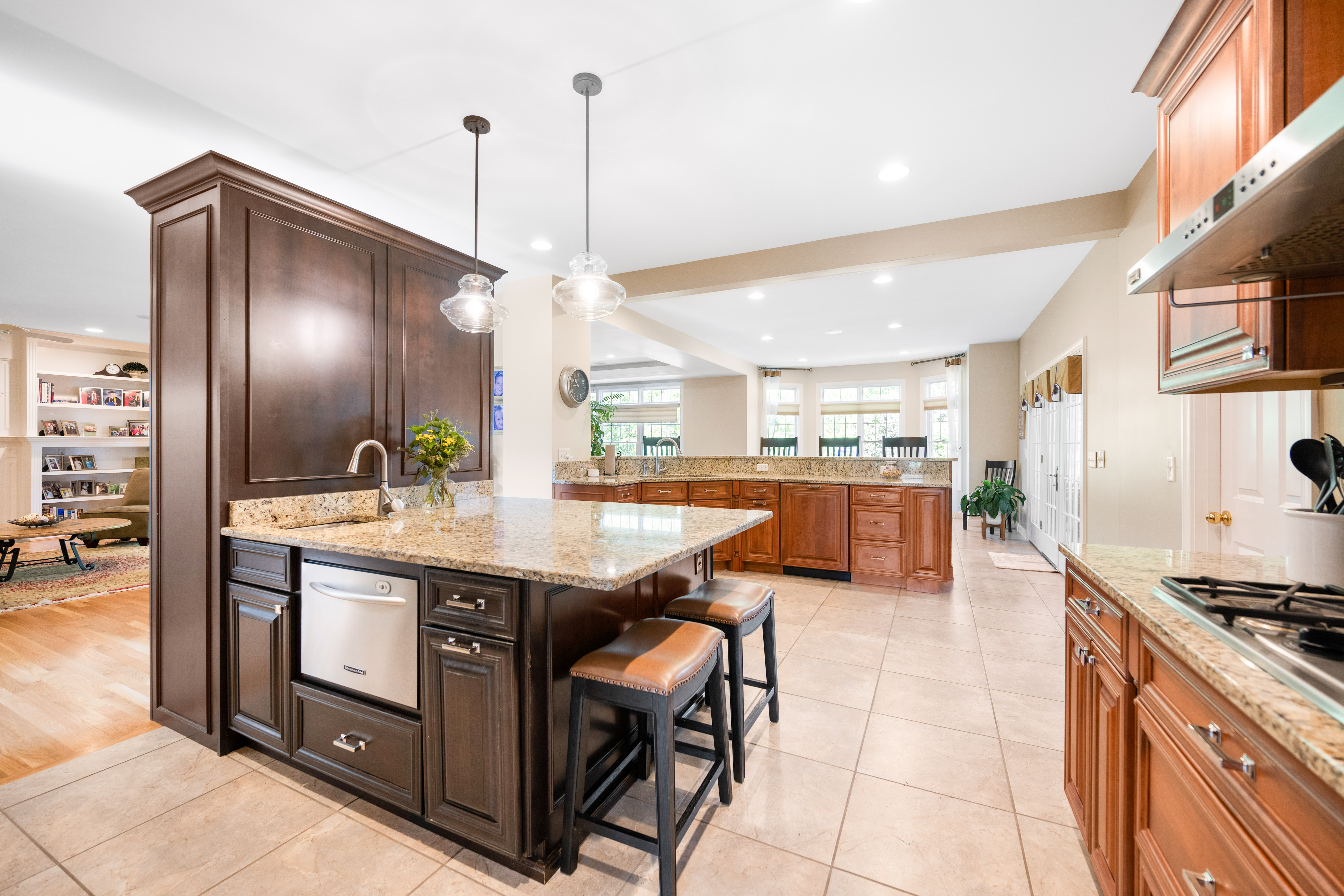 Unparalleled craftsmanship in this thoughtfully designed 4,200+ sqft home with open layout & elegant finishes. From the grand entry to the granite floor in the dining room, every detail makes a statement. Beautiful gourmet kitchen with tasteful elegance that will never go out of style. 1st floor study with cherry built-ins. 5 BR's each with connecting bath. Large, walkout lower level with bar, wine cellar, billiards area, workout and recreation rooms, plus plenty of storage. Outdoor living space is surrounded by trees and lush extensive landscaping with lighting and irrigation system includes covered porch, terraced patio, and outside kitchen. 3 car garage. Fantastic family neighborhood convenient to all major highways. Craft room in lower level with cabinetry & countertops for projects. Long list of improvements.