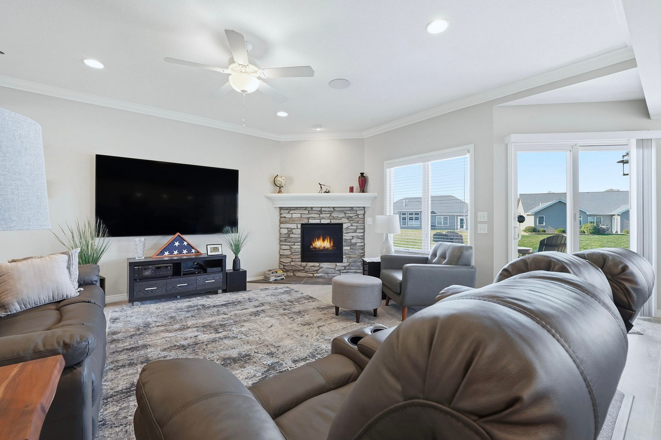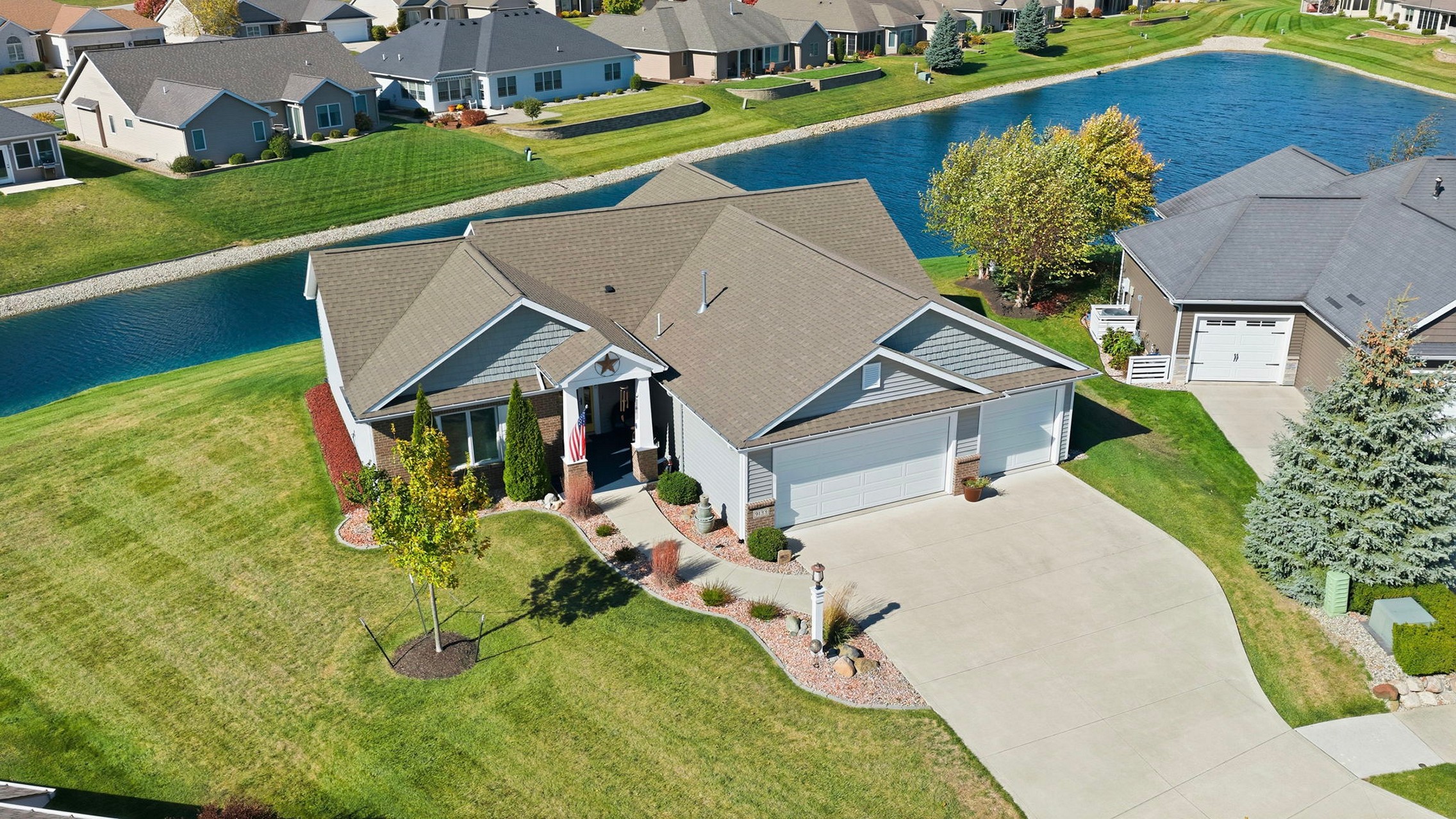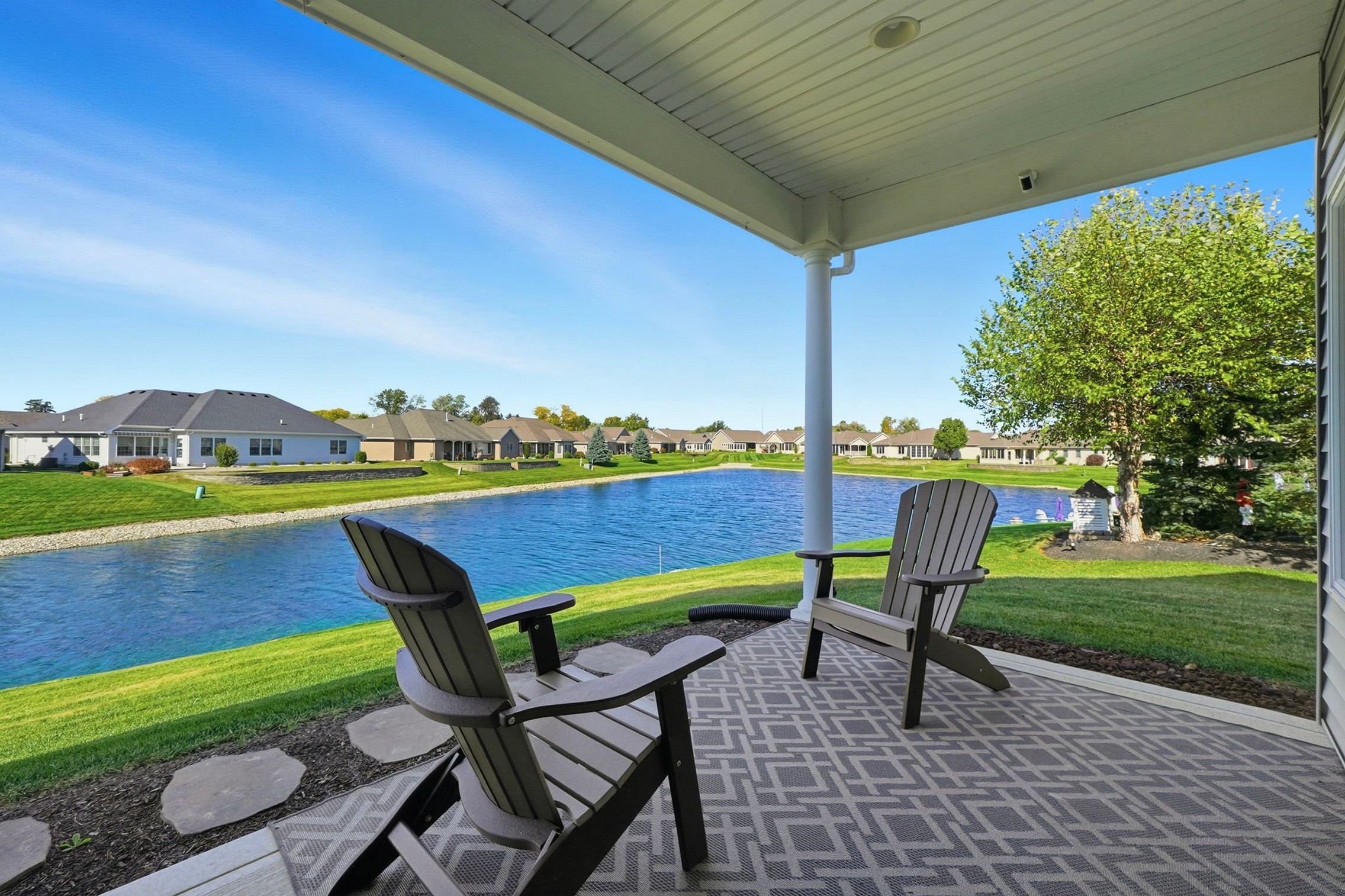 Why build when this beautifully maintained, one-owner custom-built home is ready for you? Situated on a stunning cul-de-sac & pond lot, this exceptional 3 bedroom ranch is one you will want to get your eyes on! Step onto the covered front porch, into the foyer, & the spacious great room featuring a cozy gas log fireplace & large windows that flood the space with natural light, beautifully highlighting the vinyl plank flooring welcomes you. The open concept design flows seamlessly into the kitchen, which boasts stainless steel appliances (that remain), a stylish ceramic tiled backsplash, & a versatile two-tiered island ideal for entertaining or family gatherings! The primary suite is privately tucked away, complete with a trey ceiling, picturesque pond views, & direct access to a private covered patio. The en-suite bathroom offers a garden tub, walk-in shower, & a large walk-in closet with organizers. Two generously sized guest bedrooms are positioned on the opposite side of the split bedroom floor plan, along with a full bathroom, perfect for family or visitors! A dedicated laundry room with washer & dryer that remain leads out to the attached 3-car garage, providing ample space for vehicles, toys, & storage. Enjoy peaceful outdoor living on either of the two patios, overlooking a tranquil setting in this quiet neighborhood. Just minutes from downtown New Haven & Fort Wayne, Landin Meadows offers an excellent location with all the conveniences you desire!