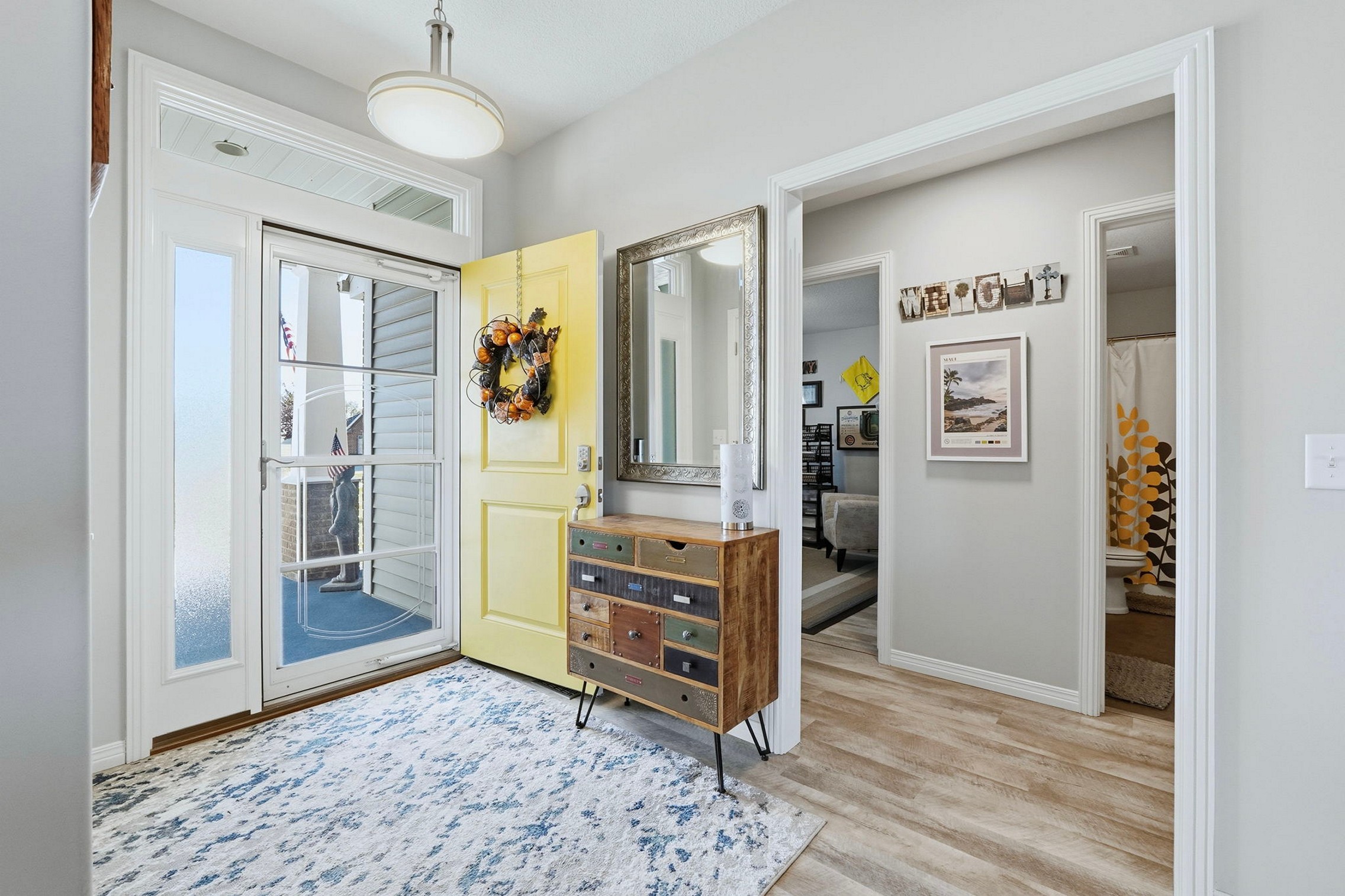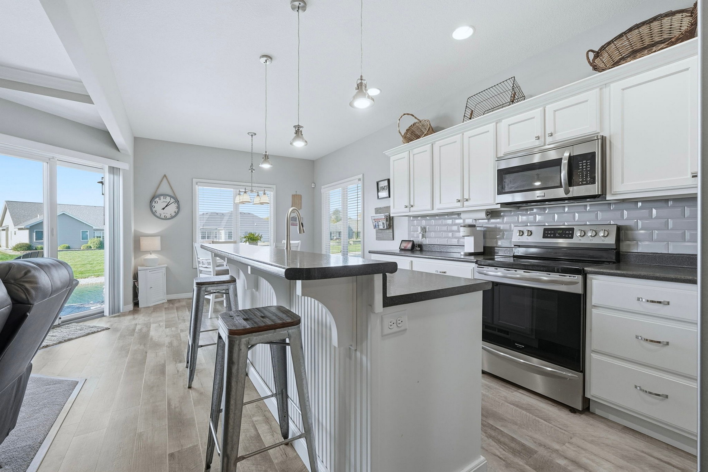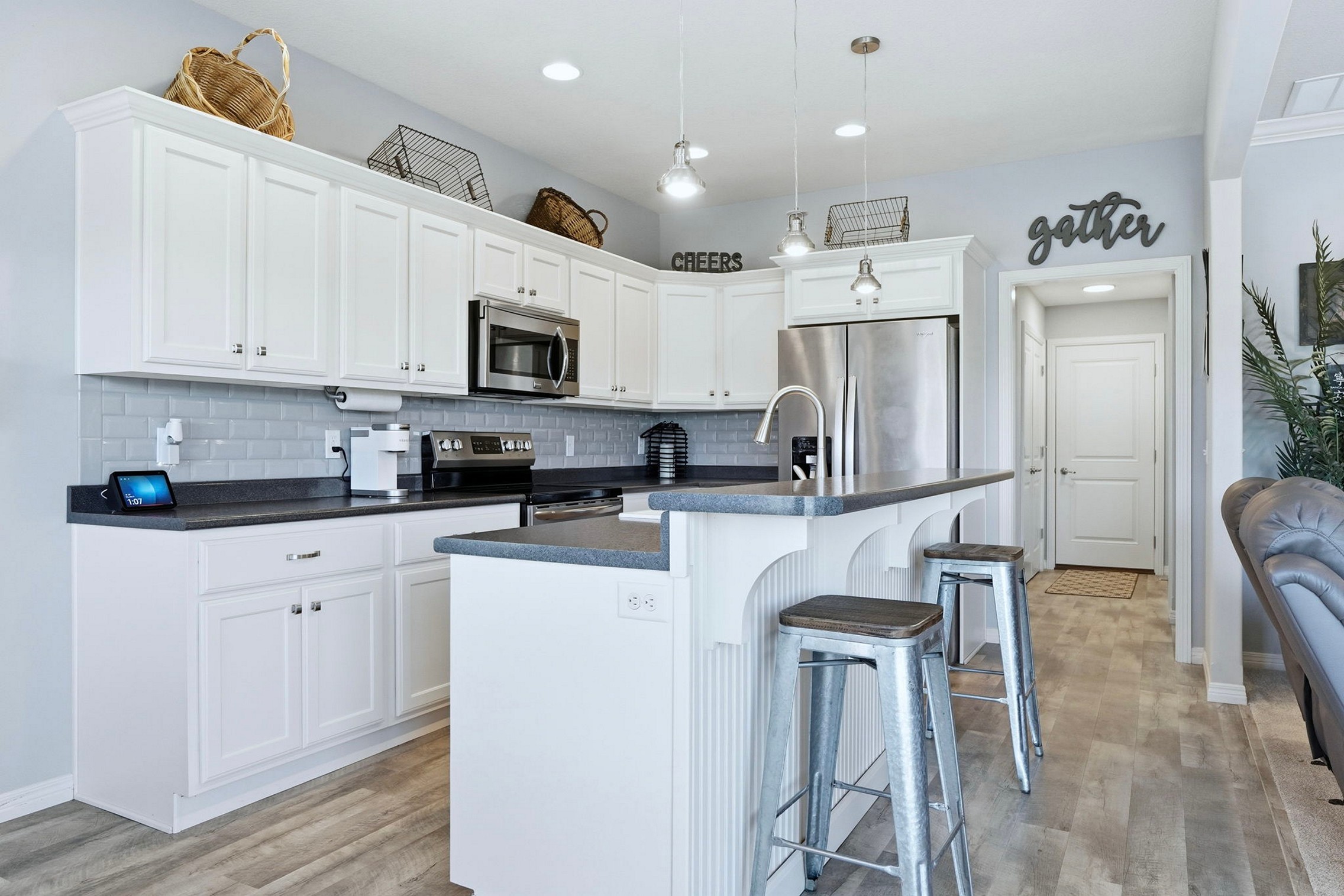 Why build when this beautifully maintained, one-owner custom-built home is ready for you? Situated on a stunning cul-de-sac & pond lot, this exceptional 3 bedroom ranch is one you will want to get your eyes on! Step onto the covered front porch, into the foyer, & the spacious great room featuring a cozy gas log fireplace & large windows that flood the space with natural light, beautifully highlighting the vinyl plank flooring welcomes you. The open concept design flows seamlessly into the kitchen, which boasts stainless steel appliances (that remain), a stylish ceramic tiled backsplash, & a versatile two-tiered island ideal for entertaining or family gatherings! The primary suite is privately tucked away, complete with a trey ceiling, picturesque pond views, & direct access to a private covered patio. The en-suite bathroom offers a garden tub, walk-in shower, & a large walk-in closet with organizers. Two generously sized guest bedrooms are positioned on the opposite side of the split bedroom floor plan, along with a full bathroom, perfect for family or visitors! A dedicated laundry room with washer & dryer that remain leads out to the attached 3-car garage, providing ample space for vehicles, toys, & storage. Enjoy peaceful outdoor living on either of the two patios, overlooking a tranquil setting in this quiet neighborhood. Just minutes from downtown New Haven & Fort Wayne, Landin Meadows offers an excellent location with all the conveniences you desire!