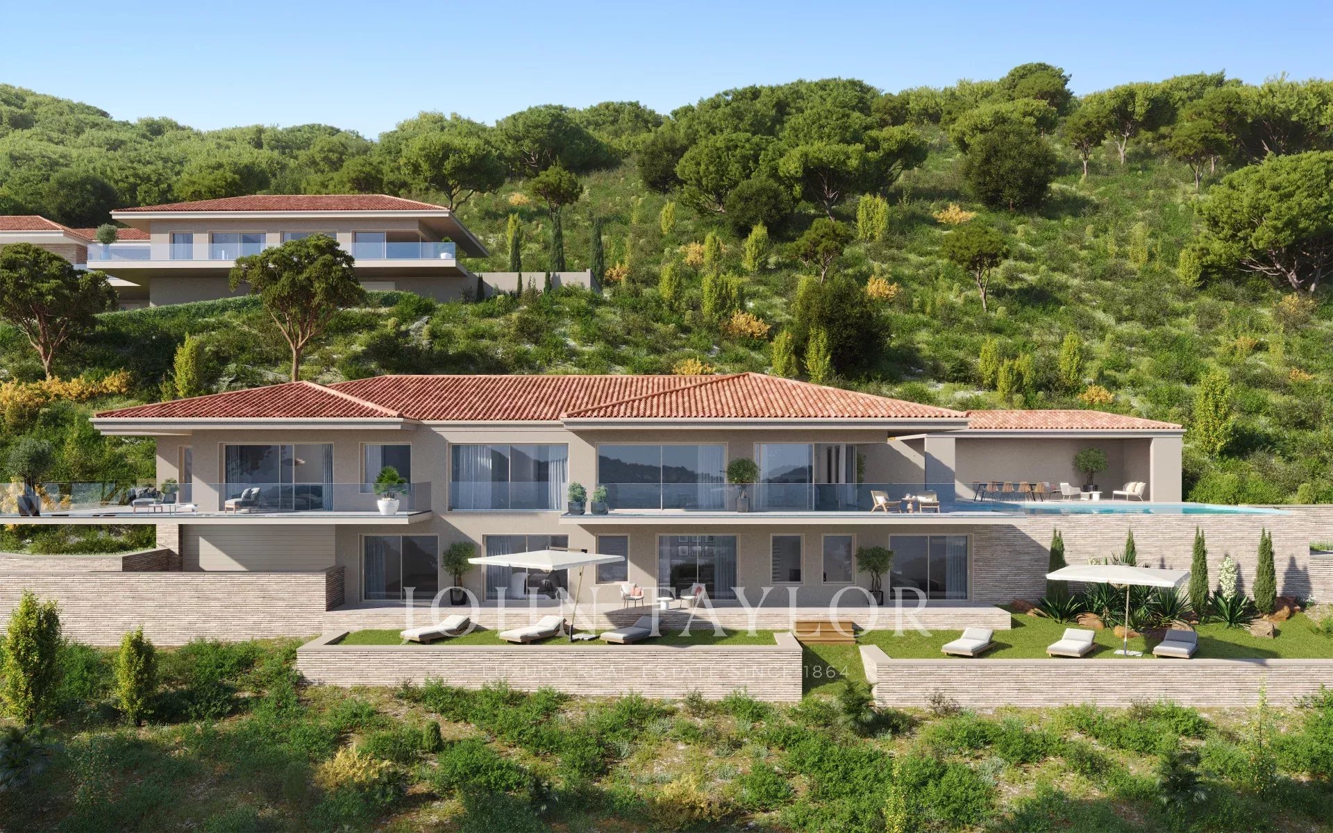 Located in a sought-after, secure address, this contemporary 397 m² villa combines modern comfort with an exceptional natural setting.It features a vast, luminous 162 m² living space with open kitchen, designed to take full advantage of the unobstructed view. The property features five en suite bedrooms, each with its own private bathroom, including a master bedroom with dressing room.The 3,700 m² landscaped grounds feature a superb swimming pool extending from the living room terrace, complemented by a summer kitchen ideal for moments of relaxation and conviviality.This villa offers the possibility of customizing the finishes to create an interior that reflects your desires.Scheduled for delivery in summer 2028 - an exclusive development where the sea and nature become part of your daily life. Reduced notary fees.