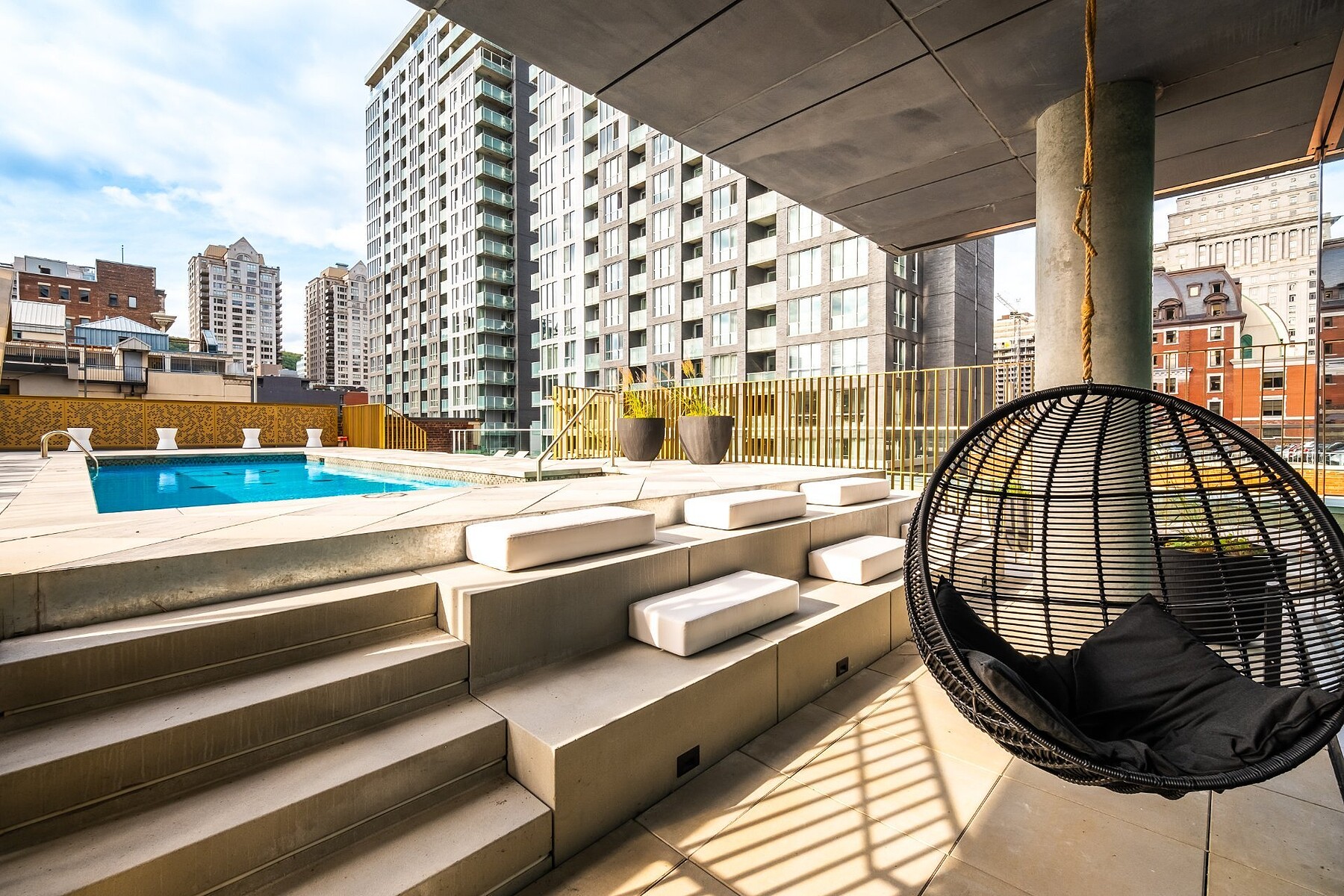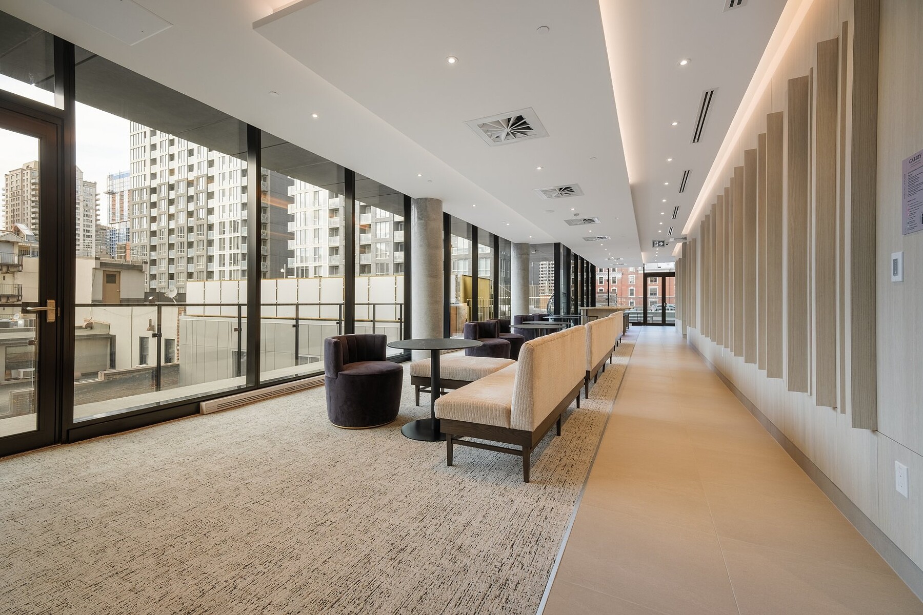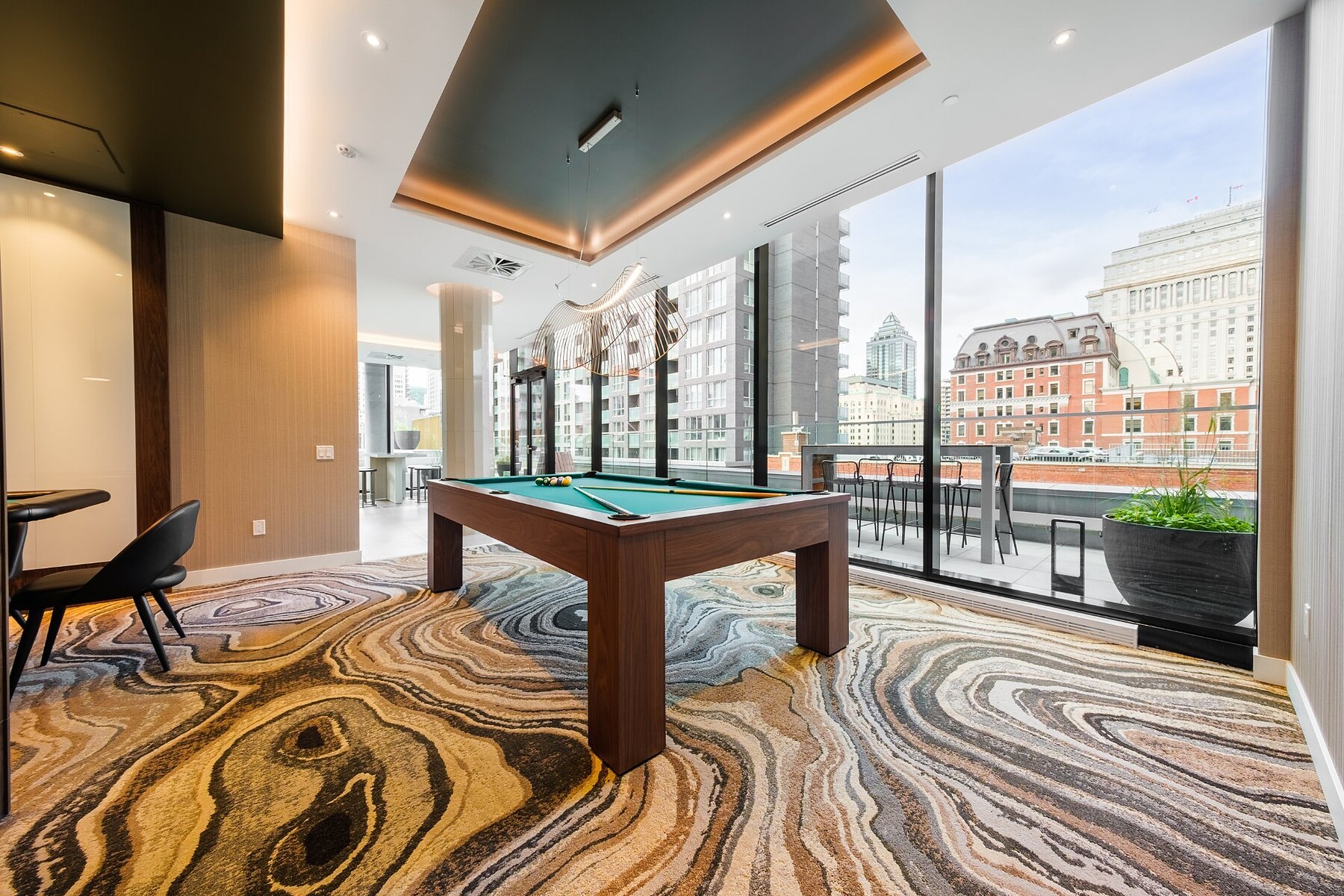 ADJUSTED PRICE - New and modern studio located in the heart of downtown Montréal, offering an open-concept living space that combines comfort and functionality. Thanks to its large windows, enjoy a stunning view of the city and exceptional natural light. The Gatsby Condos, a new development with a refined design, offers a contemporary layout tailored to an urban lifestyle. Inspired by the Roaring Twenties, the building stands out with its elegant and distinctive architecture. Residents enjoy premium amenities, including a pool and fitness room. Refinement at the heart of Montréal living.