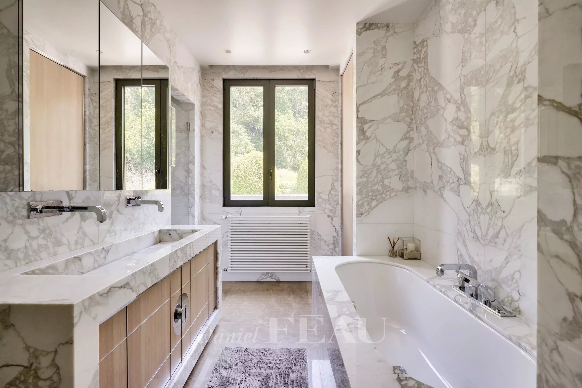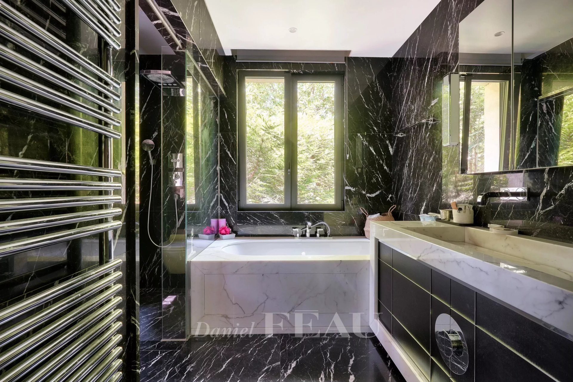 This architect-designed property set in 1700 sqm of leafy grounds with a heated swimming pool was renovated throughout in 2018. It includes an entrance hall with fitted storage space, a living/reception room bathed in sunshine, an equipped kitchen and dining room opening onto a terrace, a master suite with a bathroom and dressing room, a shower room and a utility room.