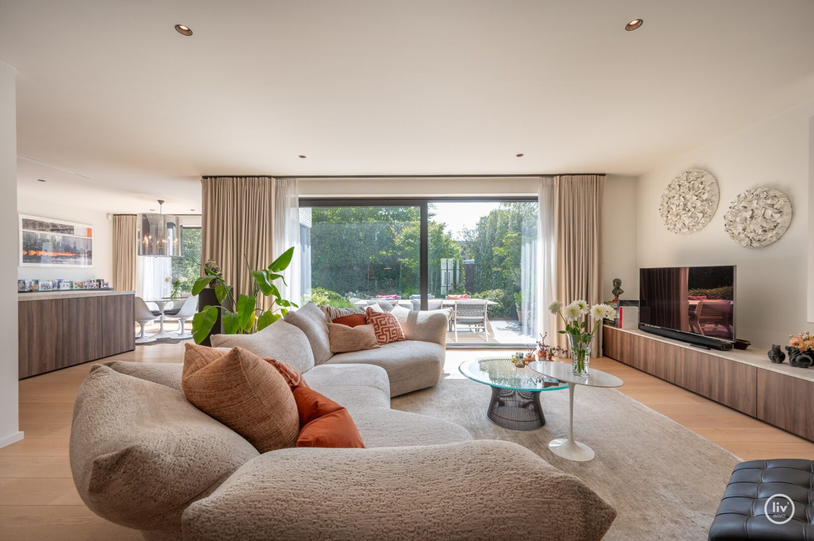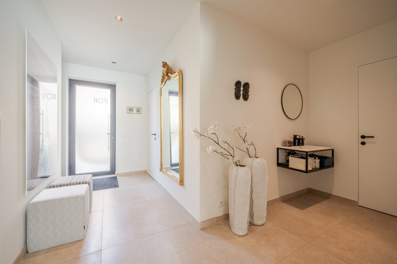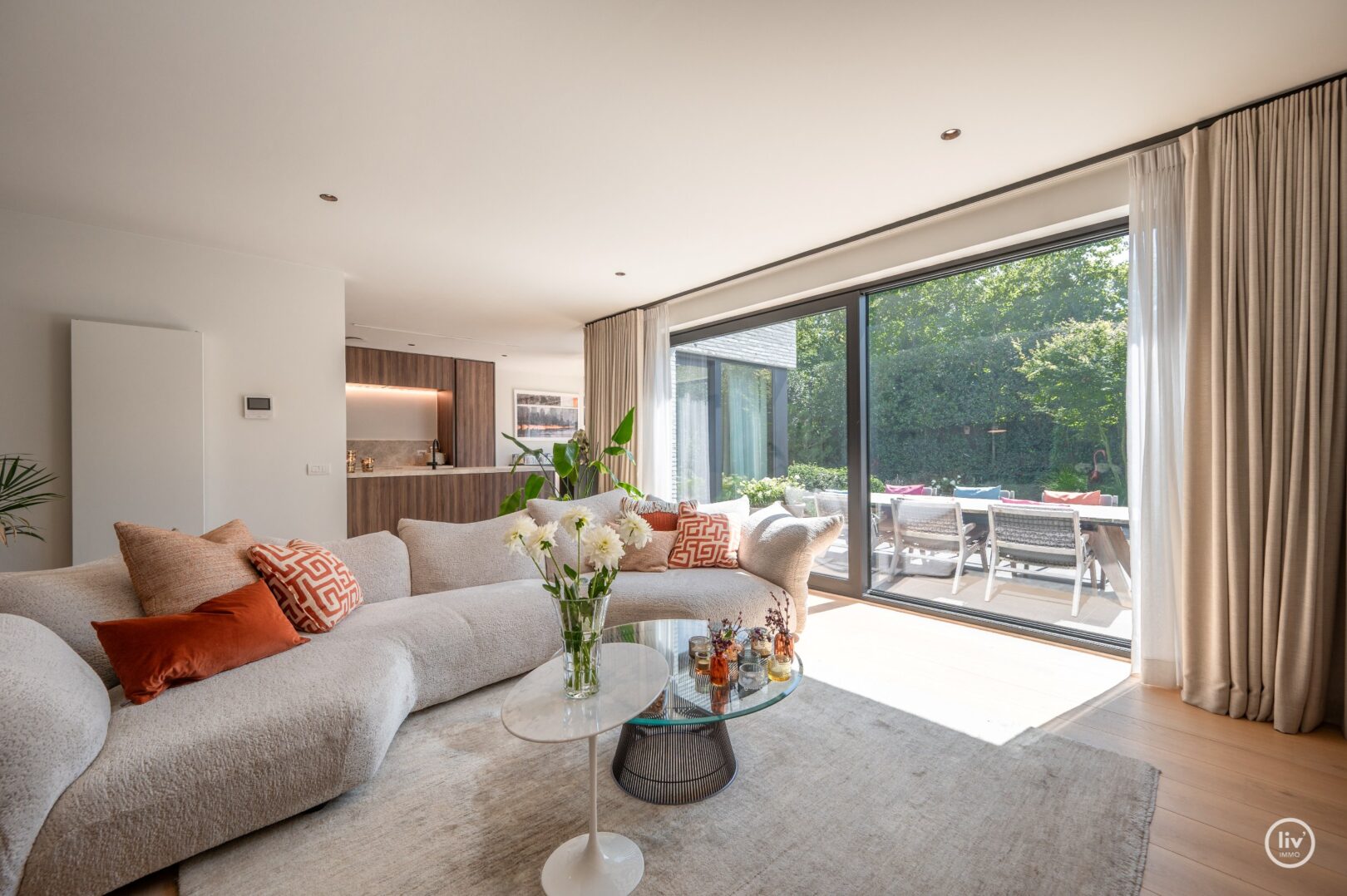 Recente koppelwoning (2021) ideaal gelegen aan de rand van het zoute.Bestaande uit : gelijkvloerse verdieping : ruime inkomhal met gastentoilet, bureelruimte met ingemaakte kasten, zeer ruime en lichtrijke living bestaande uit eetplaats en zithoek met gashaard en ingemaakte kasten.Luxueus afgewerkte open keuken voorzien van alle modern comfort (o.a. keukentoestellen van Miele), ontbijthoek uitgevend op zuidgerichte onderhoudsvriendelijke tuin. Het terras / tuin is voorzien van zonnetenten.Praktische bijkeuken / wasplaats en ruime garage.eerste verdiep : master slaapkamer met aanpalende dressing en badkamer (dubbele lavabo, ligbad, inloopdouche en toilet).De 2 andere slaapkamers zijn telkens ruim genoeg voor een dubbel bed en ingemaakte kasten (op heden is 1 kamer ook ingericht als extra dressing).Deze slaapkamers delen een douchekamer. Apart toilet op de gang.tweede verdiep : 4de (zeer ruime) slaapkamer met aanpalende badkamer met inloopdouche, lavabo en toilet. Ruime zolder dat ideaal dienst doet als extra opbergruimte.parking : 1 ruime inpandige garage alsook parkeerplaats op de oprit + extra plaats voor golfkar.enkele extra troeven : Zeer mooie afwerkingsgraad en gebruik van kwaliteitsvolle materialenzonnetenten alarm + camera'sonderhoudsvriendelijke zuidgerichte tuin met veel privacyairco in master