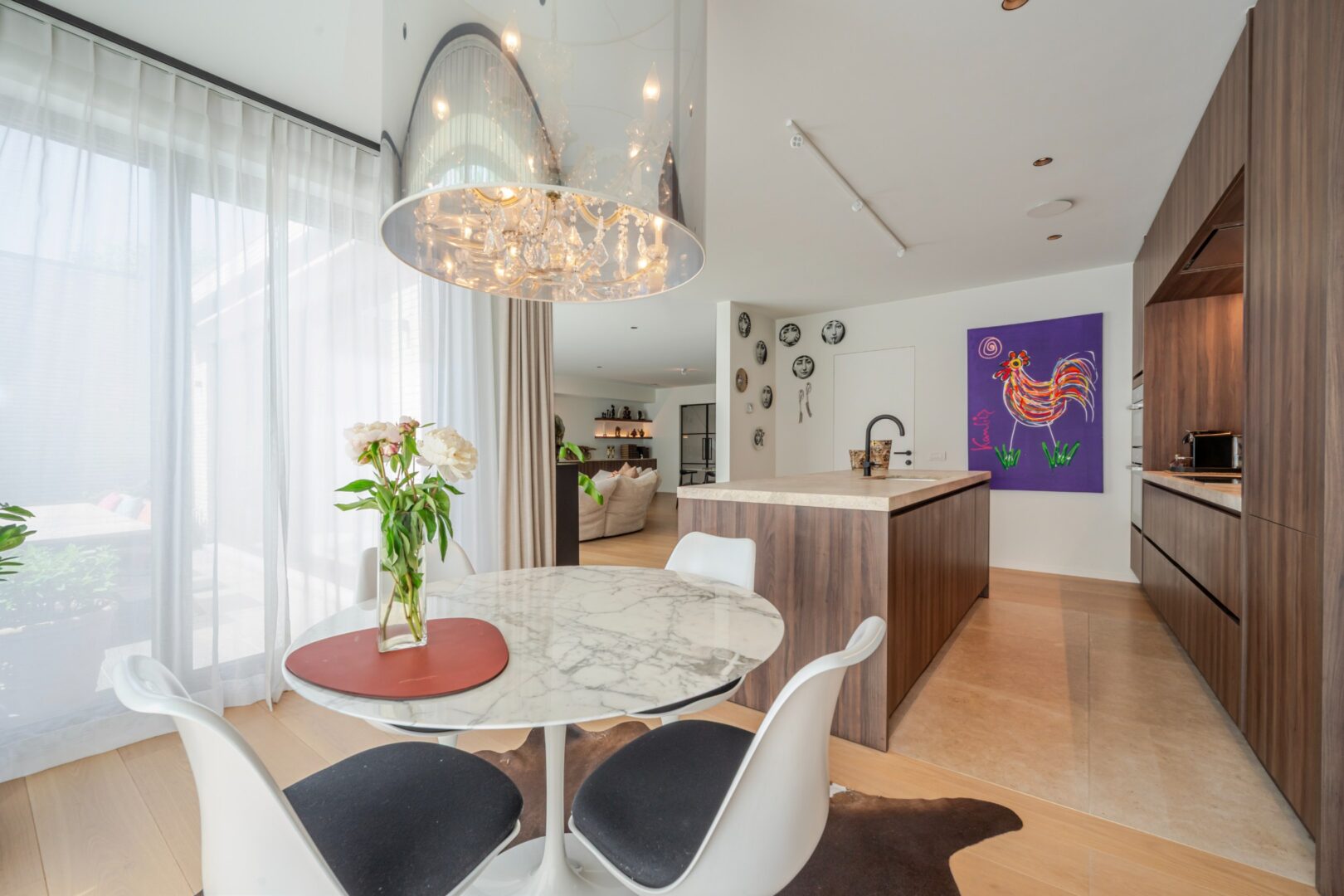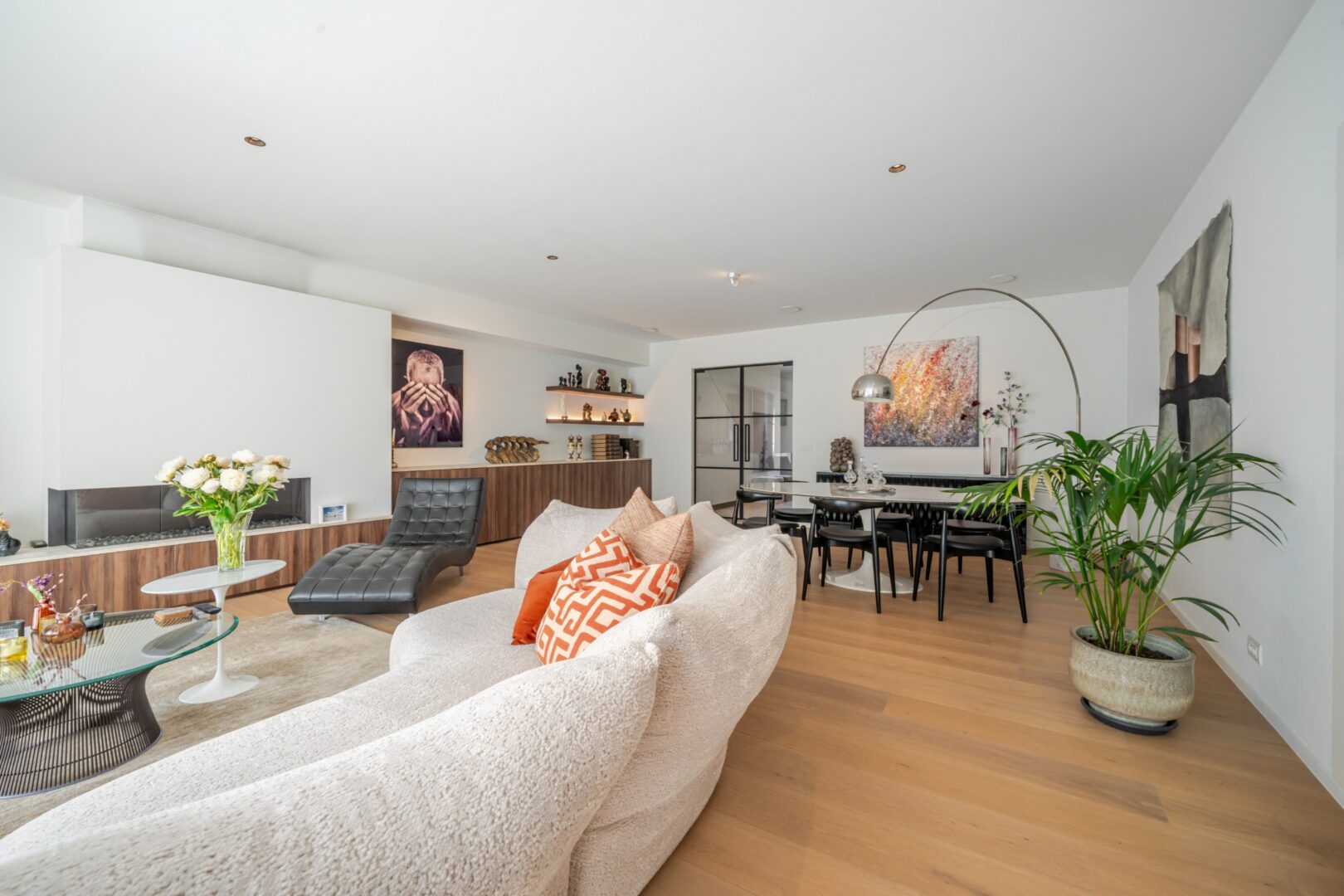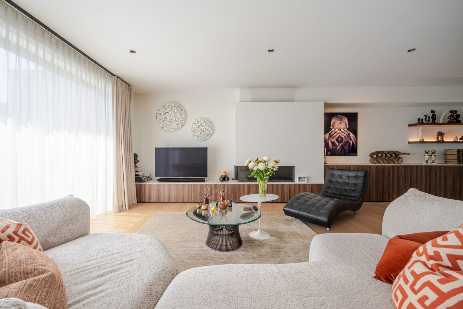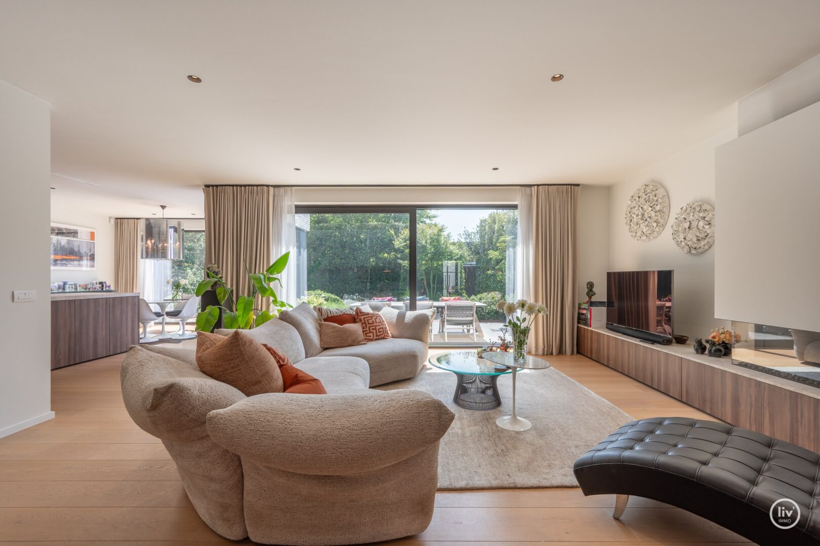 Recente koppelwoning (2021) ideaal gelegen aan de rand van het zoute.Bestaande uit : gelijkvloerse verdieping : ruime inkomhal met gastentoilet, bureelruimte met ingemaakte kasten, zeer ruime en lichtrijke living bestaande uit eetplaats en zithoek met gashaard en ingemaakte kasten.Luxueus afgewerkte open keuken voorzien van alle modern comfort (o.a. keukentoestellen van Miele), ontbijthoek uitgevend op zuidgerichte onderhoudsvriendelijke tuin. Het terras / tuin is voorzien van zonnetenten.Praktische bijkeuken / wasplaats en ruime garage.eerste verdiep : master slaapkamer met aanpalende dressing en badkamer (dubbele lavabo, ligbad, inloopdouche en toilet).De 2 andere slaapkamers zijn telkens ruim genoeg voor een dubbel bed en ingemaakte kasten (op heden is 1 kamer ook ingericht als extra dressing).Deze slaapkamers delen een douchekamer. Apart toilet op de gang.tweede verdiep : 4de (zeer ruime) slaapkamer met aanpalende badkamer met inloopdouche, lavabo en toilet. Ruime zolder dat ideaal dienst doet als extra opbergruimte.parking : 1 ruime inpandige garage alsook parkeerplaats op de oprit + extra plaats voor golfkar.enkele extra troeven : Zeer mooie afwerkingsgraad en gebruik van kwaliteitsvolle materialenzonnetenten alarm + camera'sonderhoudsvriendelijke zuidgerichte tuin met veel privacyairco in master