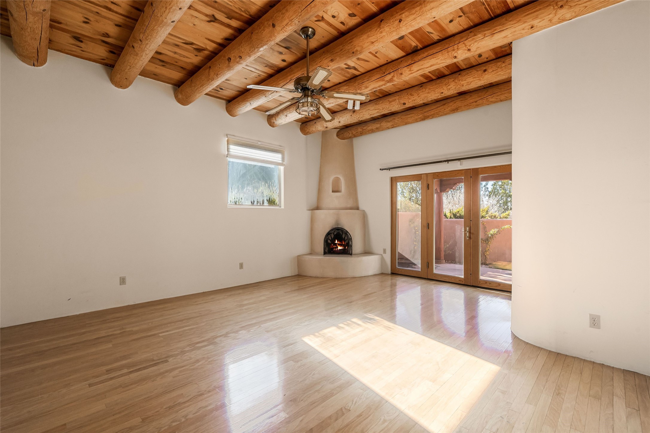 Sited within the serene landscapes of Santa Fe, this 3-bedroom 3 bath home offers a blend of comfort, style, and sustainability. This 2.5-acre property, surrounded by the natural beauty of Tres Arroyos, is within easy access to the vibrant energy of Santa Fe Plaza, allowing you to enjoy both tranquility and the lively culture of the city. The open living and dining area features exquisite Saltillo tile floors, wood beams, and a cozy wood-burning fireplace, creating a warm and inviting atmosphere. The kitchen is equipped with a center island and breakfast bar, double sink, and ample storage space. Retreat to the primary bedroom, which features beautiful wood floors, a kiva fireplace, direct access to the back portal and ensuite bath. A standout feature of this property is the small, attached studio, complete with a propane gas fireplace. This space can serve as an art studio, or home office, providing flexibility to suit your needs. The exterior of the home features two outdoor fireplaces and a pizza oven—perfect for hosting gatherings under the stars. Embrace eco-friendly living with green features that include solar panels, an instant hot water heater, and a drip irrigation system. Two-car garage. Easy access to NM-599, Santa Fe Regional Airport, restaurants, shopping, and medical.