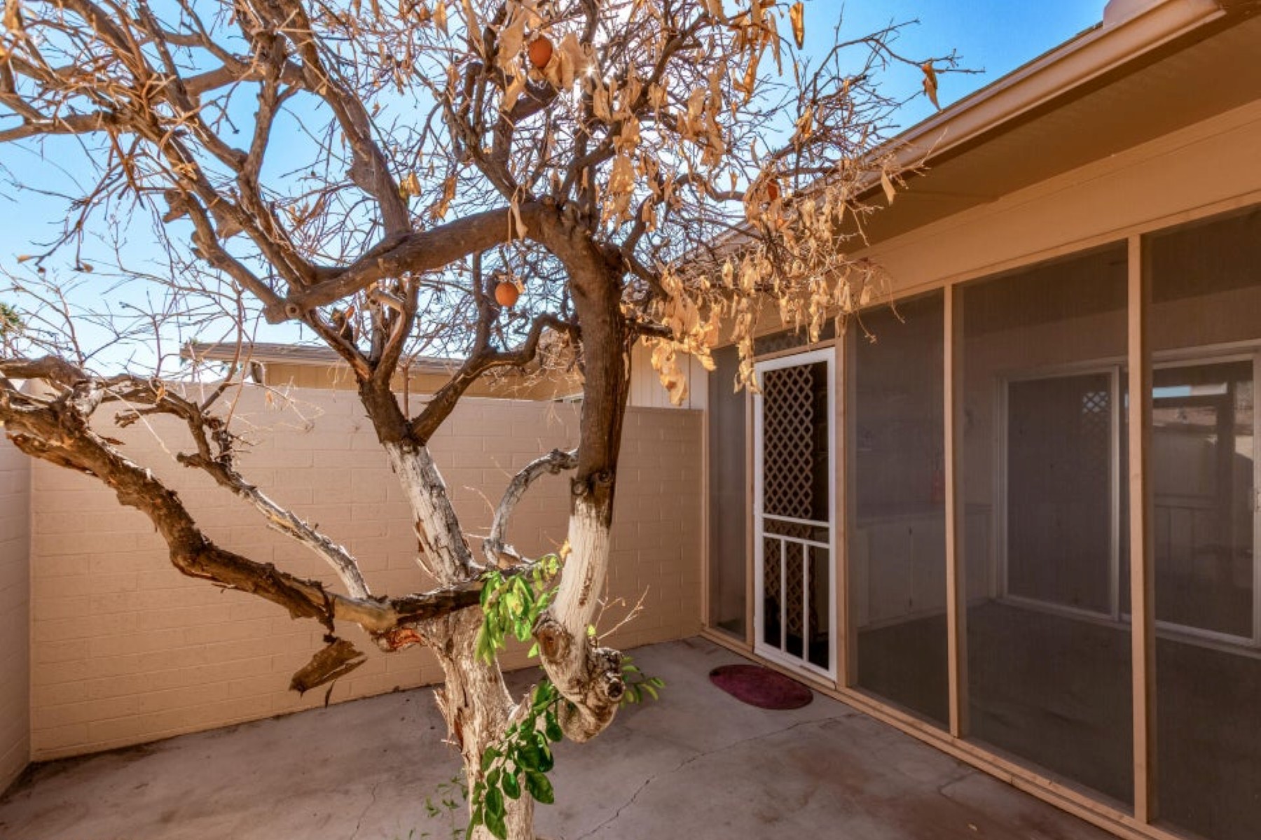 Sun City West presents this private one-bedroom, one-bath apartment, offering a comfortable and inviting living space. The home features tile and concrete flooring throughout, providing a clean, low-maintenance foundation ready for your personal touch. The bright kitchen includes a charming breakfast nook, perfect for enjoying your morning routine. Step outside to the screened-in patio and enjoy the beautiful weather. Security doors at both the front and rear entrances provide added peace of mind. Ideally located just across the street from Hillcrest Golf Course, this home offers a prime setting within the Sun City West community, where a wide variety of amenities are available for your enjoyment. This is a wonderful opportunity to make Sun City West your new home.