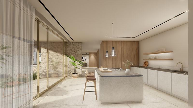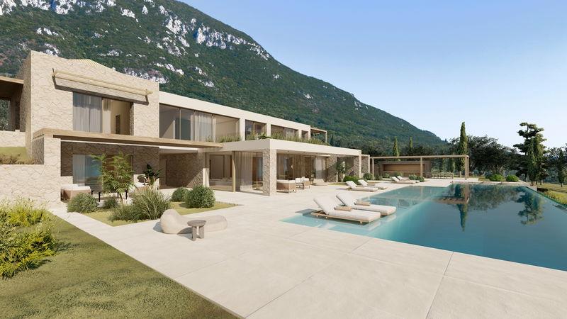 Surrounded by a beautiful olive grove and benefiting from a gentle slope, the villa offers unobstructed panoramic views over the Ionian Sea and unforgettable sunsets. The architecture is modern and elegant, and the villa unfolds across three levels, with a total living area of 690 sq.m., designed to offer refined comfort and functionality.