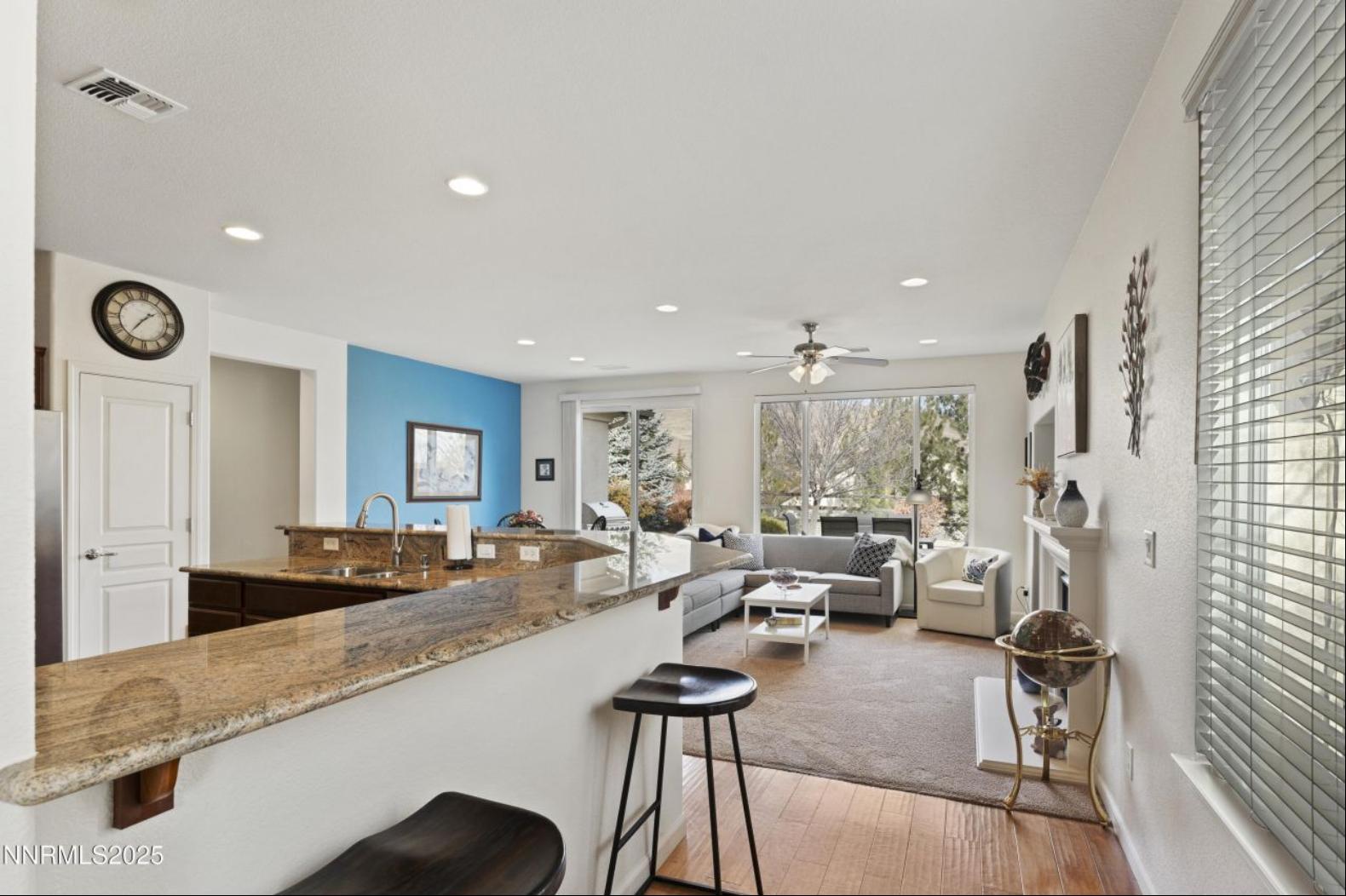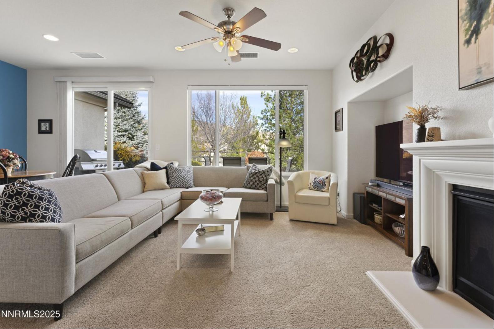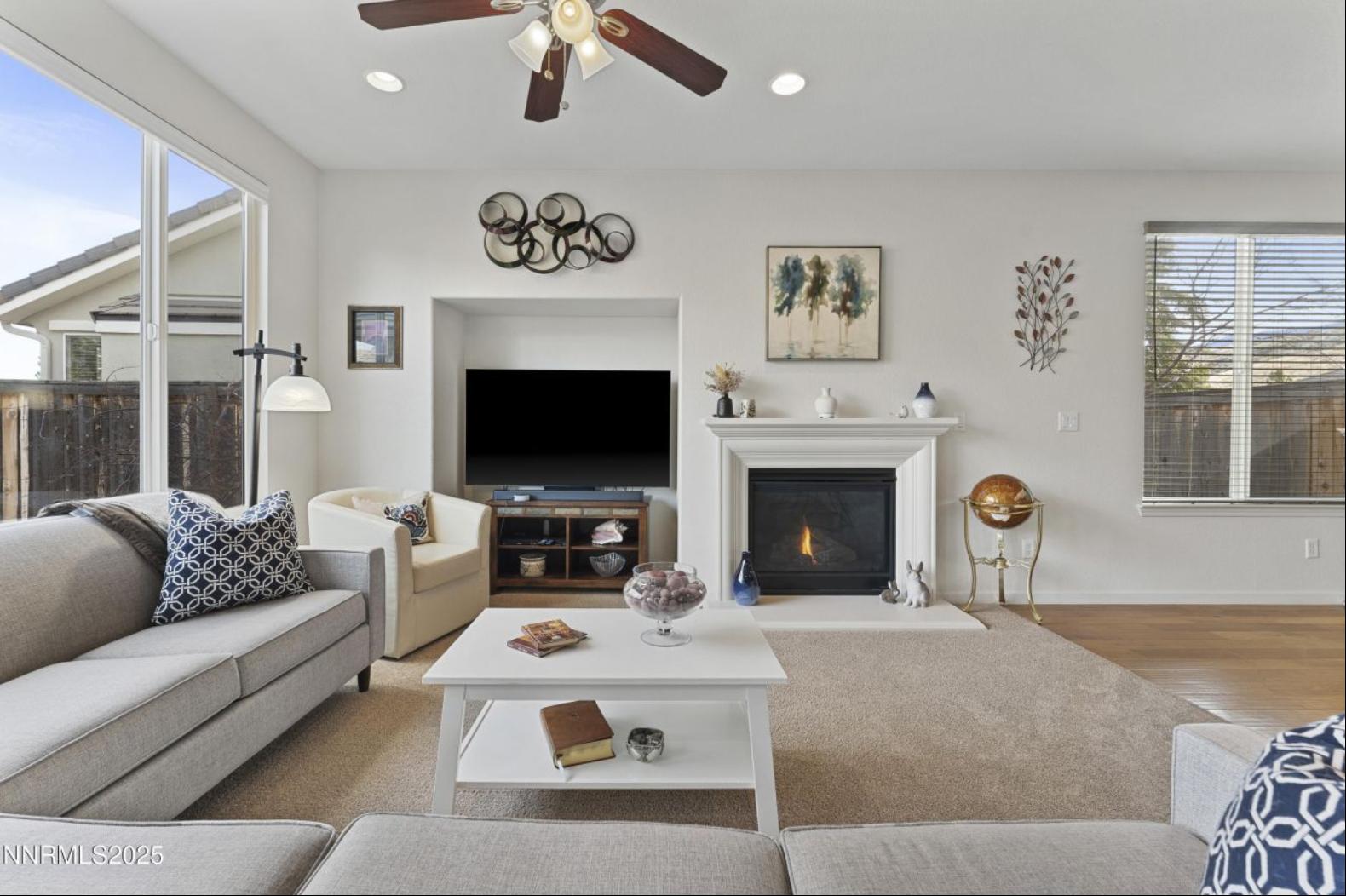 IN CONTRACT WITH A CONTINGENT OFFER, ACCEPTING BACK UP OFFERS. Well-maintained single-level Washoe model located in the 55+ Community in Somersett, positioned with open common area across the street and no direct front neighbors. This home offers a flexible floor plan featuring a primary suite plus a dedicated office or den adjacent to a second full bath, suitable for conversion to a second bedroom. The home includes a nice mix of hardwood flooring and warm neutral carpet. The kitchen has beautiful granite slab counters, upgraded cabinets, a GE Profile appliance package, a spacious LG refrigerator, and a nearly new LG washer and dryer. The living area is anchored by a cozy fireplace, remote window covering on the main window, and a ceiling fan. The bay windows in the primary suite add natural light and dimension. The professionally landscaped backyard features a paver patio designed to enjoy the views and outdoor living space. Residents enjoy access to amenities including the Aspen Lodge clubhouse with indoor heated lap pool, fitness center, aerobics room, and social spaces, as well as Sierra Canyon\'s grand clubhouse offering pickleball, tennis, indoor pool and spa, billiards, library, meeting rooms, walking trails, and outdoor firepit with sweeping views. Golf access includes the Somersett Country Club driving range and the Canyon Nine executive golf course. Conveniently located near Somersett Town Center, restaurants, boutiques, and freeway access, offering low maintenance living with extensive community amenities.