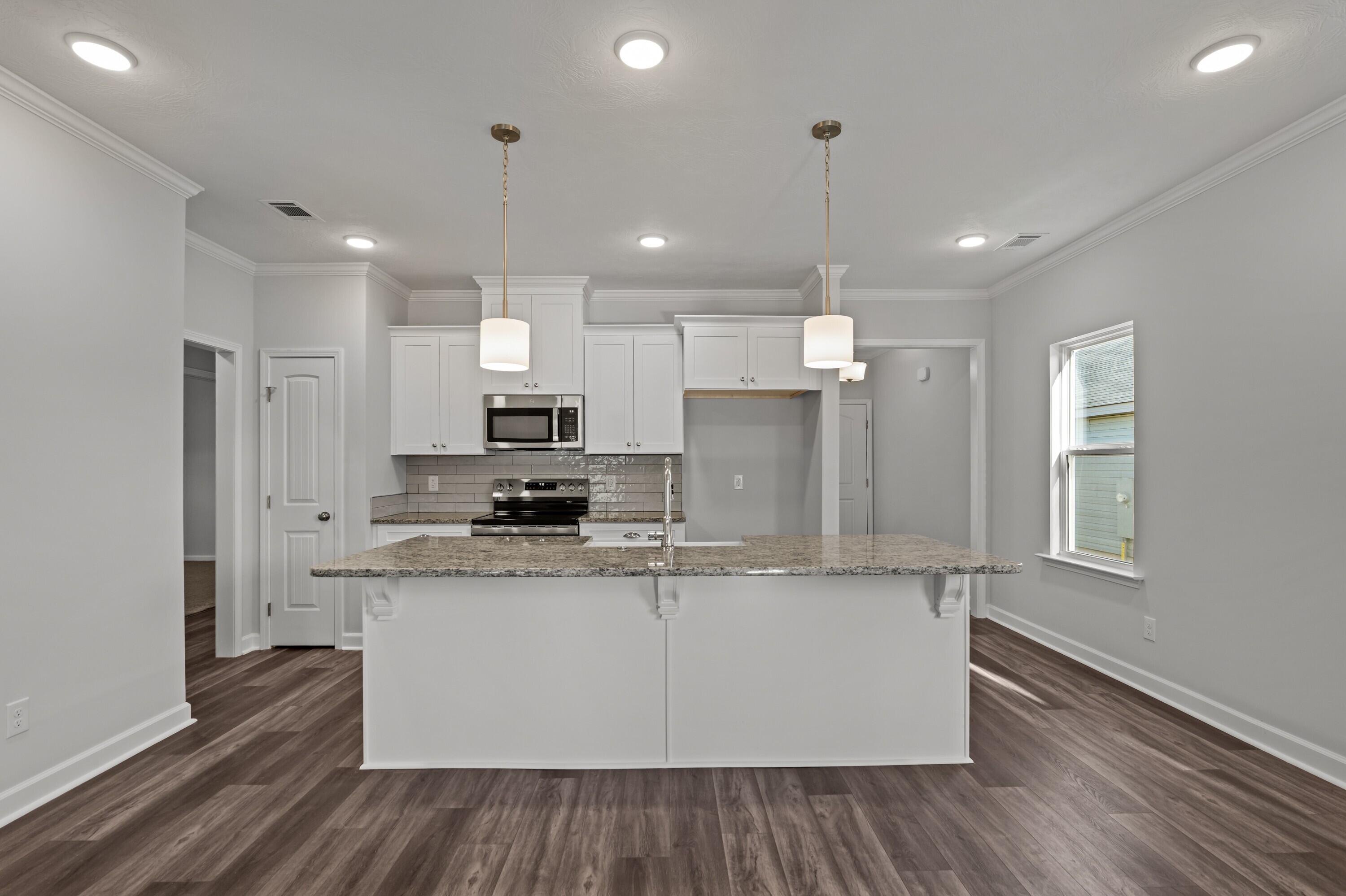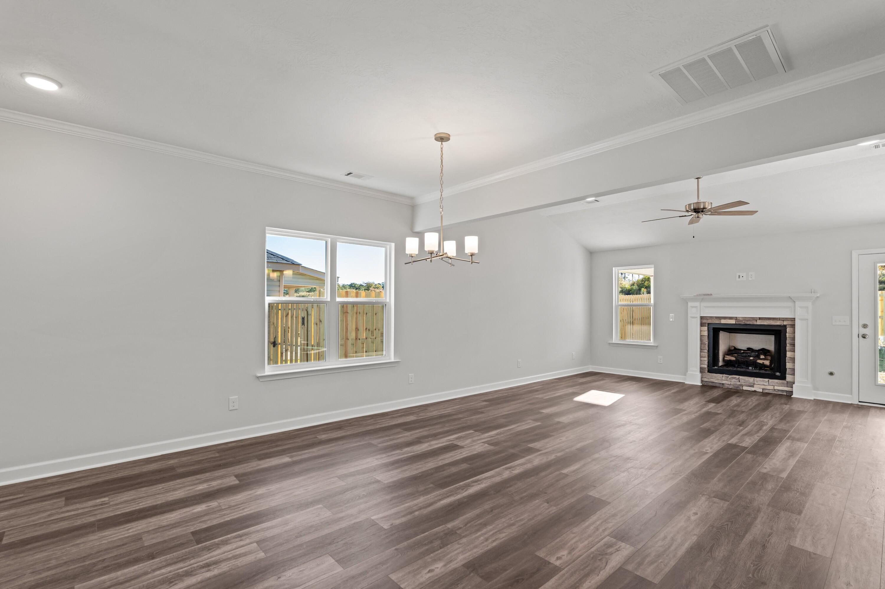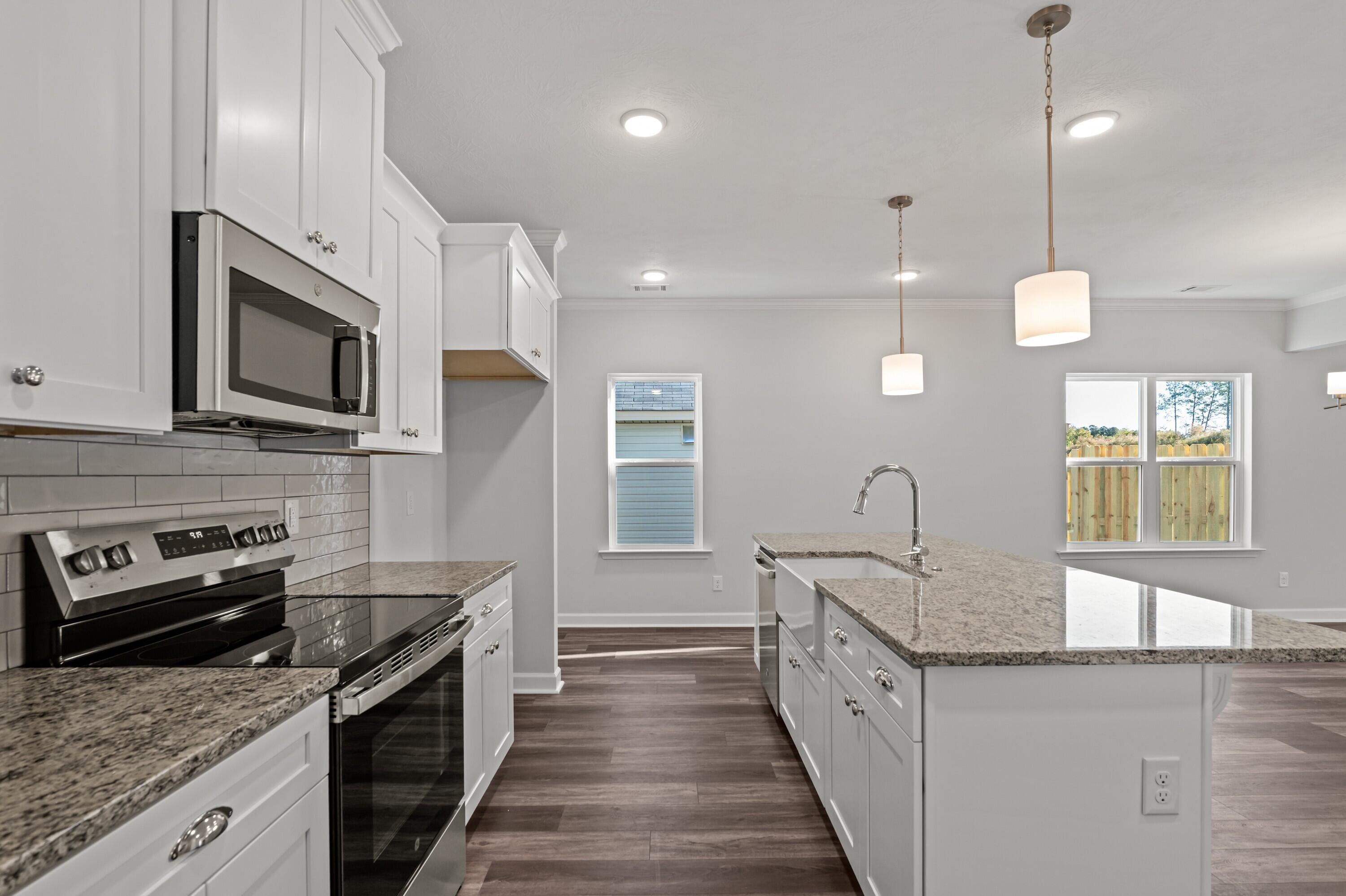 Available for late February occupancy! Brand new 4 bedroom, 2 bath ranch with 2-car garage and fenced backyard, located in Summerton Village! Covered front entrance leads to foyer with sidelight window at front door and coat and linen closets. Waterproof Evacore click flooring throughout living space including foyer, living room, dining room and kitchen. Foyer opens to open concept living area, with the kitchen overlooking the living and dining space, perfect for entertaining. Living room has trey ceiling, ceiling fan and gas fireplace. Adjacent dining area has trey ceiling, decorative lighting, access to backyard. Well equipped kitchen has island with overhang for barstools. Kitchen also has granite counters, stainless appliances, subway-tile backsplash, farmhouse apron sink and pantry. Primary bedroom with trey ceiling, fan, enormous walk-in closet with shoe rack and en suite bath with dual sink vanity, large soaker tub and separate walk in shower. Hallway off kitchen leads to laundry room, garage, mud room, 2nd bathroom and 2nd, 3rd and 4th bedrooms. Spacious 2nd, 3rd and 4th bedrooms with double door closets and double racks for additional storage capacity. Mud room off garage has coat pegs and shoe bench, also security system panel that can be activated by the tenant. Garage has sprinkler system control for both front and back yard. Laundry room with washer/dryer hookups, cupboard and hanging shelf. Backyard has covered patio and completely fenced backyard! #goodtoask