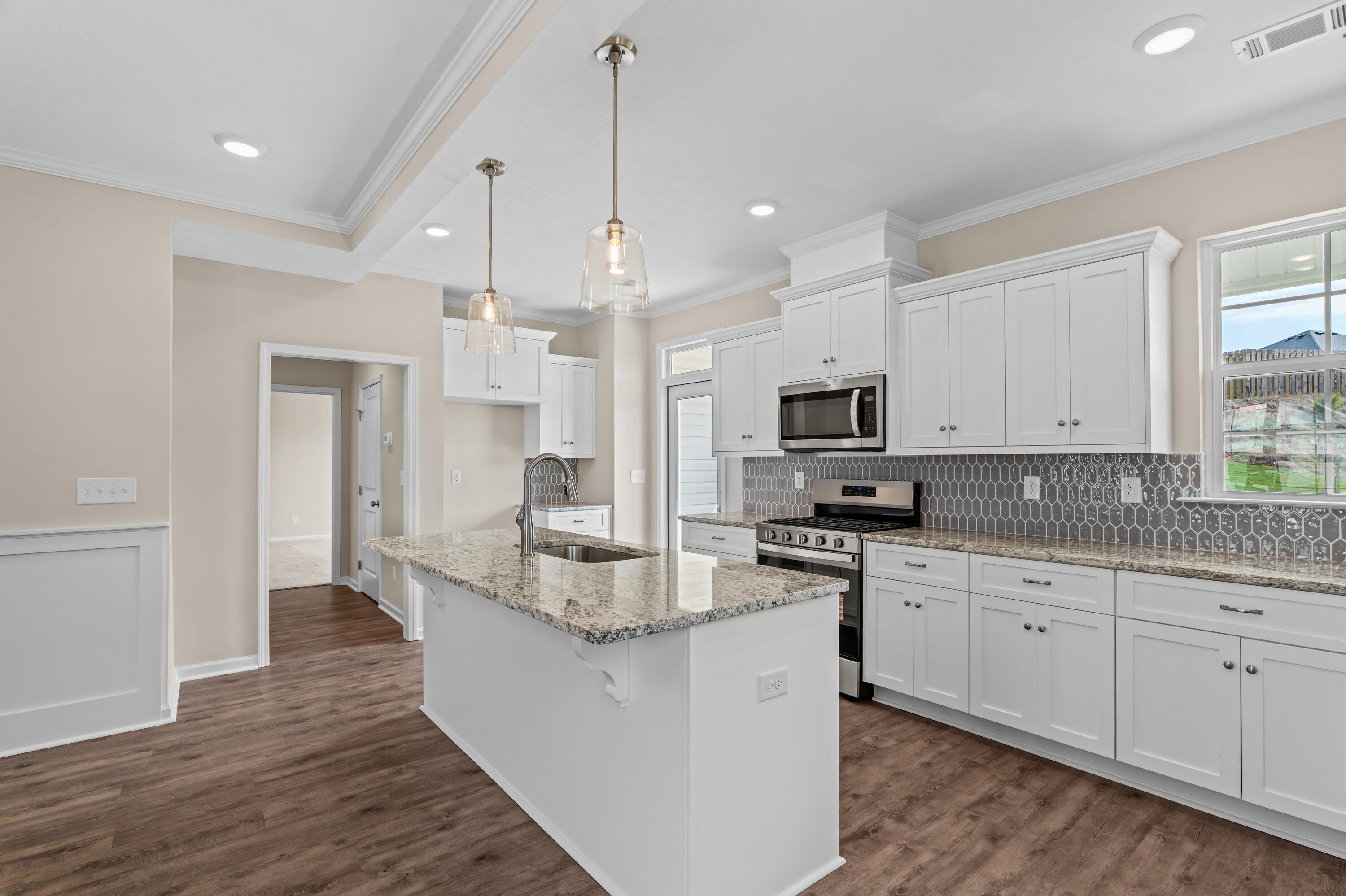 Welcome Home to the Beautiful Camellia Plan by Pierwood Construction that is move-in-ready! This plan is thoughtfully designed and combines charm, function, and modern touches throughout. From the moment you arrive, you'll be greeted by a welcoming front porch, perfect for relaxing evenings in your rocking chair and watching the world go by. Inside, the open floorplan creates a seamless flow through the main living areas, all featuring durable and stylish LVT flooring. The primary suite is conveniently located on the main level, offering privacy and ease of access. The heart of the home is the kitchen that boasts granite countertops, a full tile backsplash, and a gas range perfect for the home chef. Cozy up around the gas fireplace in the spacious living area or step outside to the covered back patio, ideal for morning coffee or weekend gatherings. Enjoy peace of mind and a lush lawn with sprinkler systems in both the front and backyard, plus the privacy of an included fence! And when it comes to storage, you'll love the ample attic space ready to accommodate your needs. Builder is offering a 8,000 dollar incentive that can be used to cover your closing costs, lower your mortgage rate, or purchase upgrades such as appliances or even a screened porch! Only a few homes remain in our final phase, don't wait! 625-KR-0803-01