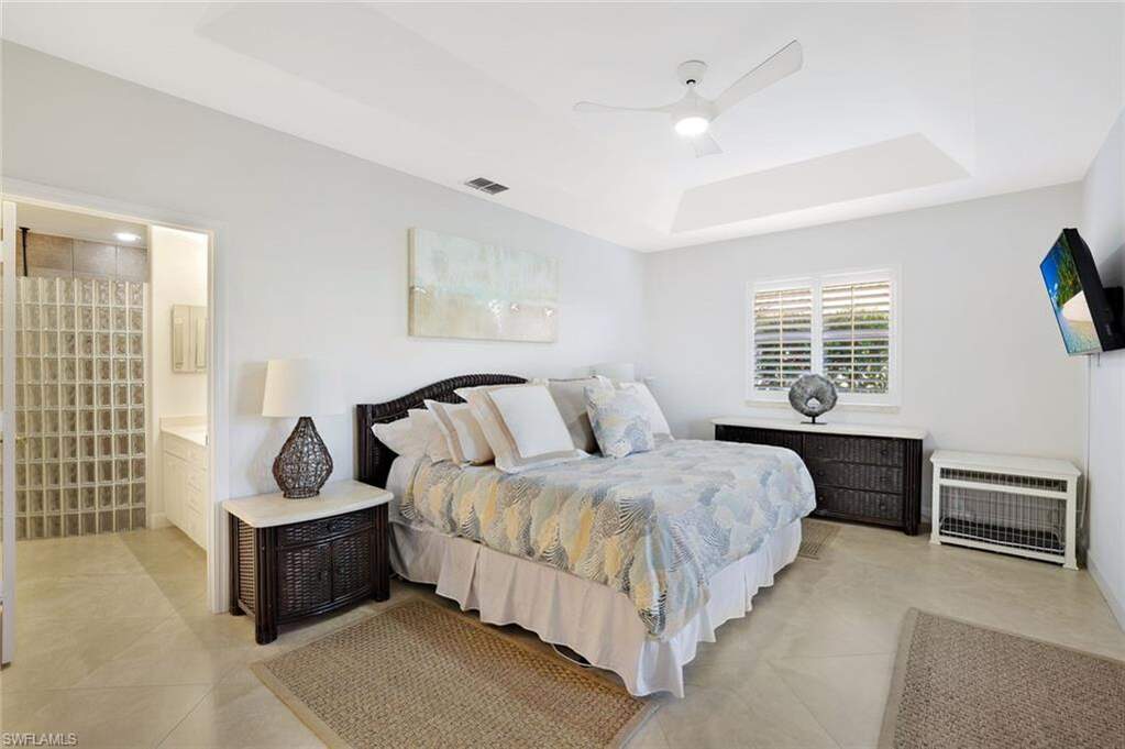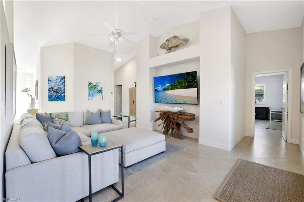 Set along a quiet residential street in the heart of Marco Island, this thoughtfully designed four-bedroom, two-bath residence reflects a refined coastal aesthetic paired with effortless indoor-outdoor living. The home offers a clean, cohesive interior highlighted by tile flooring throughout, plantation shutters, and impact windows that invite natural light while ensuring comfort and resilience. The living and dining spaces unfold with a sense of openness and calm, creating a natural flow suited to both intimate daily living and relaxed entertaining. A neutral palette and timeless finishes provide a sophisticated backdrop, while a reverse osmosis system enhances the home's everyday functionality. Outdoors, the private pool setting becomes a defining feature. The lagoon-inspired saltwater pool with electric heater is surrounded by an elegantly finished stone deck and enclosed within a new panoramic pool screen, allowing for uninterrupted views and a seamless connection to the outdoors. Other features include new paint inside and out, a wood fireplace, Corian counters, waterfall shower in guest bath, and a 9,000lb boat lift. This serene environment is ideal for hosting, unwinding, or simply enjoying Marco Island's year-round climate. Completing the residence is a three-car garage offering generous storage and convenience. Ideally positioned near Marco Island's beaches, boating, and dining, this home presents a balanced blend of style, comfort, and understated luxury. *Seller has a Hammock Bay Social Beach Membership that is TRANSFERABLE and is optional for the buyer. If buyer chooses to have the membership transferred, then the cost to the buyer would be $25k for the new Membership, plus a $5k transfer fee. Only current Social Beach Members will be permitted to join the Golf waitlist which is 3-5 years. The golf waitlist is permanently closed to the public.