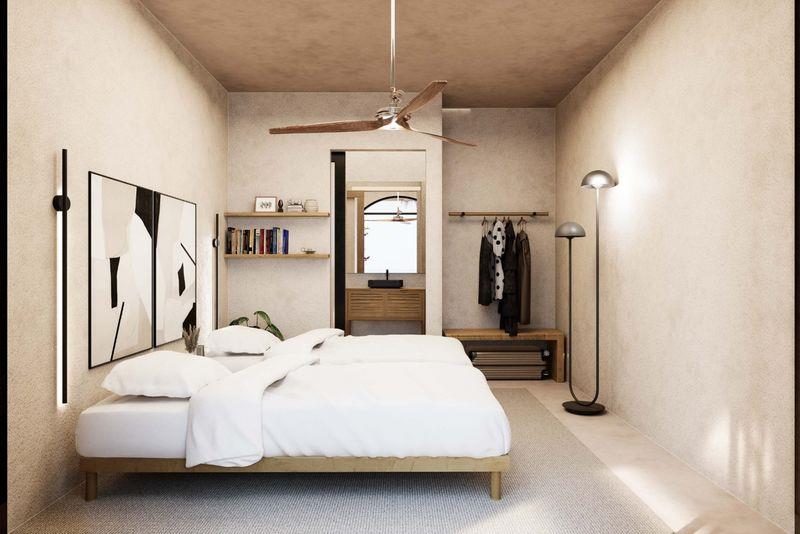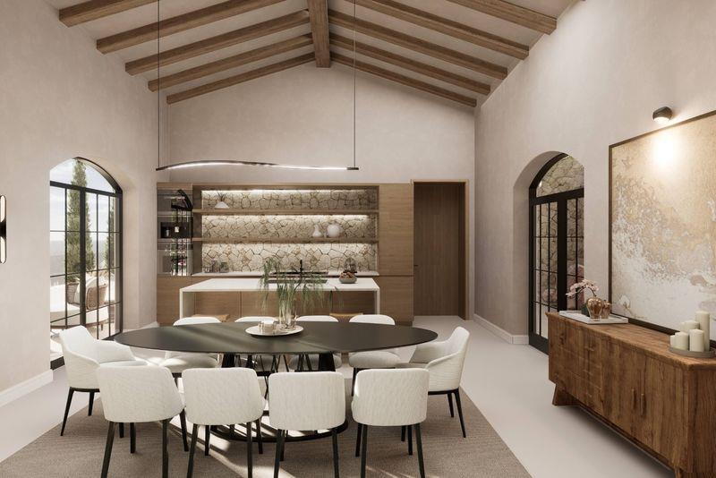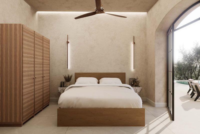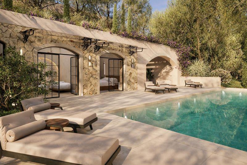 The villa offers six generously sized bedrooms in total, each designed as a private retreat and each benefiting from its own en-suite bathroom. The bedrooms are distributed between the main villa and the guest house to ensure flexibility, privacy, and comfort for both residents and guests. High-quality materials and refined finishes are planned throughout, reflecting a sophisticated yet relaxed lifestyle in harmony with the surrounding environment.