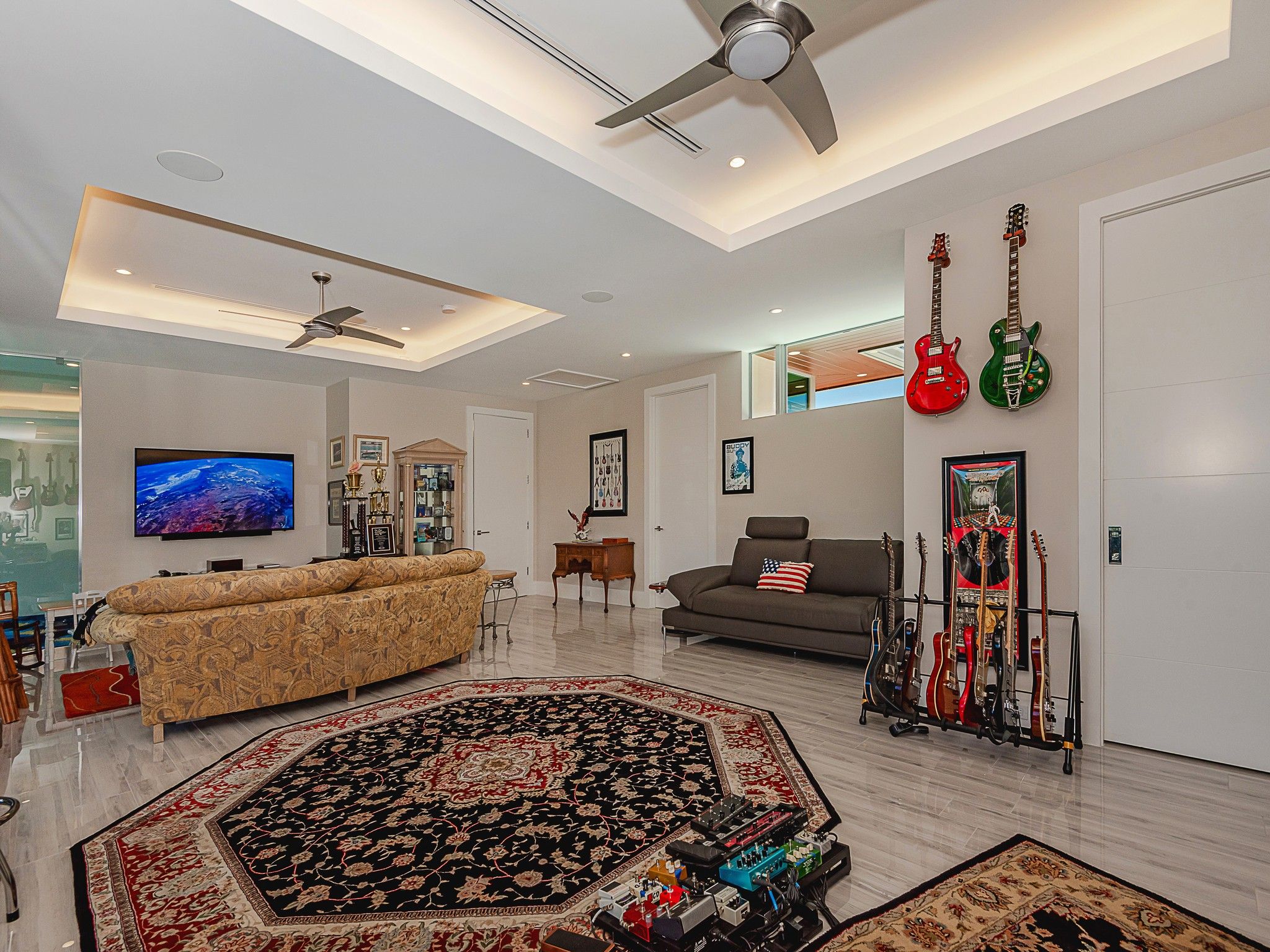 A modern waterfront masterpiece built in 2019 by Barron Construction and designed by Kevin Akey. Elevated with 54 pilings, this smart home features Control4 automation, Sonos audio, a whole-house generator, and premium finishes including 23-foot ceilings, a glass walkway, a floating staircase, and a chef’s kitchen with Sub-Zero and JennAir appliances. The first-floor primary suite offers spa-level luxury, while the outdoor space includes an 80-foot Trex dock with ocean access, a heated pool and spa, turf yard, and an 11-car gated driveway.
