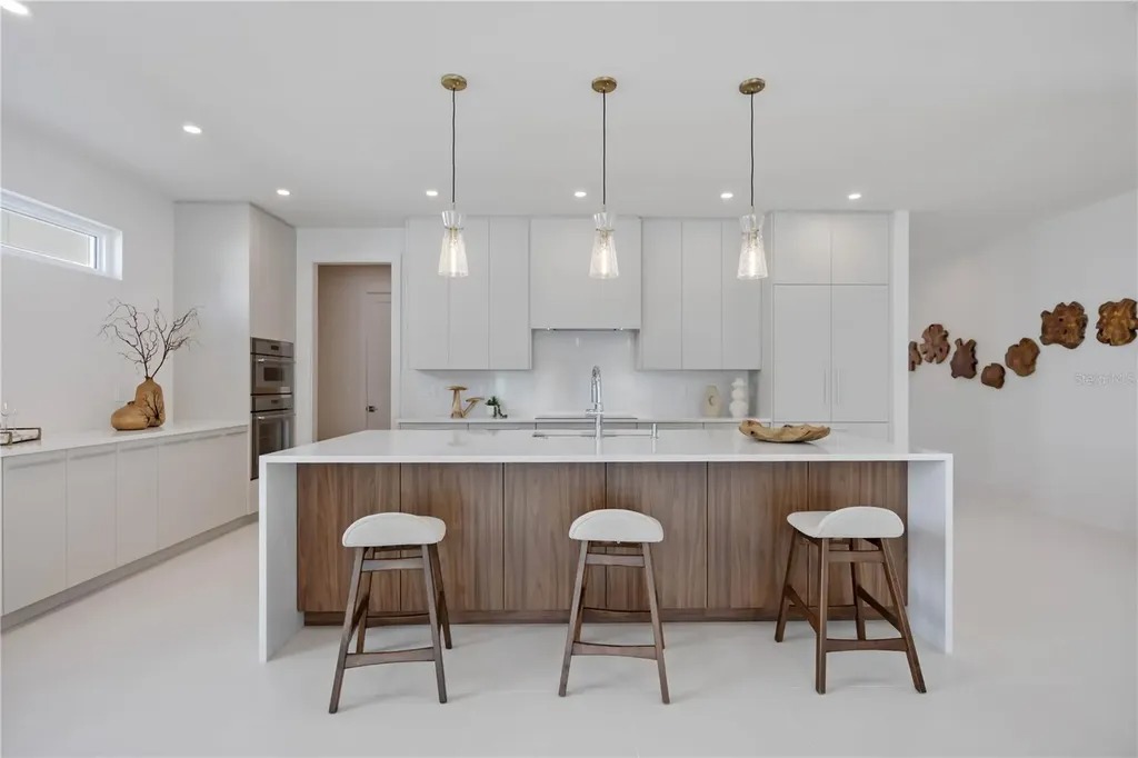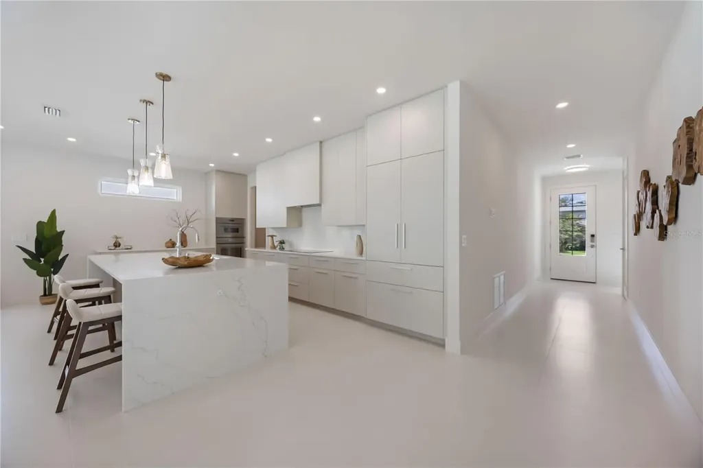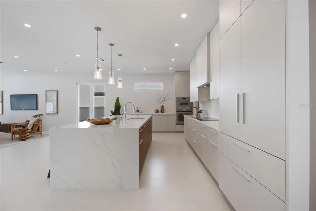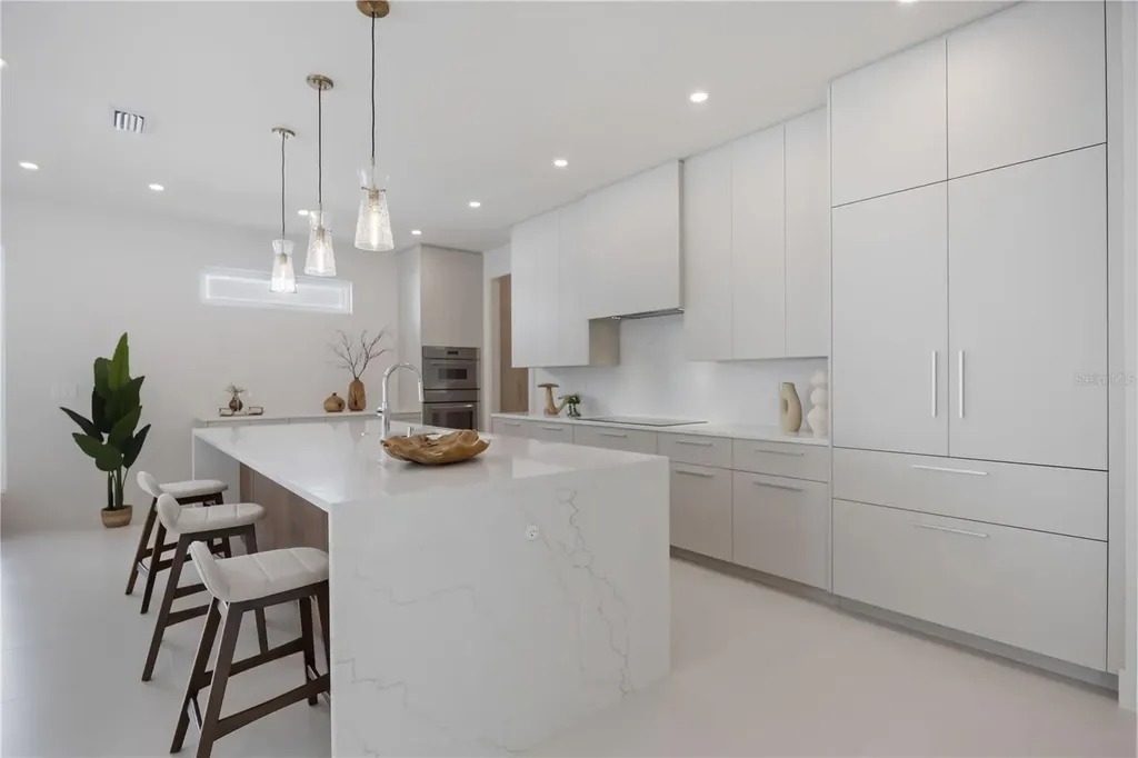 One or more photo(s) has been virtually staged. One or more photo(s) has been virtually staged. Welcome to a Modern Masterpiece in the Heart of Sarasota. This contemporary home was completed in 2025 and offers 4,000 square feet of thoughtfully designed living space in the coveted Rustic Lodge section of Arlington Park. This light-filled, open-concept floor plan blends indoor and outdoor living seamlessly for enhanced living and entertaining. The centerpiece of the home is the chef's kitchen with floor to ceiling custom cabinetry by Studio Luxe, quartz countertops, a full-slab backsplash, and a dramatic waterfall island. Premium Thermador appliances include a 42-inch French door refrigerator, induction cooktop, wall-oven combination, and range hood. Additional bonus cabinetry just off the kitchen and an oversized pantry provides ample storage.Large porcelain tile flooring throughout enhances the clean, modern aesthetic. The primary suite is located on the main level, featuring a spa-inspired bathroom with dual vanities, an oversized zero entry shower, and a freestanding soaking tub. Upstairs, you'll find a bonus room that could be used as a den, reading room or fitness area and generous loft perfect for movie or game nights as well as a large laundry room. There are three well positioned and private bedrooms with en-suite bathrooms and custom closet systems; each with access to a balcony. Outside, you will find a large paver patio with outdoor kitchen equipped with a Blaze grill, granite countertops, and Zephyr beverage center. The heated saltwater pool and spa and fenced yard extend the tranquility this home offers. Additional features include Kohler plumbing fixtures, Daltile porcelain tile, Franklin lighting, titanium pavers, premium PGT windows, PVC vinyl fencing and a 5V crimp metal roof. A 21-foot driveway, two-car garage, irrigation system, exterior lighting, decorative shutters and a two-car garage add to the thoughtful design and effortless living this home offers. This home is located just minutes from downtown Sarasota, Siesta Key Beach, St. Armands Circle, Sarasota memorial Hospital, SRQ airport, Legacy Trail, Arlington Park and in a top-rated school district offering convenience and lifestyle.