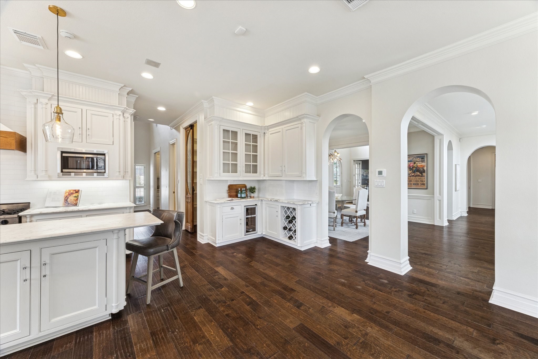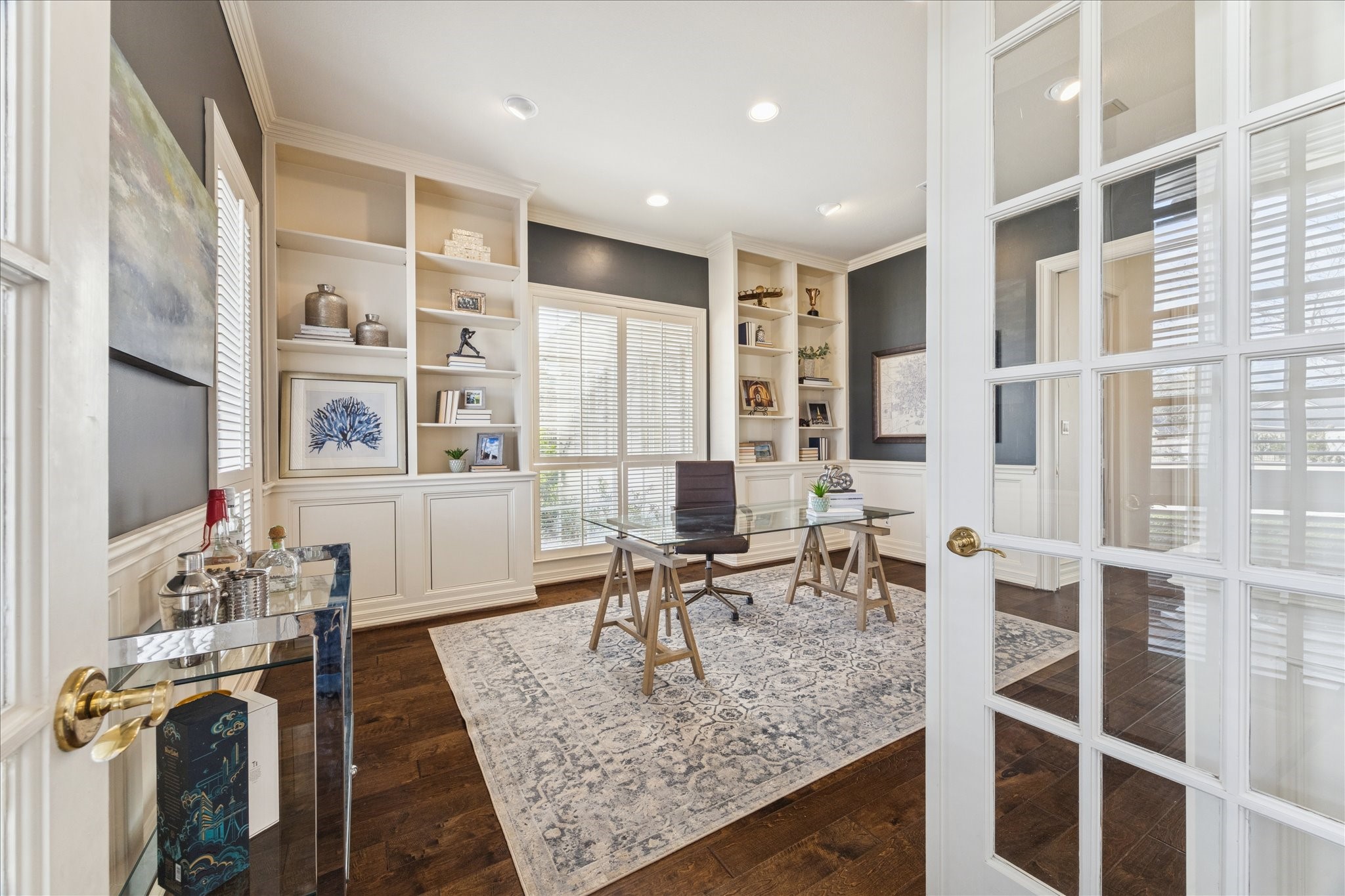 Privately gated and set on nearly four acres in the heart of Friendswood, this timeless estate offers rare privacy, refined craftsmanship, and enduring elegance. The gated automatic entry and long drive unveil the home’s impressive facade and grounds. Double carved doors open to a sweeping spiral staircase. The soaring two-story living space is bathed in natural light with expansive windows overlooking the backyard retreat. A sunlit sitting room flows into the chef’s kitchen, forming a family center designed for connection and comfort. The kitchen features premium appliances, marble countertops, custom cabinetry and generous storage. The serene primary suite offers tranquil backyard views. An oversized media room with surround sound and wet bar enhances the home’s entertainment experience. The grounds include a structure ideal for a studio, storage, or entertainment space alongside a pool and expansive lawn. Zoned to highly sought-after FISD, this estate has it all.
