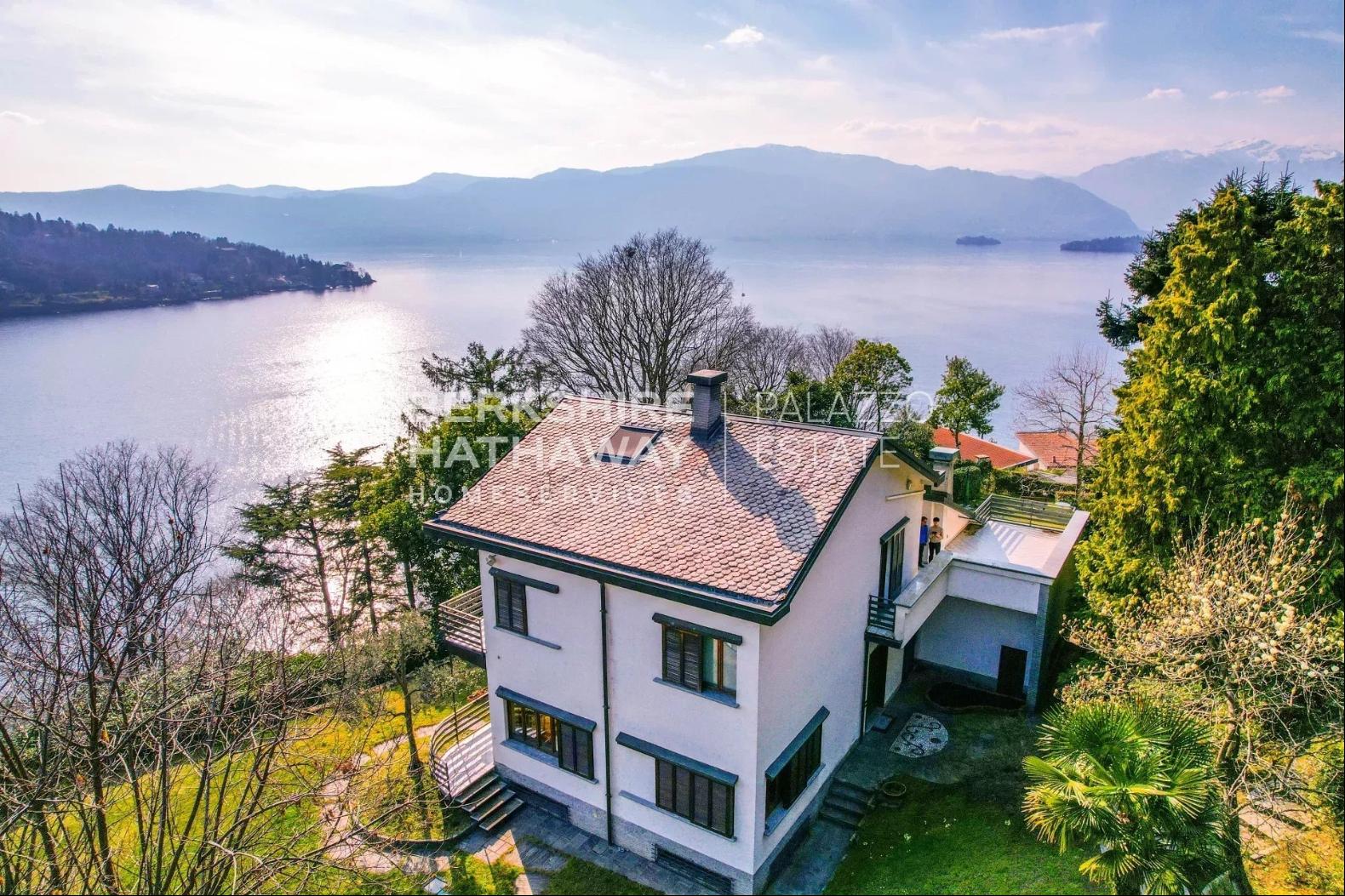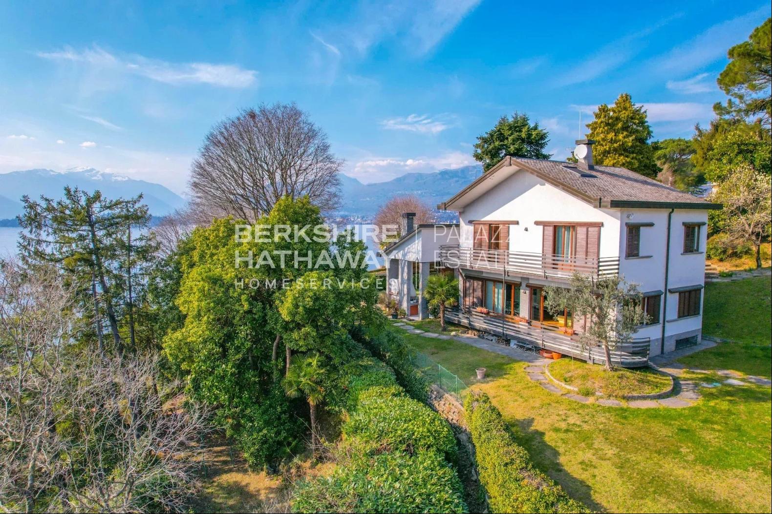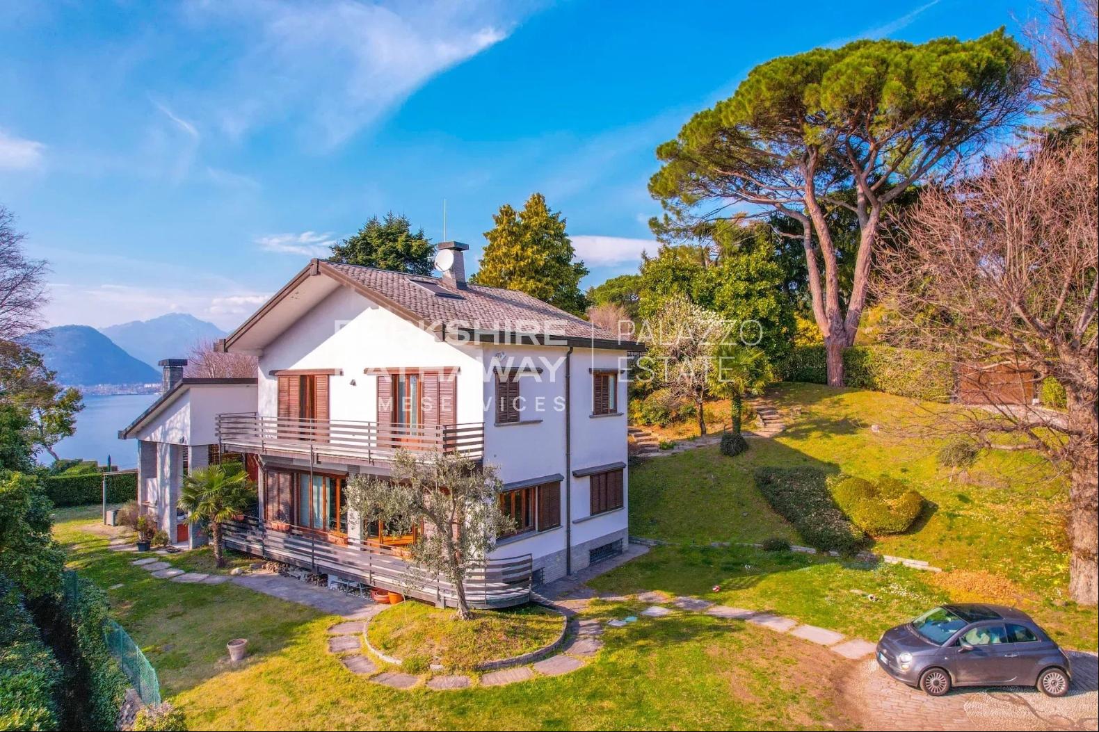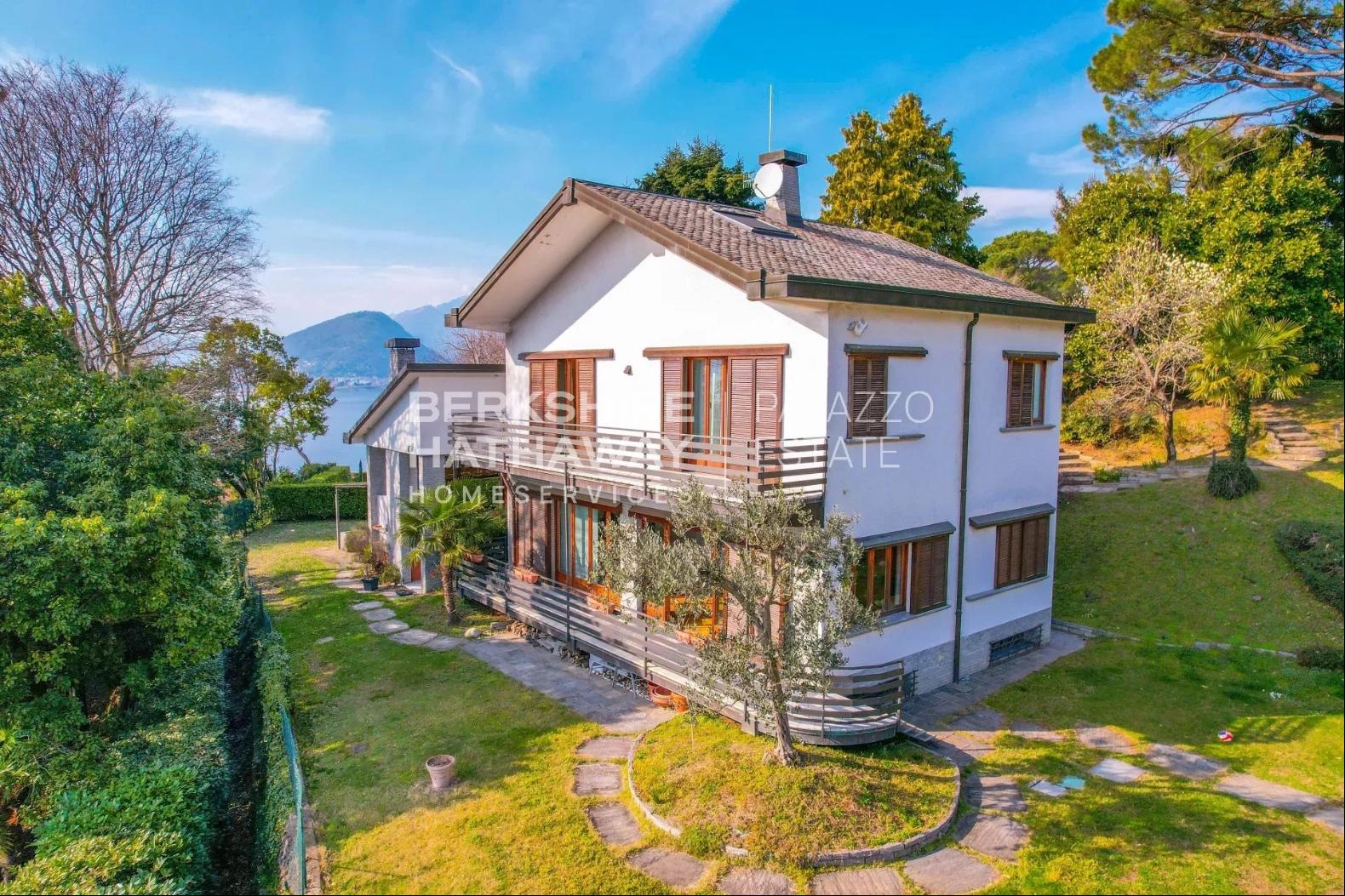 With an internal surface of approximately 360 square meters, surrounded by a private park of about 1,900 square meters, the villa is arranged over two above-ground levels plus an attic floor and a semi-basement level, and includes a double garage, panoramic terrace, and additional service rooms. Renovated in 1992 and meticulously maintained, the property is in excellent condition and ready to move into.The residence stands on the sunny hillside of Laveno-Mombello, enjoying a privileged elevated position with an open panoramic view over Lake Maggiore. Its southwest exposure ensures natural light throughout the entire day. The town center and the lakeside promenade are reachable on foot in just a few minutes, allowing residents to enjoy tranquility while remaining close to all services.The interiors offer generous, harmonious spaces enhanced by quality finishes and abundant natural light. The ground floor features an elegant living room with fireplace and pellet stove, a dining room, and a fully equipped eat-in kitchen, complemented by a guest bathroom with shower and a spacious utility room currently used as laundry and storage. Large glass windows create a seamless connection with the outdoor areas and emphasize the breathtaking lake view, making the living area particularly enjoyable in every season.The first floor hosts two spacious suites, both opening onto a magnificent panoramic terrace overlooking the lake. Each suite includes a large wardrobe area and a bathroom equipped with whirlpool tub, shower, and double washbasin, offering maximum comfort and privacy. The attic floor provides an additional bedroom together with a convenient storage area in the eaves.The semi-basement level further enhances the property with functional and leisure spaces, including a study, a large tavern room currently arranged as a billiard room, and a bathroom with shower, as well as a cellar and a spacious garage accommodating two cars comfortably.Outside, the well-kept English-style garden surrounds the villa, creating pleasant scenery throughout the seasons. A refined covered porch with barbecue area and wood-fired pizza oven, facing the lake, offers an ideal setting for outdoor dining and relaxation.The villa is equipped with air conditioning in the bedrooms, pre-installation for an automatic irrigation system with rainwater recovery, alarm system, security entrance door, video intercom, wooden window frames with double glazing, and marble and parquet flooring, all contributing to comfort, security, and quality of living.In addition, there is the possibility to purchase separately an adjacent building plot of approximately 600 square meters, with an available building volume of about 100 square meters, ideal for constructing a panoramic guesthouse or for extending the existing property, at a price of €200,000.Disclaimer: The information is purely indicative and is in no way attributable to a contractual obligation. All data is subject to verification before starting any form of compromise.Energy Performance Certificate (APE) not available, delivered to the deed.